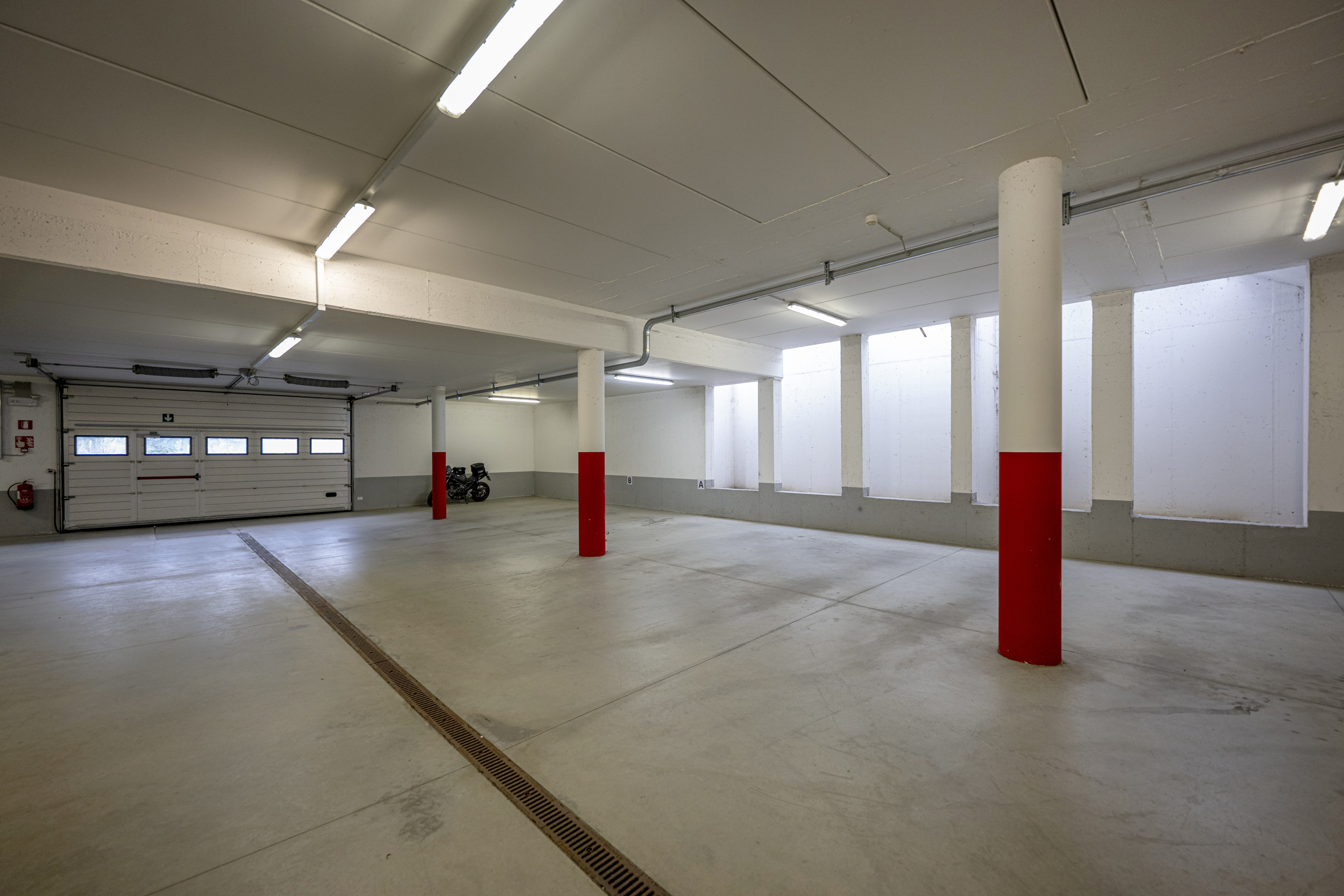 Das Apartment befindet sich im ersten Stock und ist vom Garagenbereich aus über Treppen oder Aufzug erreichbar.