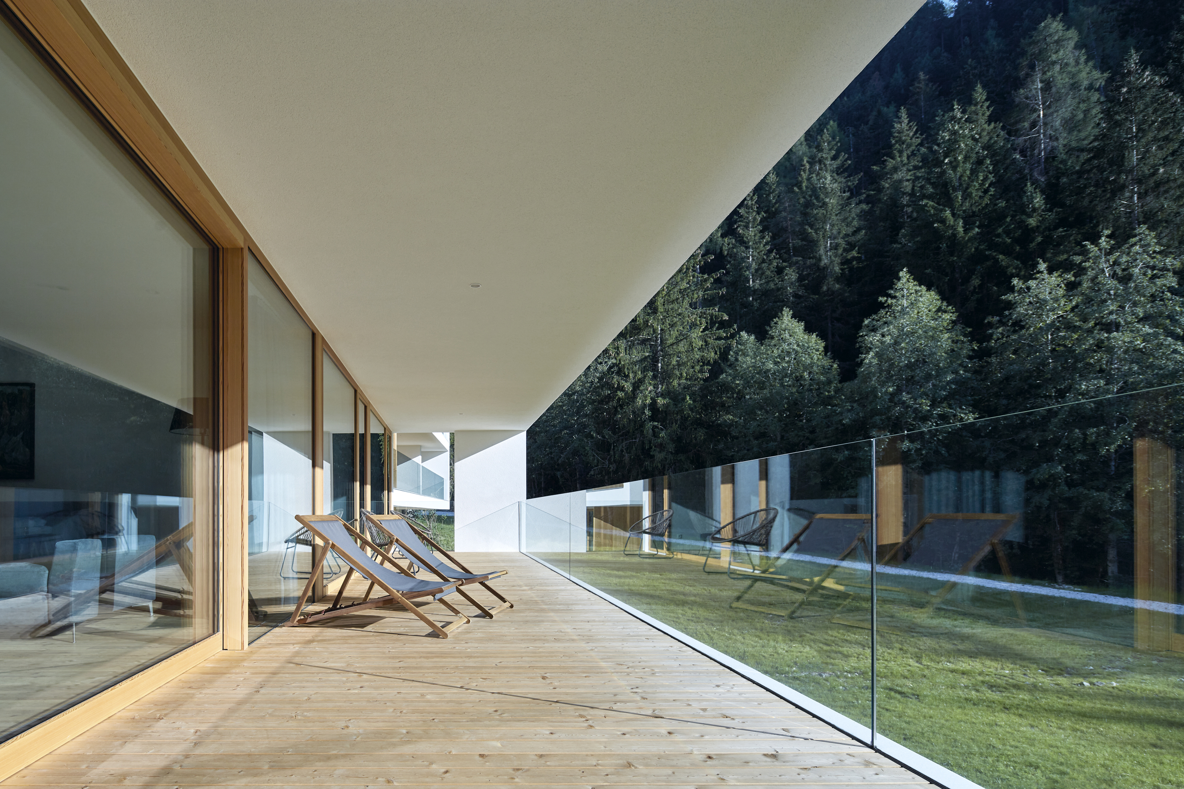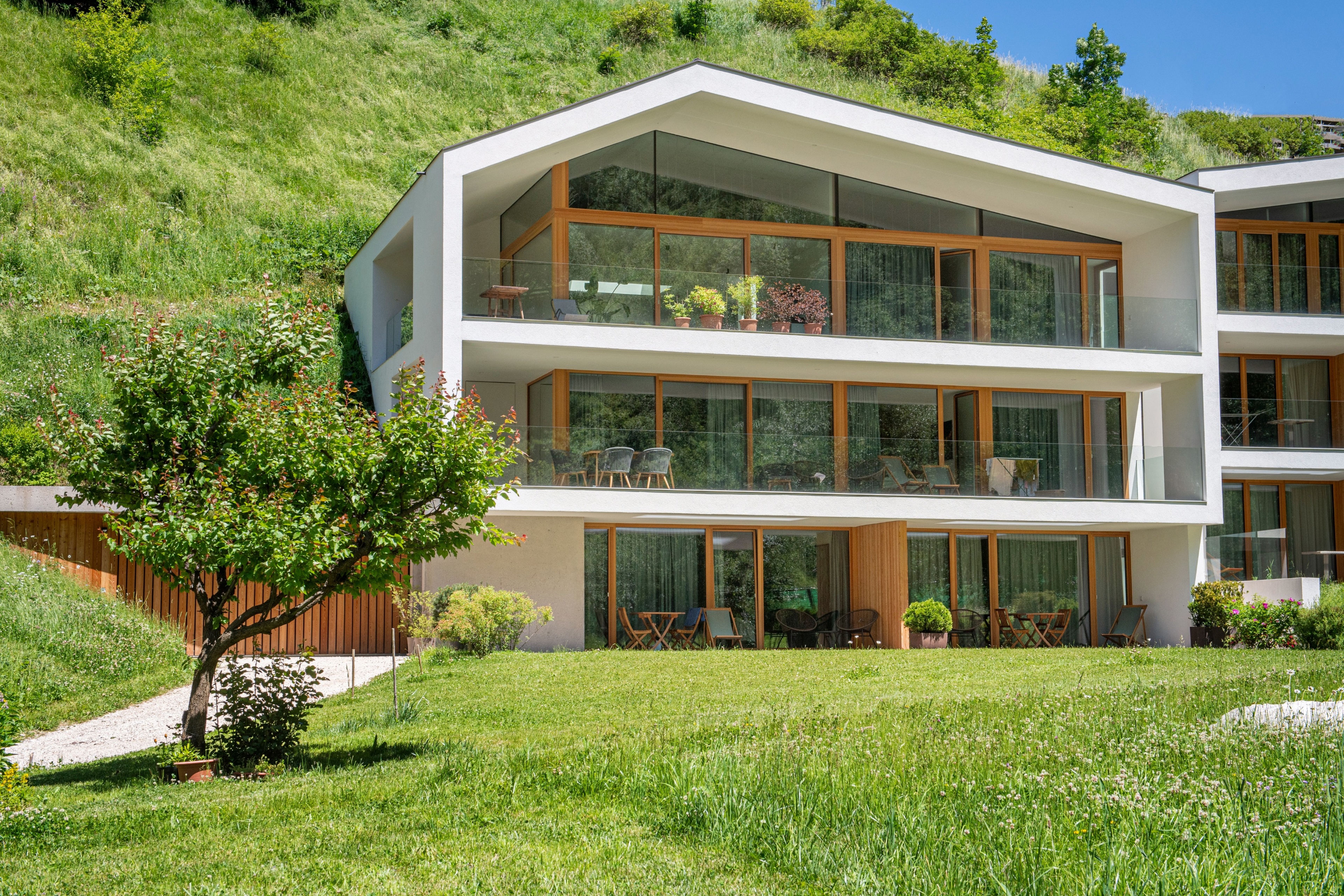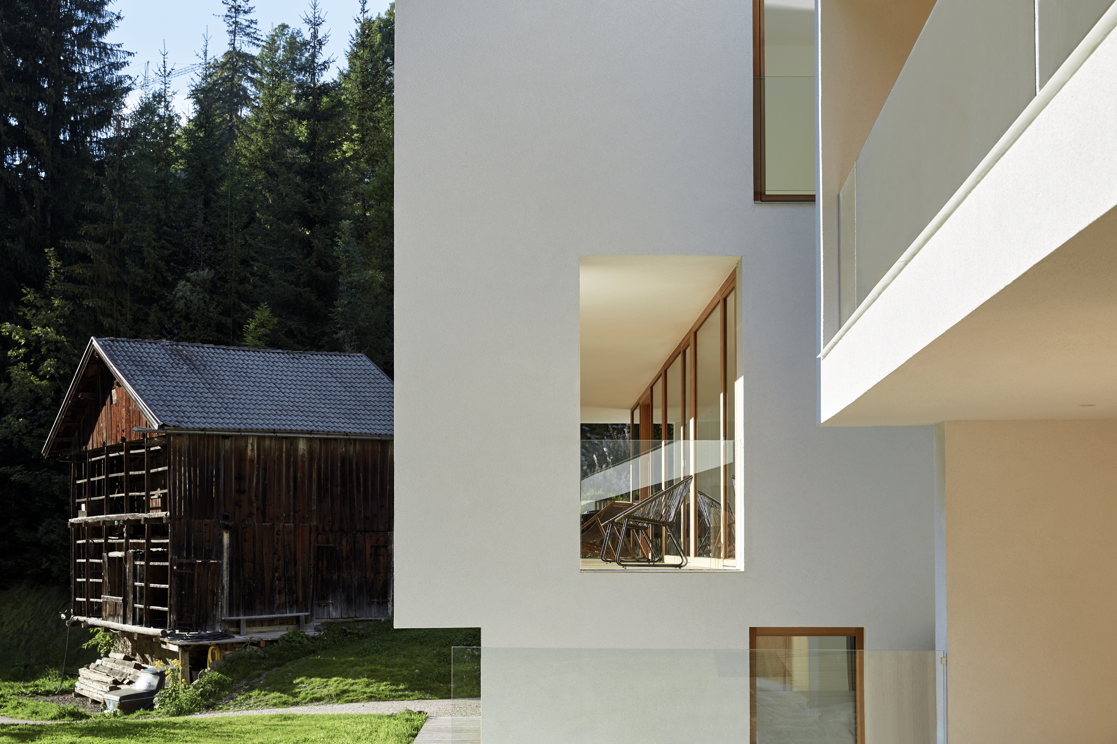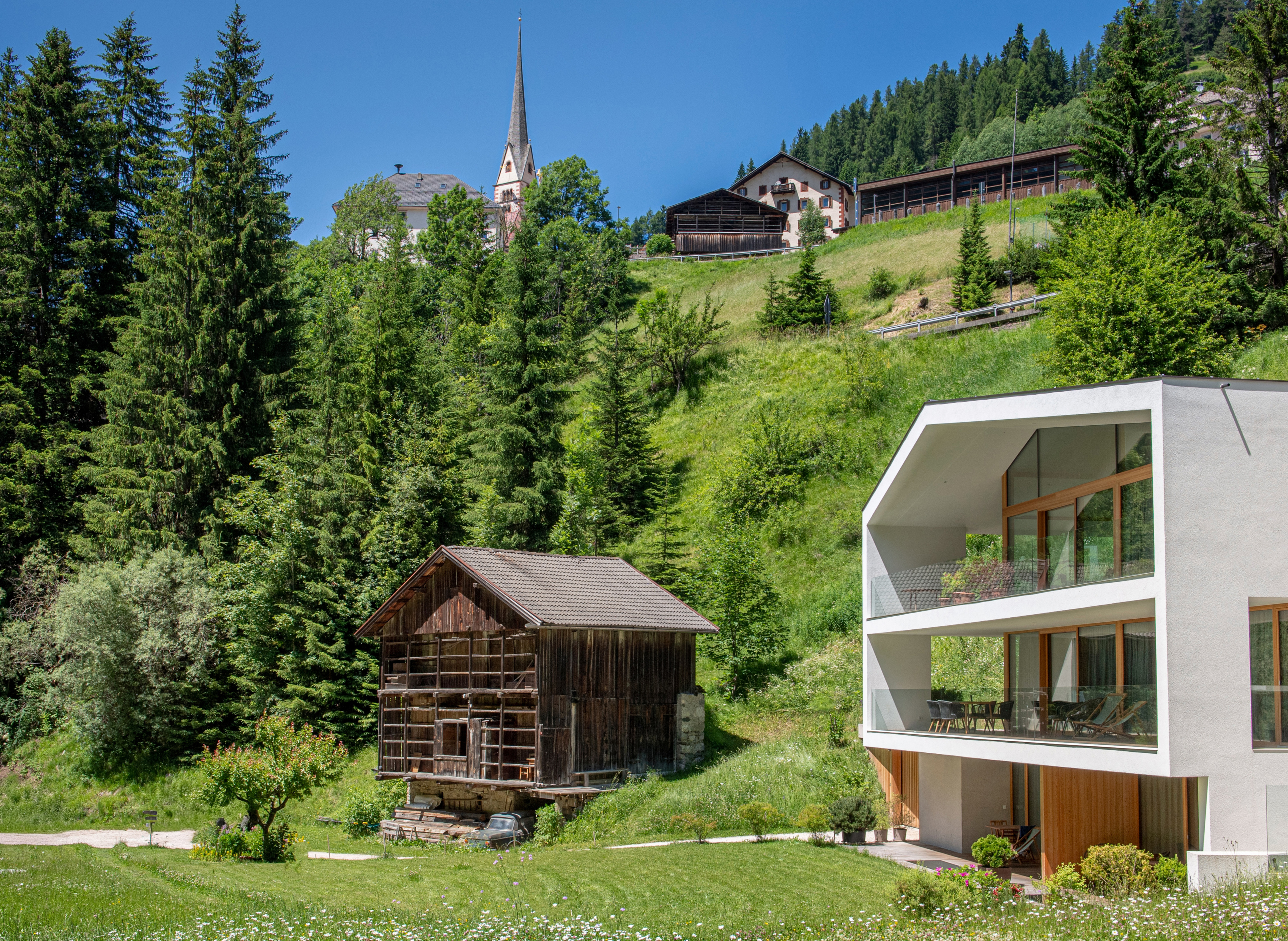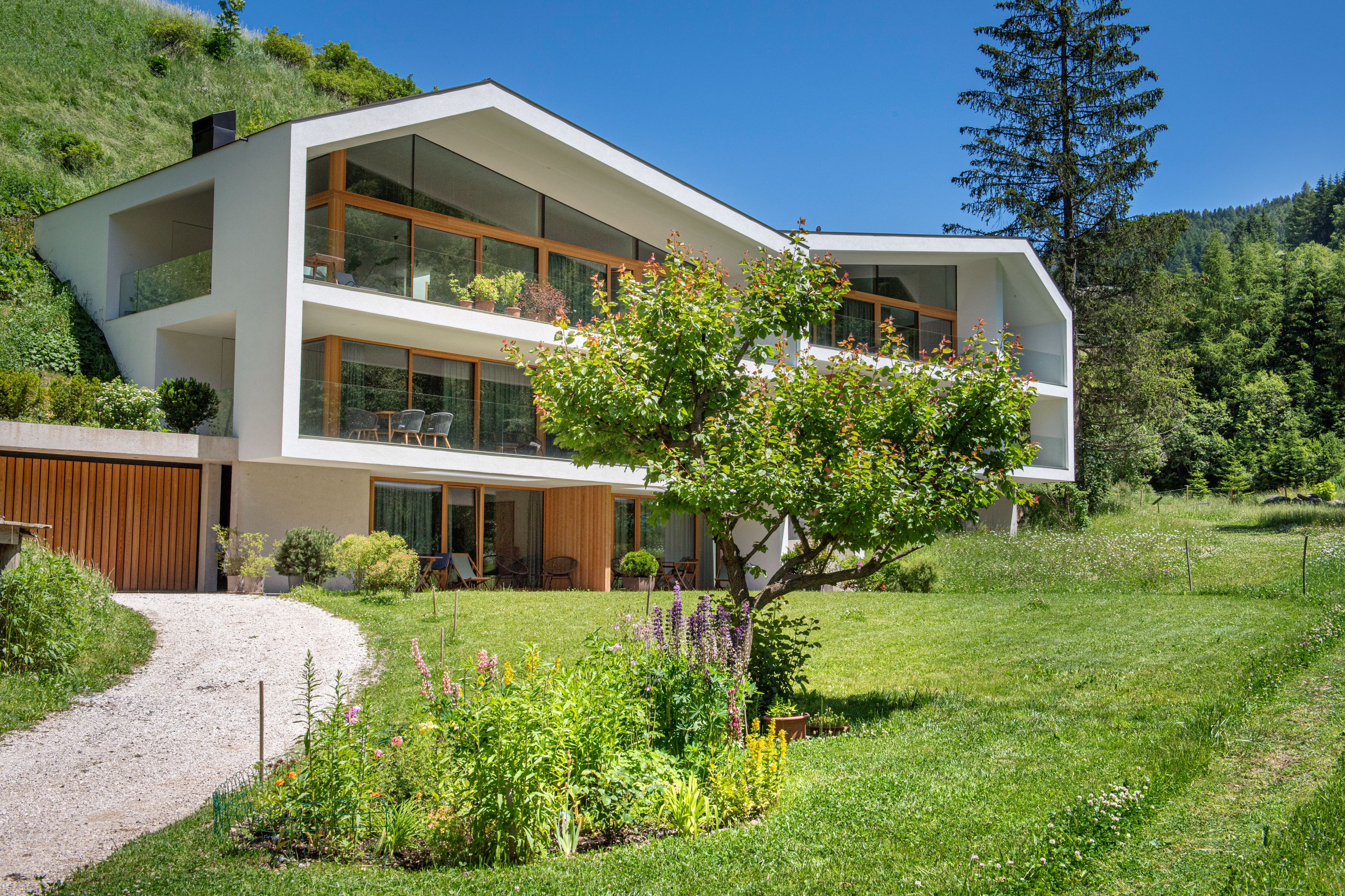 Das von Dr. Arch. Nadia Moroder entworfene und 2022 fertig gestellte Bauwerk ist in tiefstes Grün getaucht. Dieses Ferienhaus schmiegt sich perfekt in die umliegende Natur ein und verfügt über moderne und einzigartige Linien, die das Wohlbefinden der Bewohner steigern sollen.