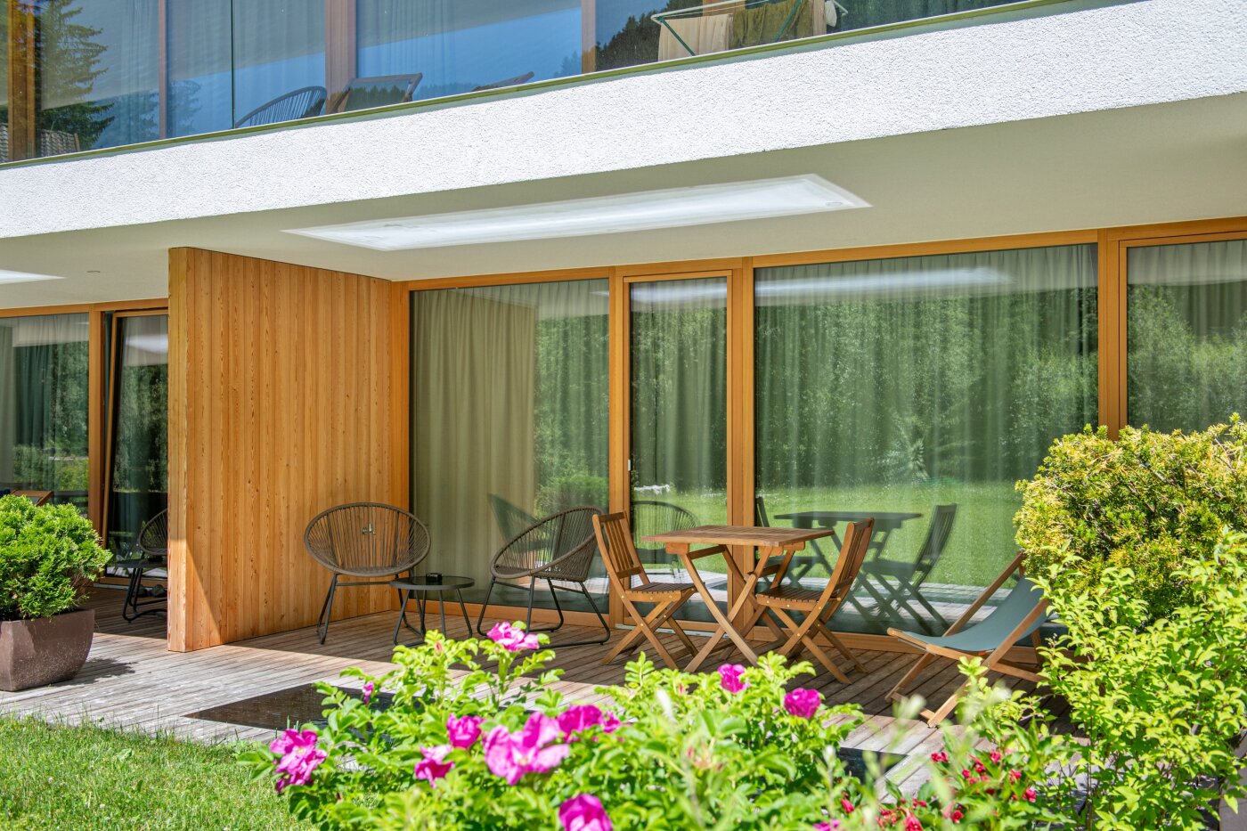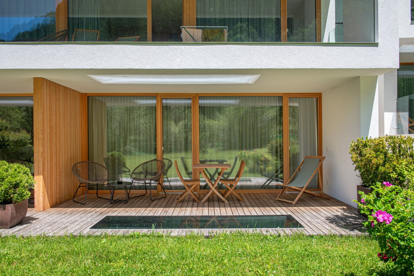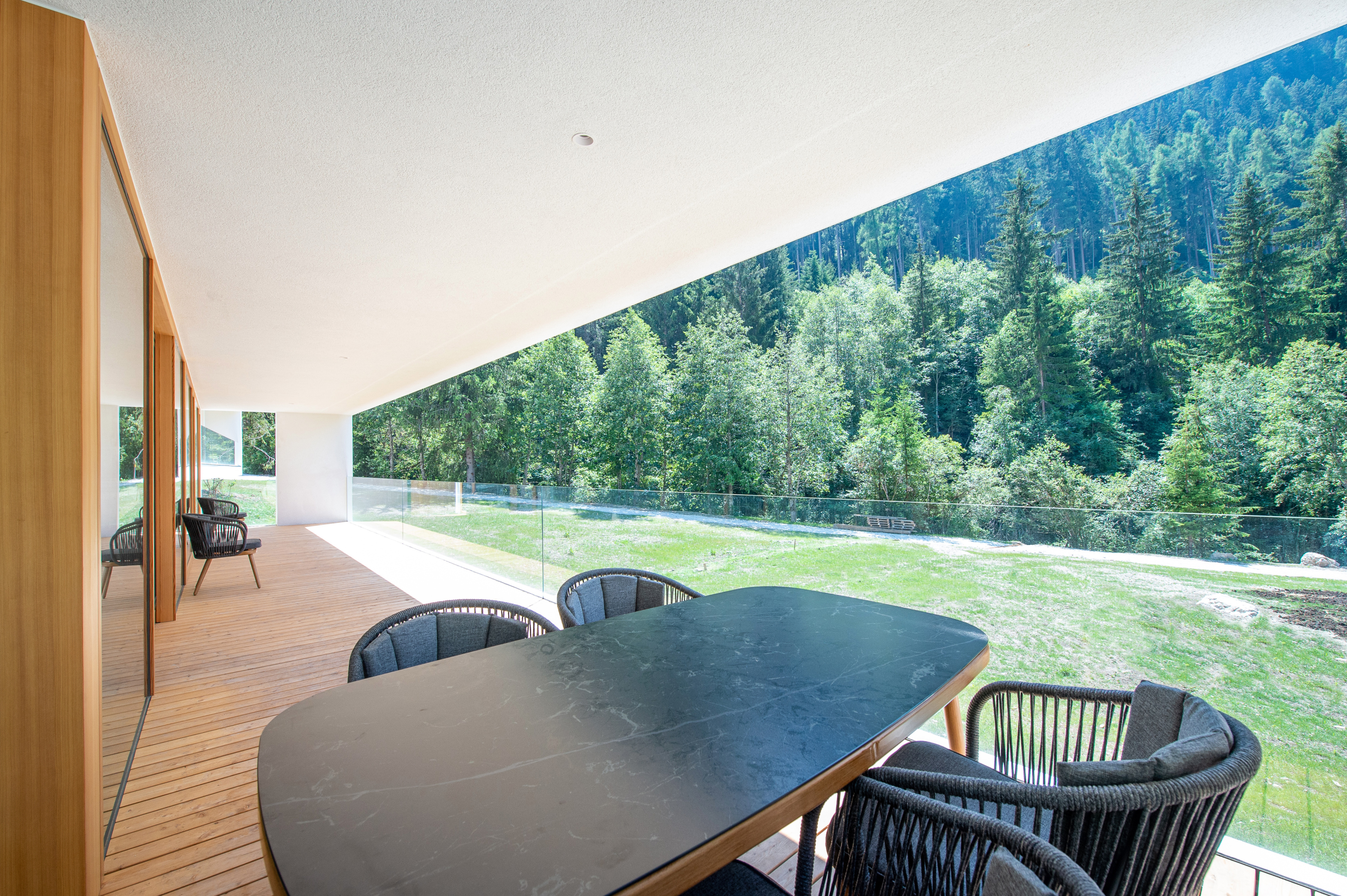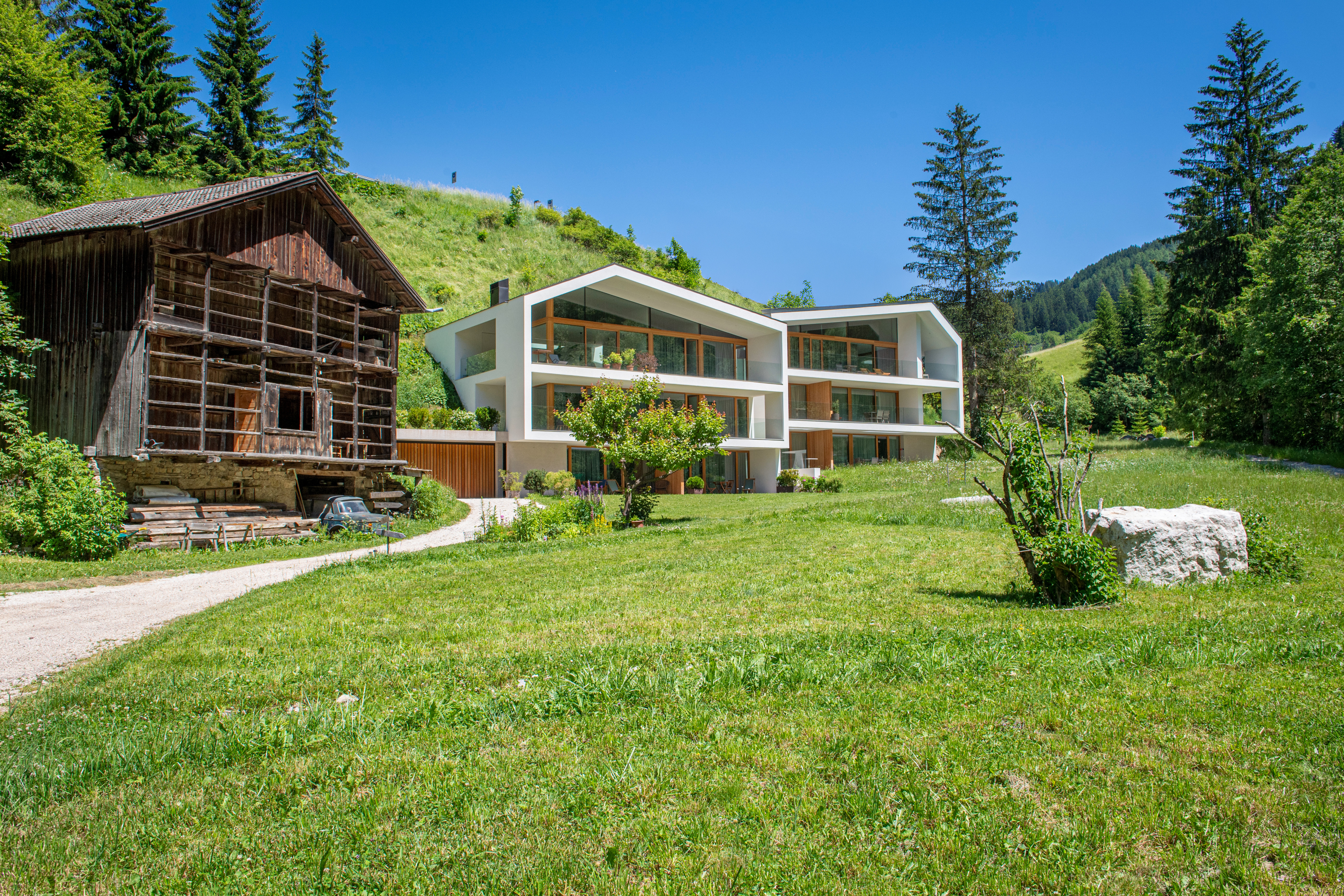 Greva bedeutet nicht nur, in einer einzigartigen Immobilie zu wohnen, sondern auch ein kleines Paradies im Herzen des Grödnertals zu genießen, wo der Wald zum Greifen nah ist und das frische Gebirgswasser des angrenzenden Baches den Alltag in den Dolomiten untermalt. Vor dem Haus können Sie den gepflegten Gemeinschaftsgarten genießen und die reine Bergluft einatmen.