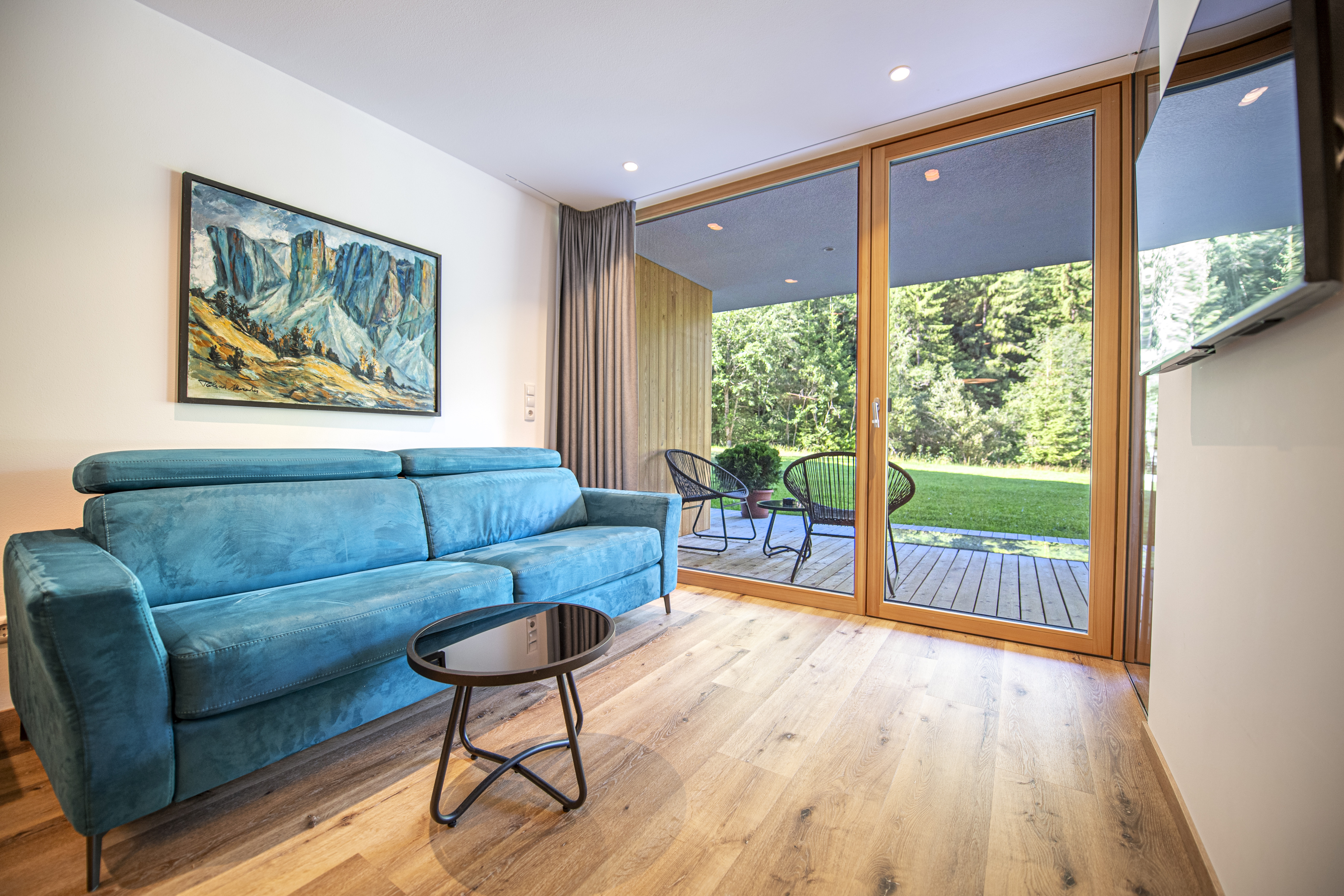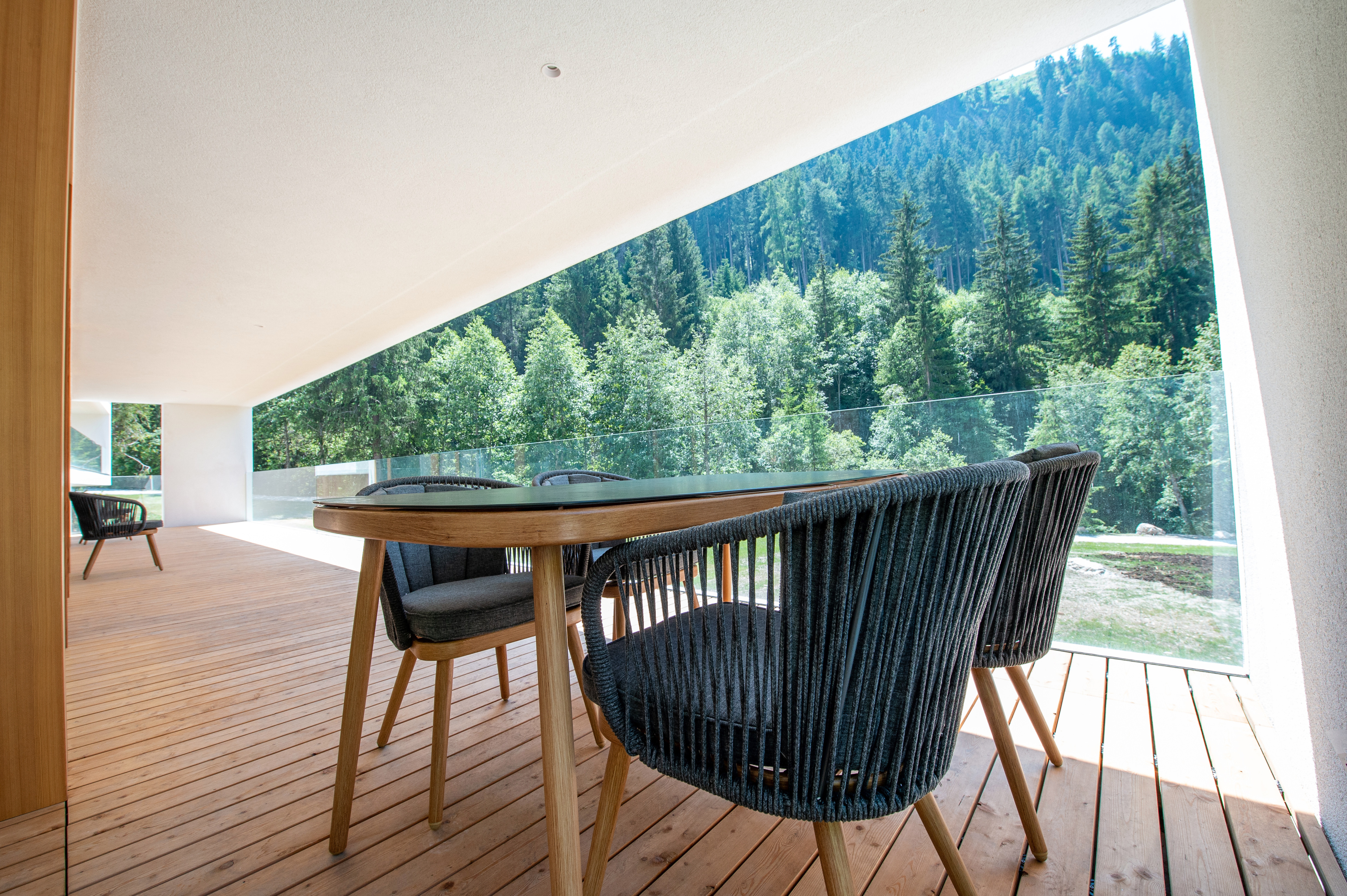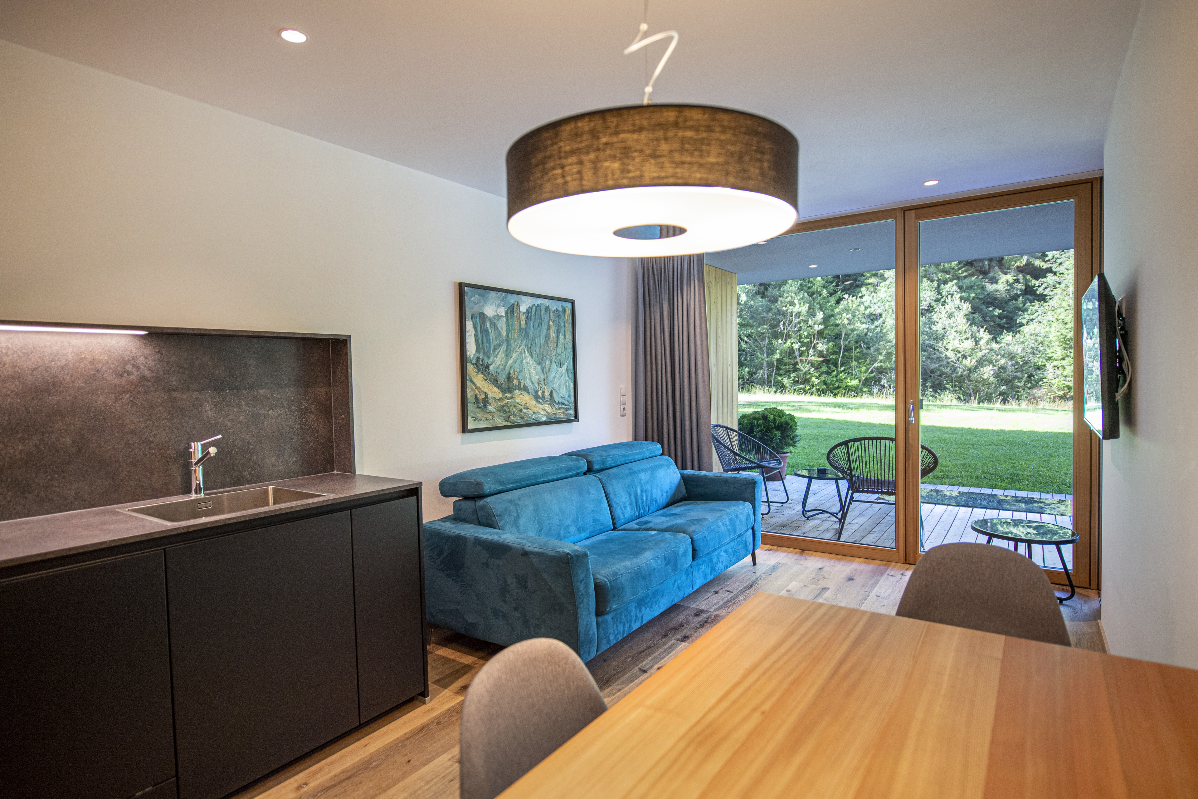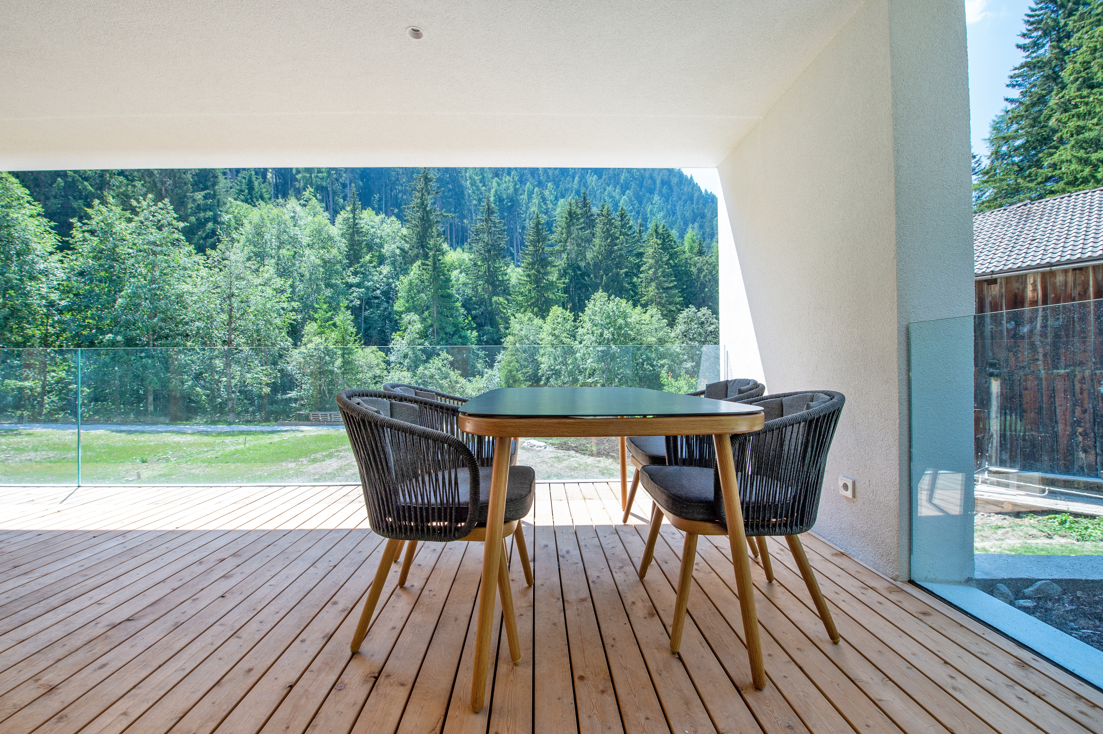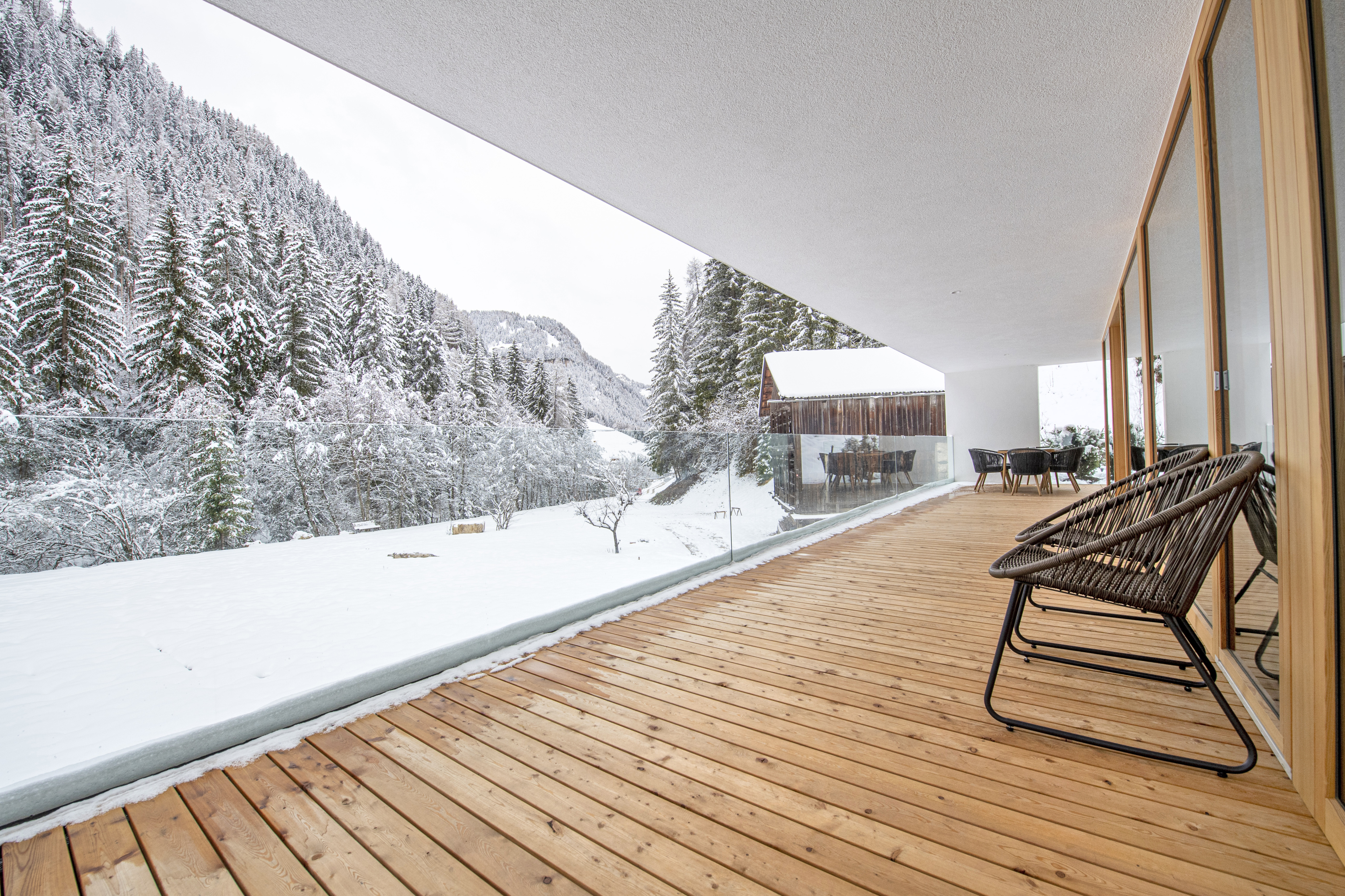 Greva bedeutet nicht nur, in einer einzigartigen Immobilie zu wohnen, sondern auch ein kleines Paradies im Herzen des Grödnertals zu genießen, wo der Wald zum Greifen nah ist und das frische Gebirgswasser des angrenzenden Baches den Alltag in den Dolomiten untermalt. Vor dem Haus können Sie den gepflegten Gemeinschaftsgarten genießen und die reine Bergluft einatmen.