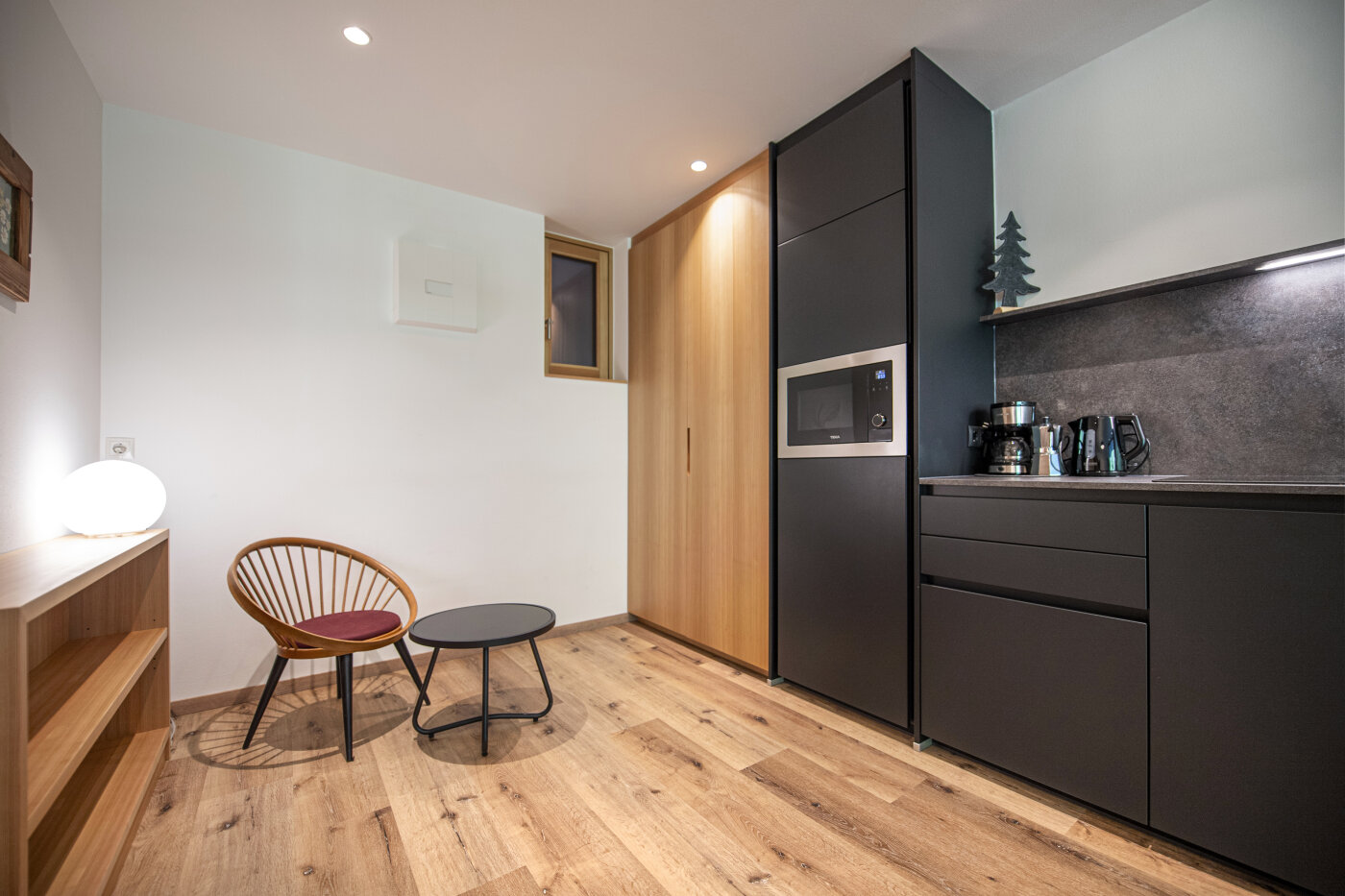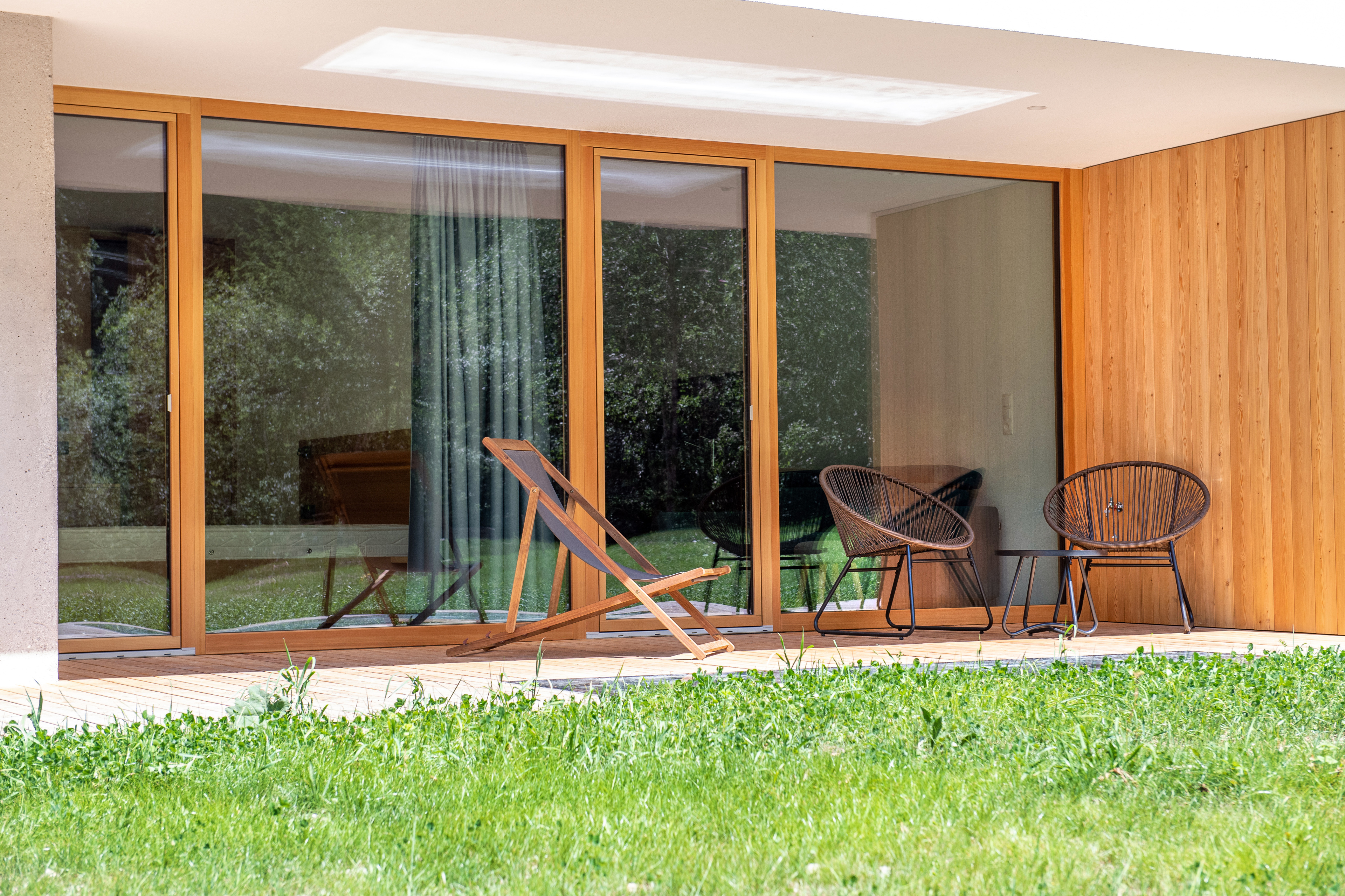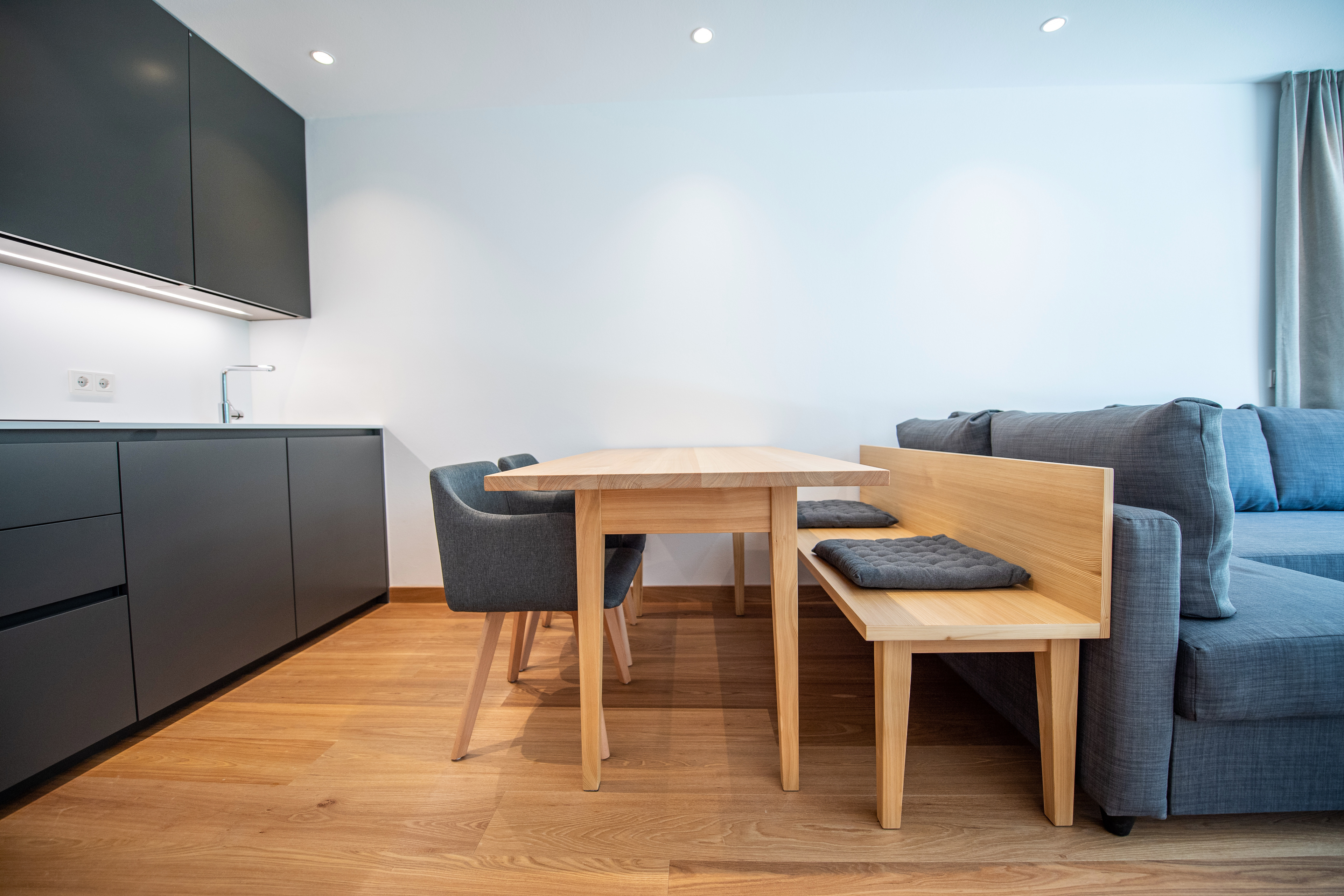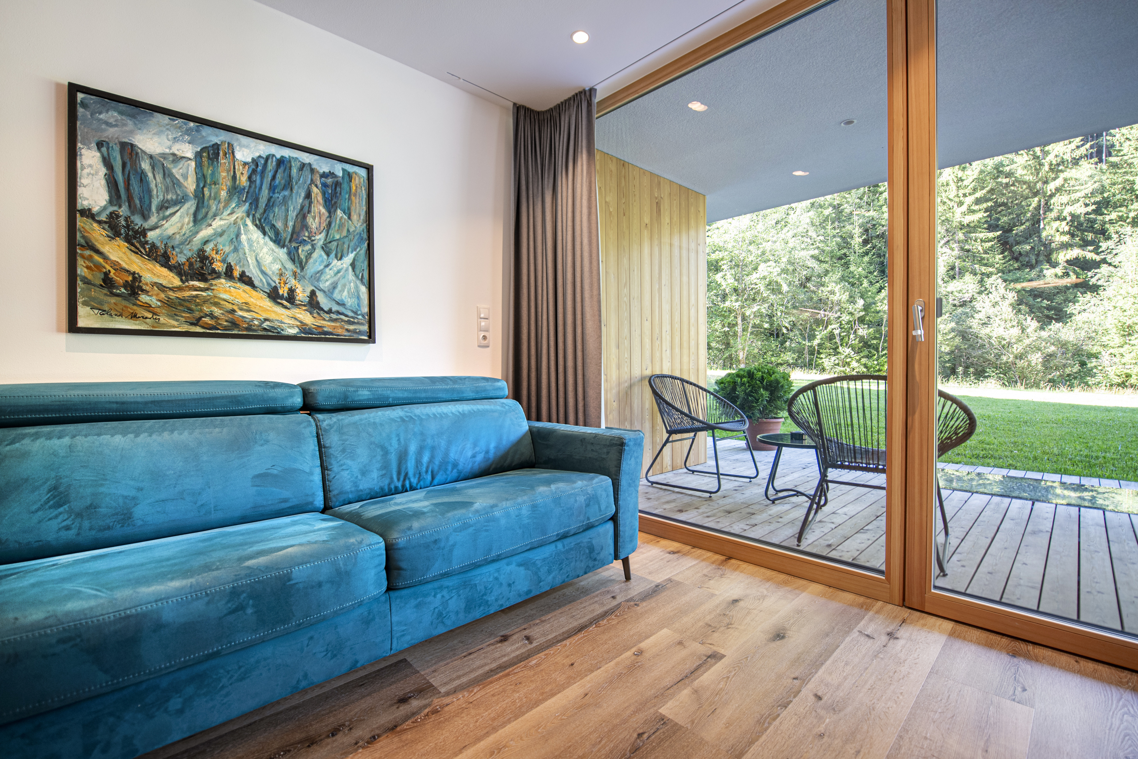 Greva bedeutet nicht nur, in einer einzigartigen Immobilie zu wohnen, sondern auch ein kleines Paradies im Herzen des Grödnertals zu genießen, wo der Wald zum Greifen nah ist und das frische Gebirgswasser des angrenzenden Baches den Alltag in den Dolomiten untermalt. Vor dem Haus können Sie den gepflegten Gemeinschaftsgarten genießen und die reine Bergluft einatmen.