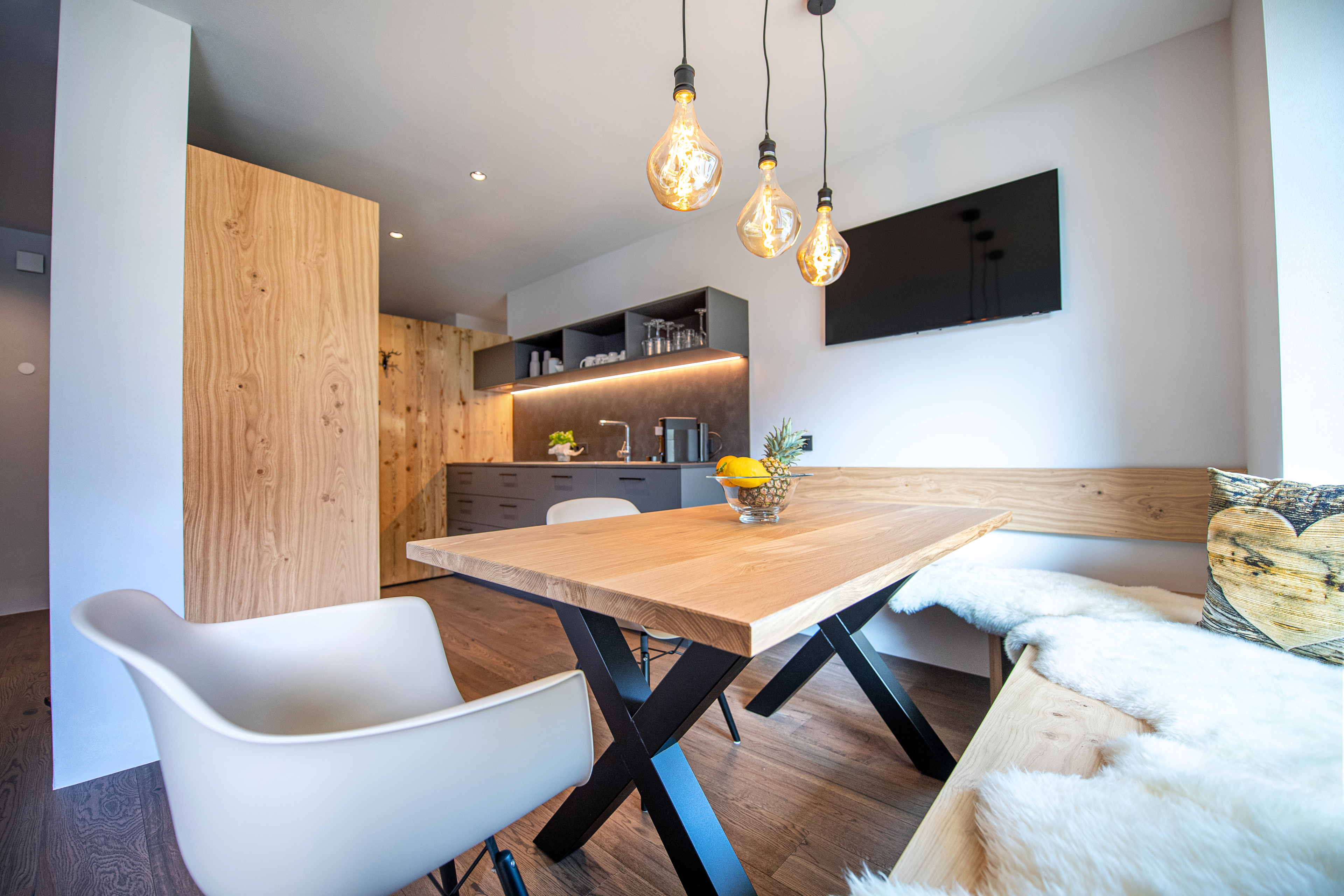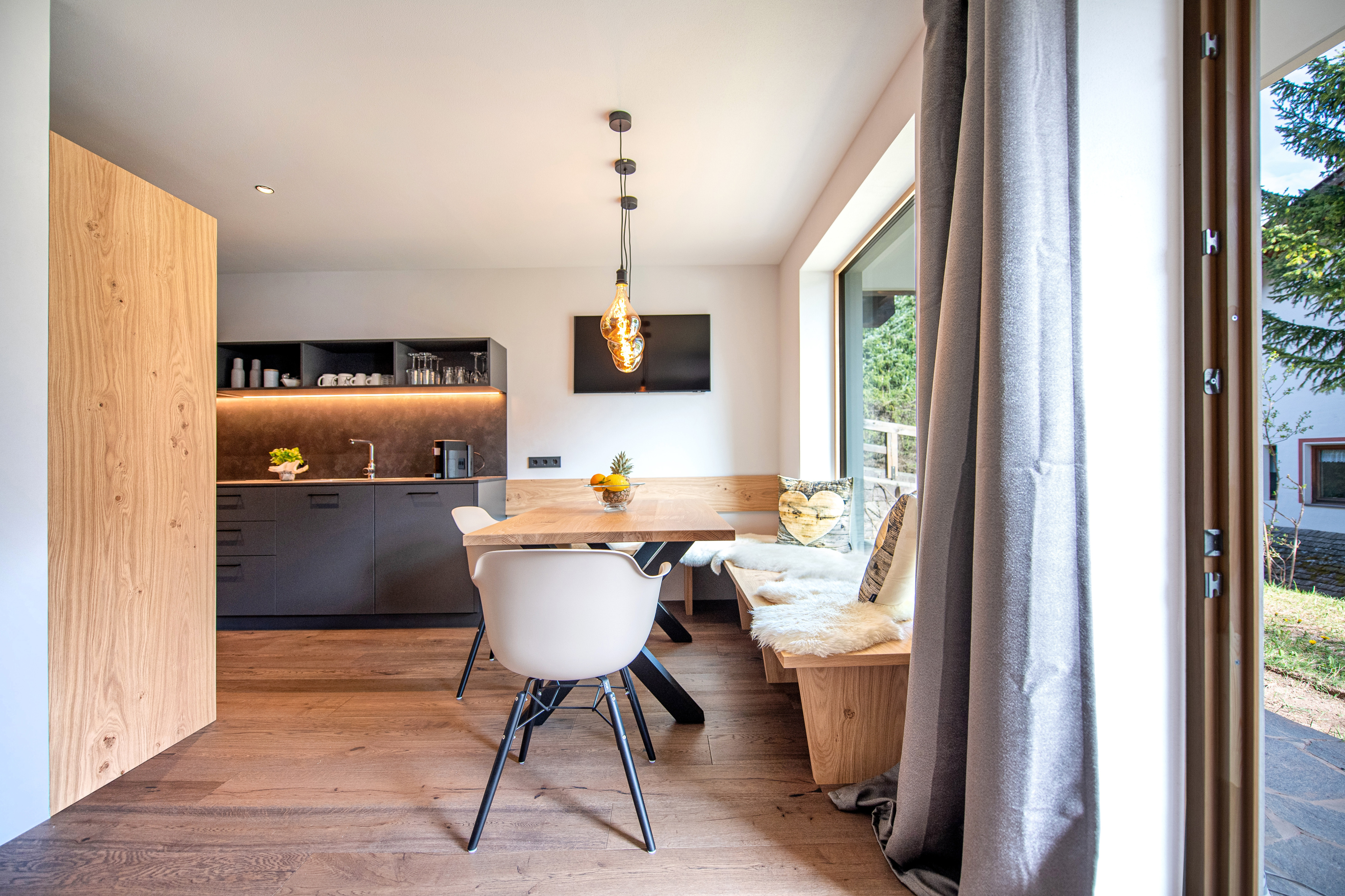Die Wohnung verfügt über alle notwendigen Annehmlichkeiten für einen perfekten Urlaub in Gröden, wie 1 Garagenparkplatz (nur für kleinere Autos geeignet - weitere öffentliche Außenparkplätze vor dem Haus vorhanden), kostenloses Wi-Fi, Skiraum für Ski- und Wanderequipment mit Schuhtrockner, Bettwäsche und Handtücher.