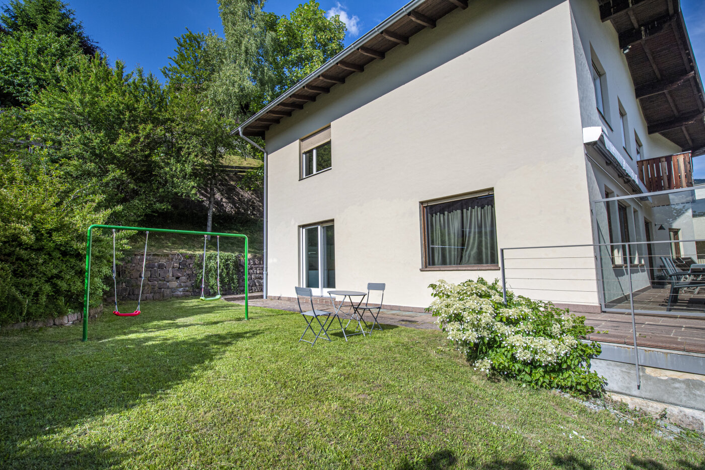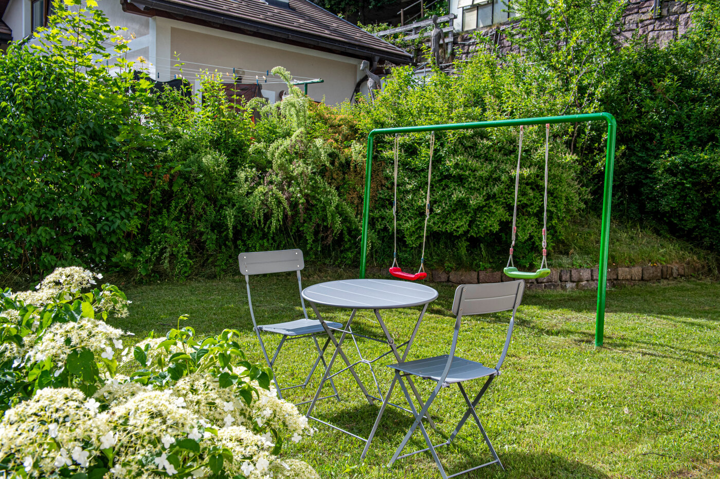 Das Haus hat einen privaten Garten, in dem Ihre Kinder frei spielen und sich auf der Schaukel austoben können