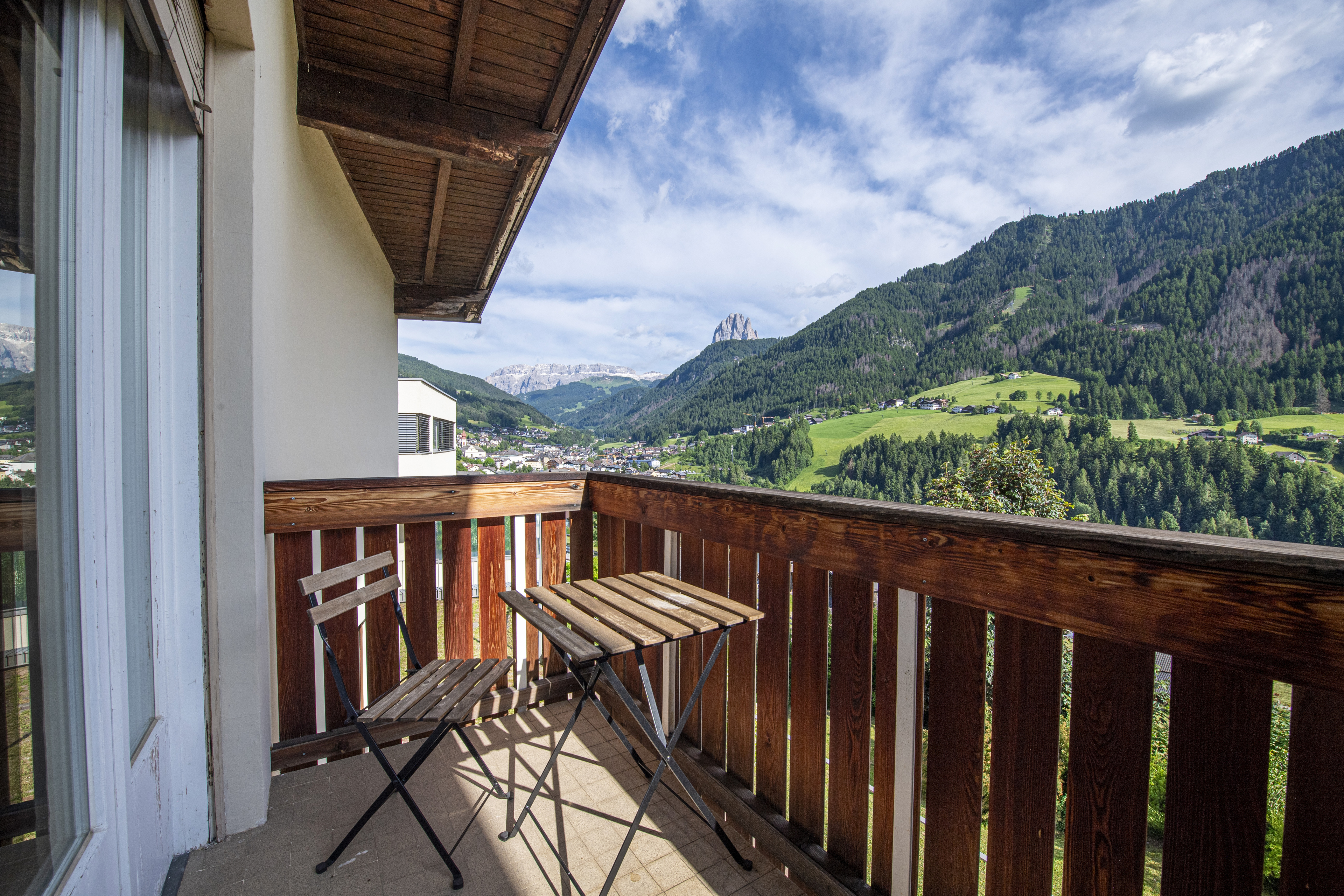 Es zeichnet sich durch seine panoramische und sonnige Lage aus und ist dennoch nicht zu weit vom Zentrum entfernt, das ca. 650 m entfernt ist und in ca. 10 Minuten zu Fuß oder in wenigen Minuten mit den kostenlosen Saisonbussen, die ca. 200 m vom Haus entfernt halten, erreicht werden kann. Alle notwendigen Dienstleistungen wie Supermärkte, Geschäfte, Bars, Restaurants und Autovermietungen finden Sie direkt im Zentrum von St. Ulrich.
