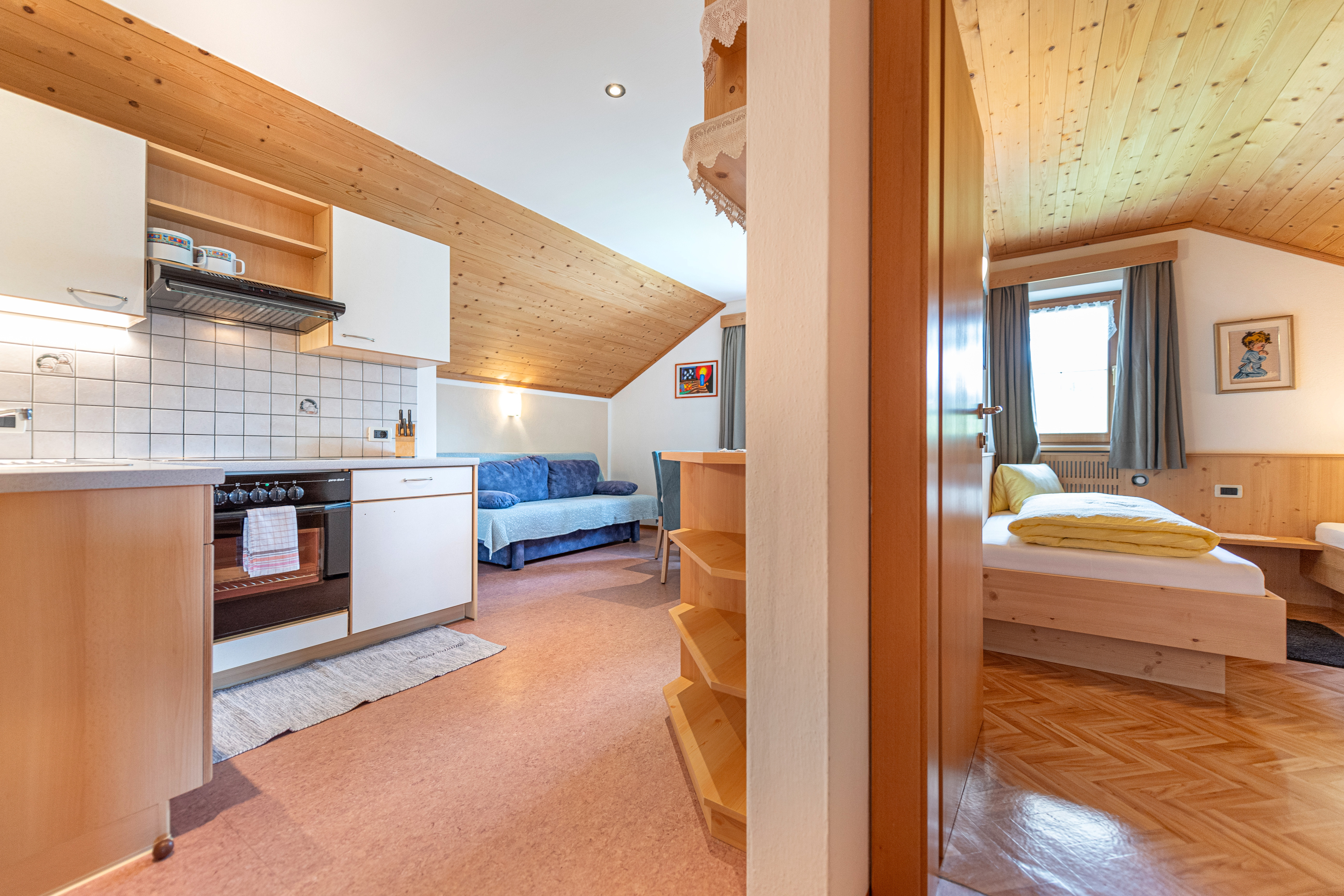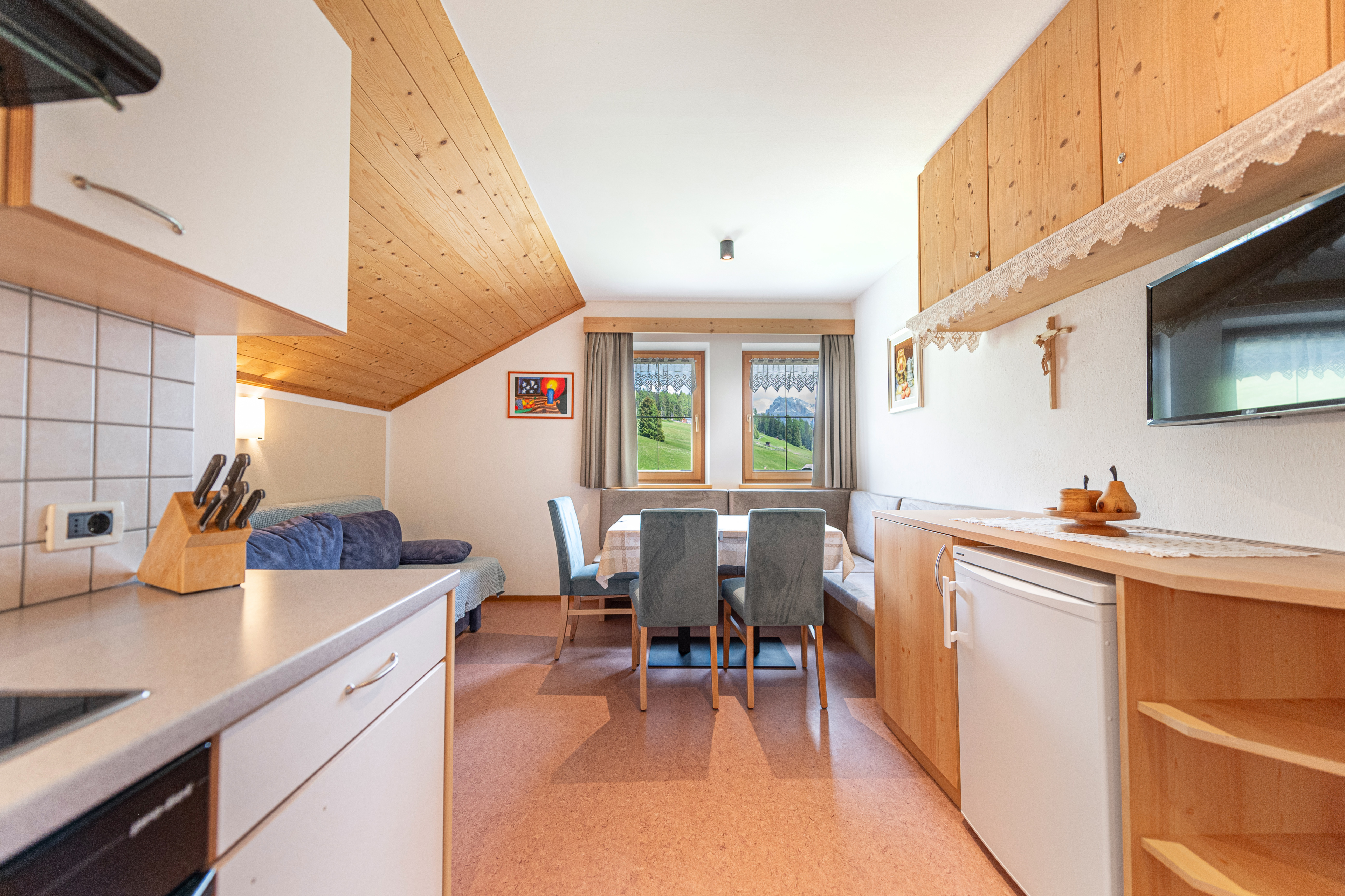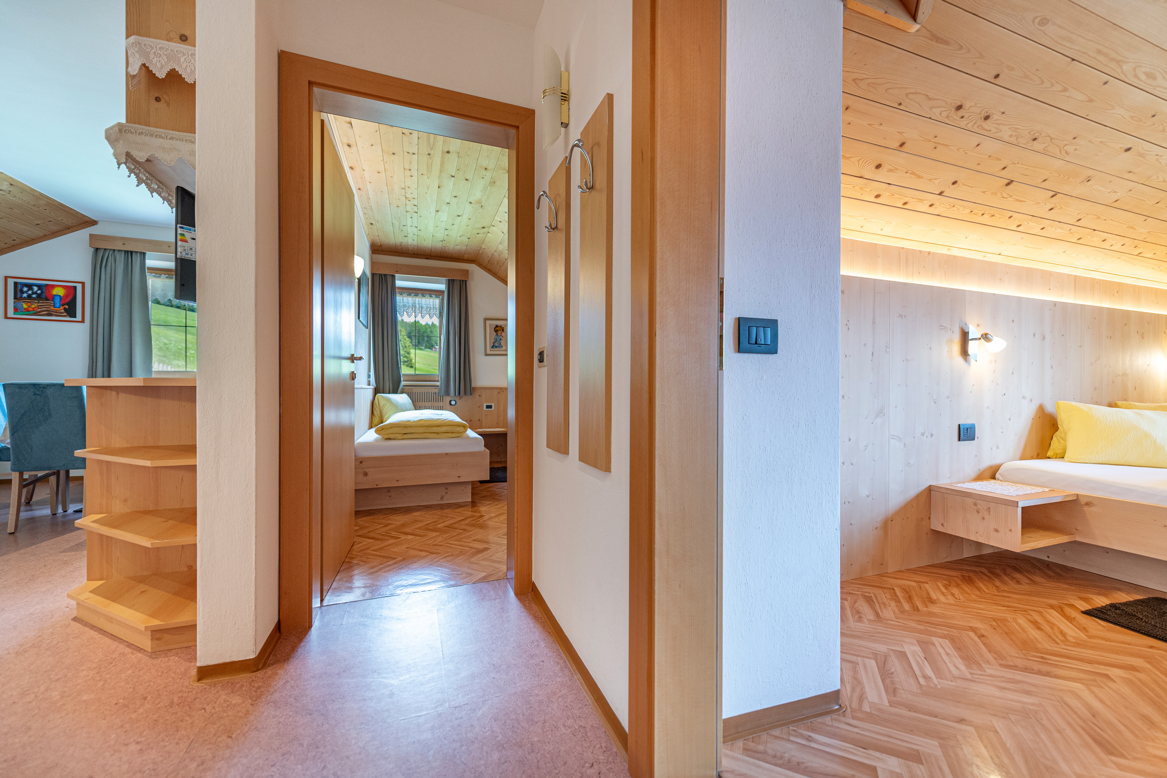 In winter, the Piculin slope is about 500 m away from the house, the mountain stations of the Piculin cable car and the Piz de Plaies cable car, on the other hand, are about 900 m away. It is the ideal position to experience two ski areas in the Dolomiti Superski resort, because the Piculin slope leads you directly to the bus connection to the Sellaronda and the La Erta slope leads you to San Vigilio, from where you can directly reach the Plan de Corones.
