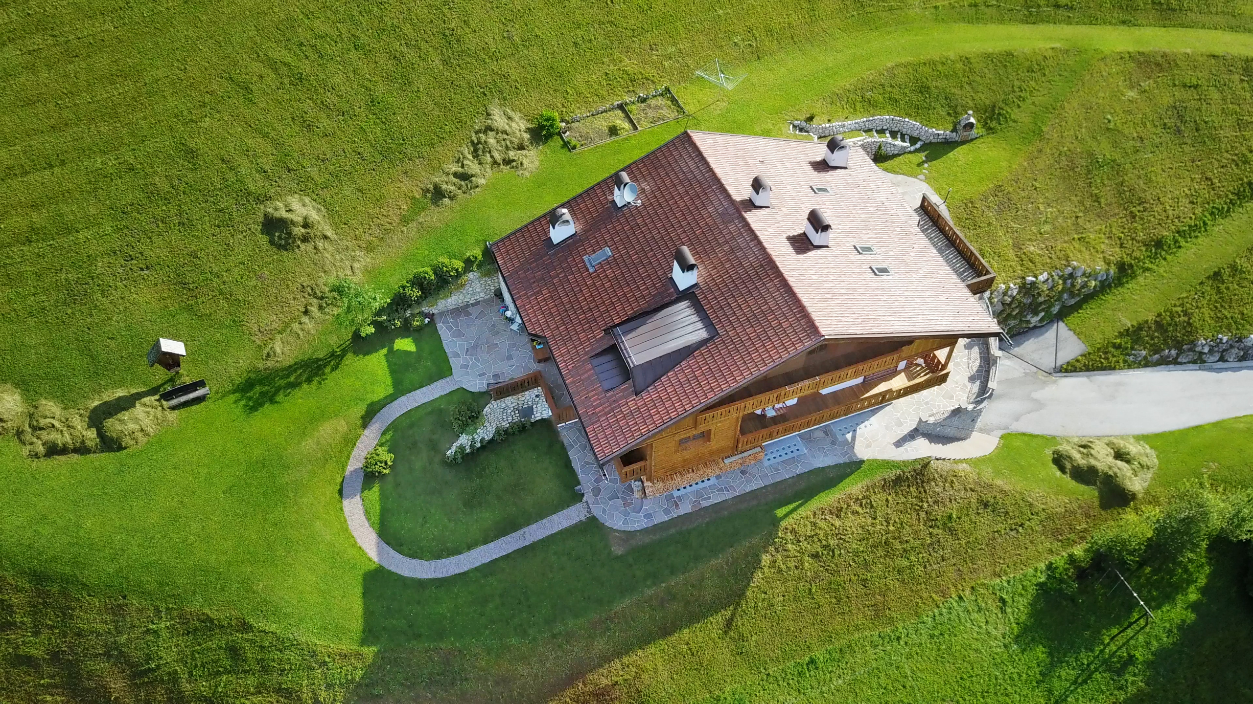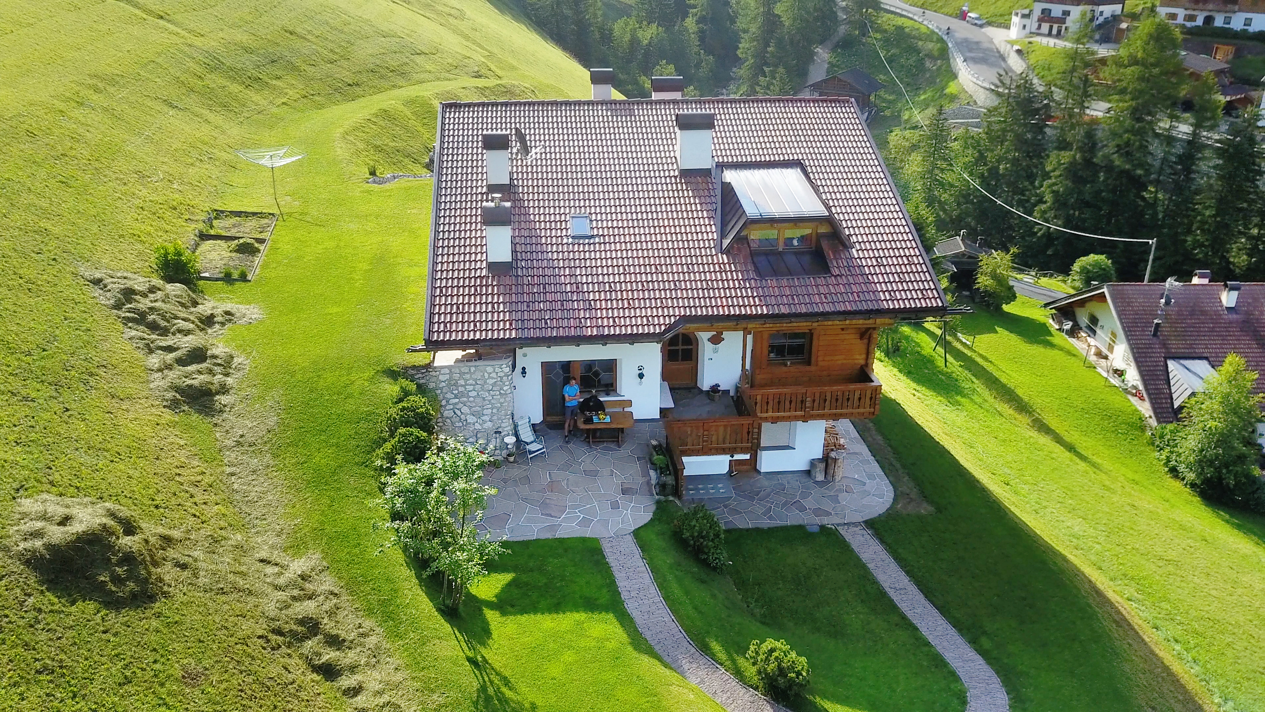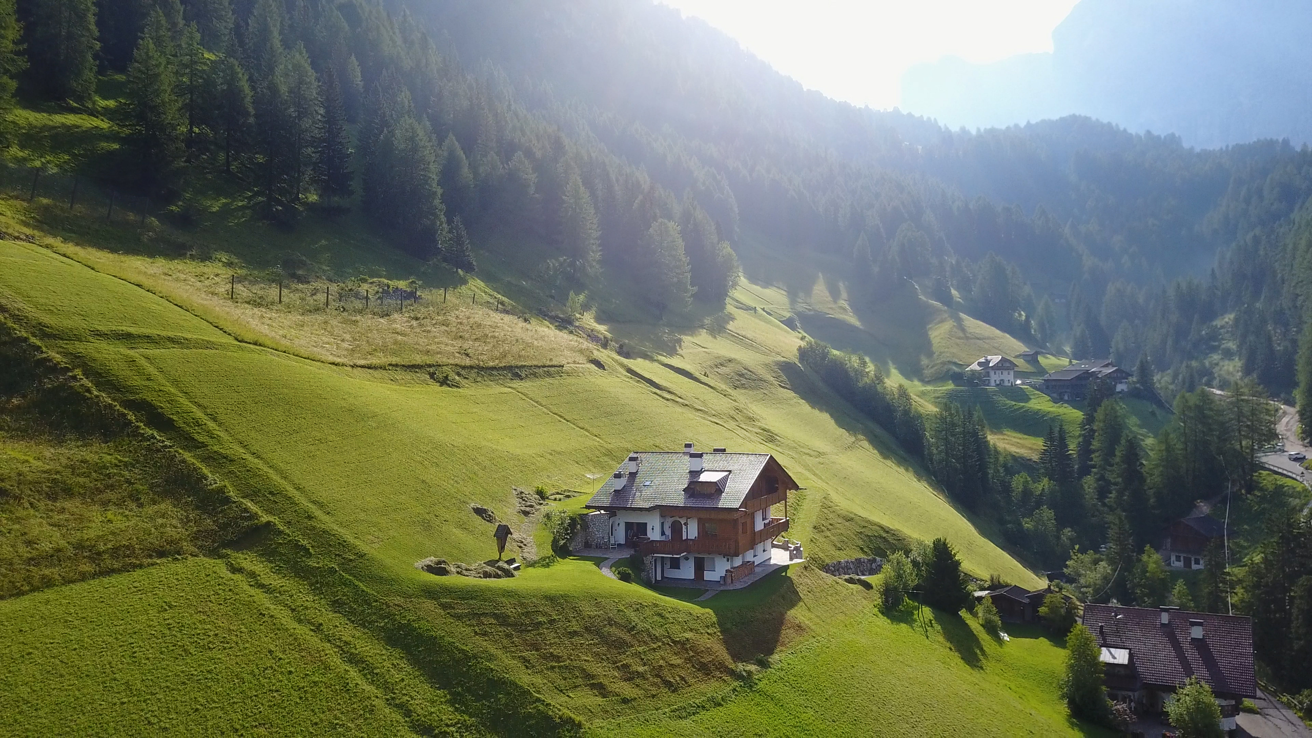 In summer the property boasts wide green meadows around the house, including private garden and a breathtaking panoramic seat. Hiking paths towards the UNESCO Dolomites do start directly from the house.