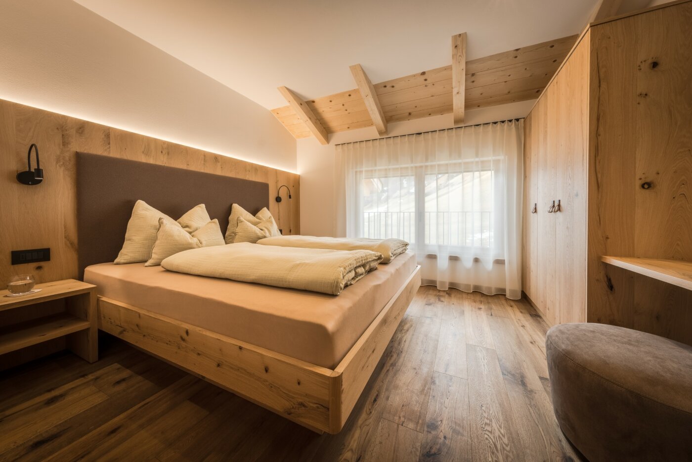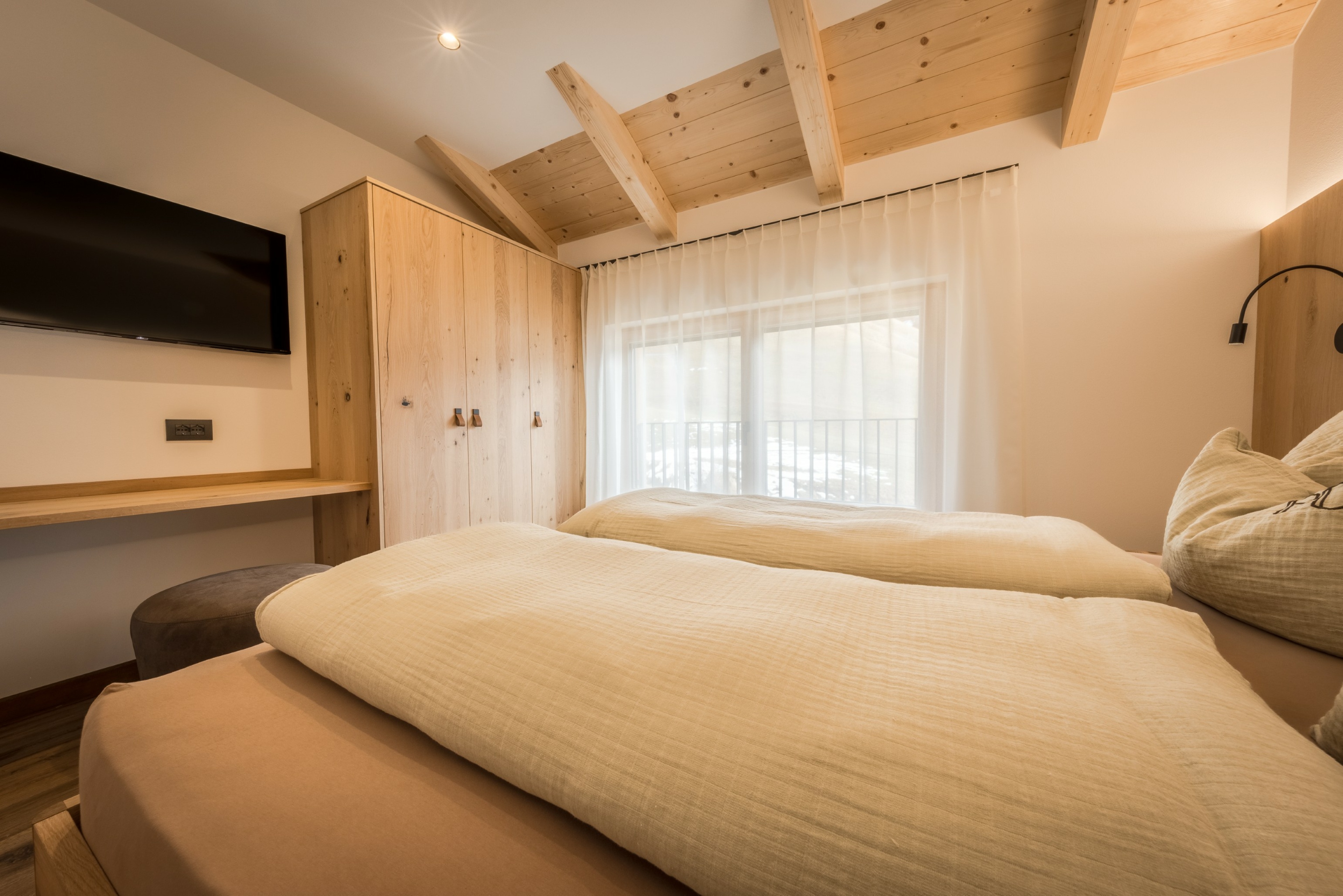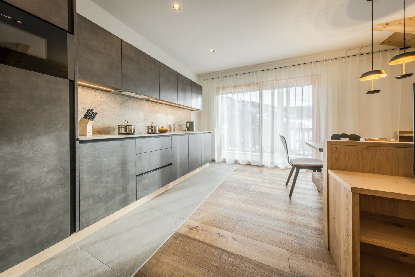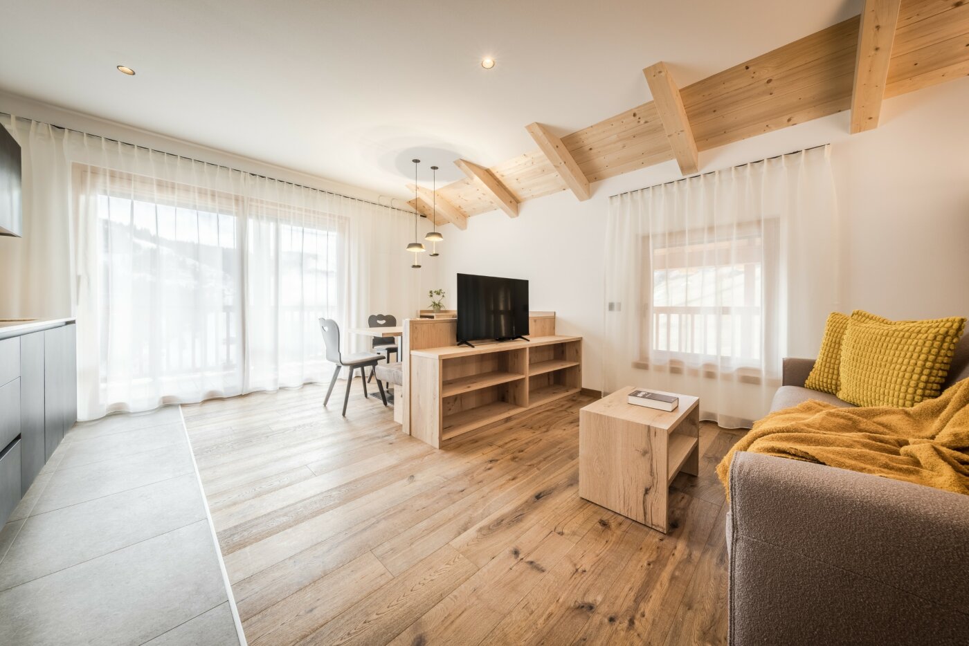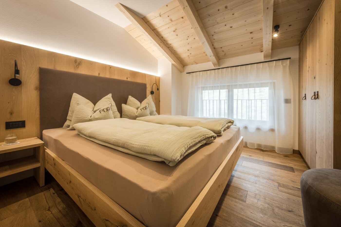 L’immobile è arredato con pregiato legno locale e si distingue per linee eleganti e armoniose, pensate per garantire il massimo comfort durante il vostro soggiorno nelle Dolomiti.