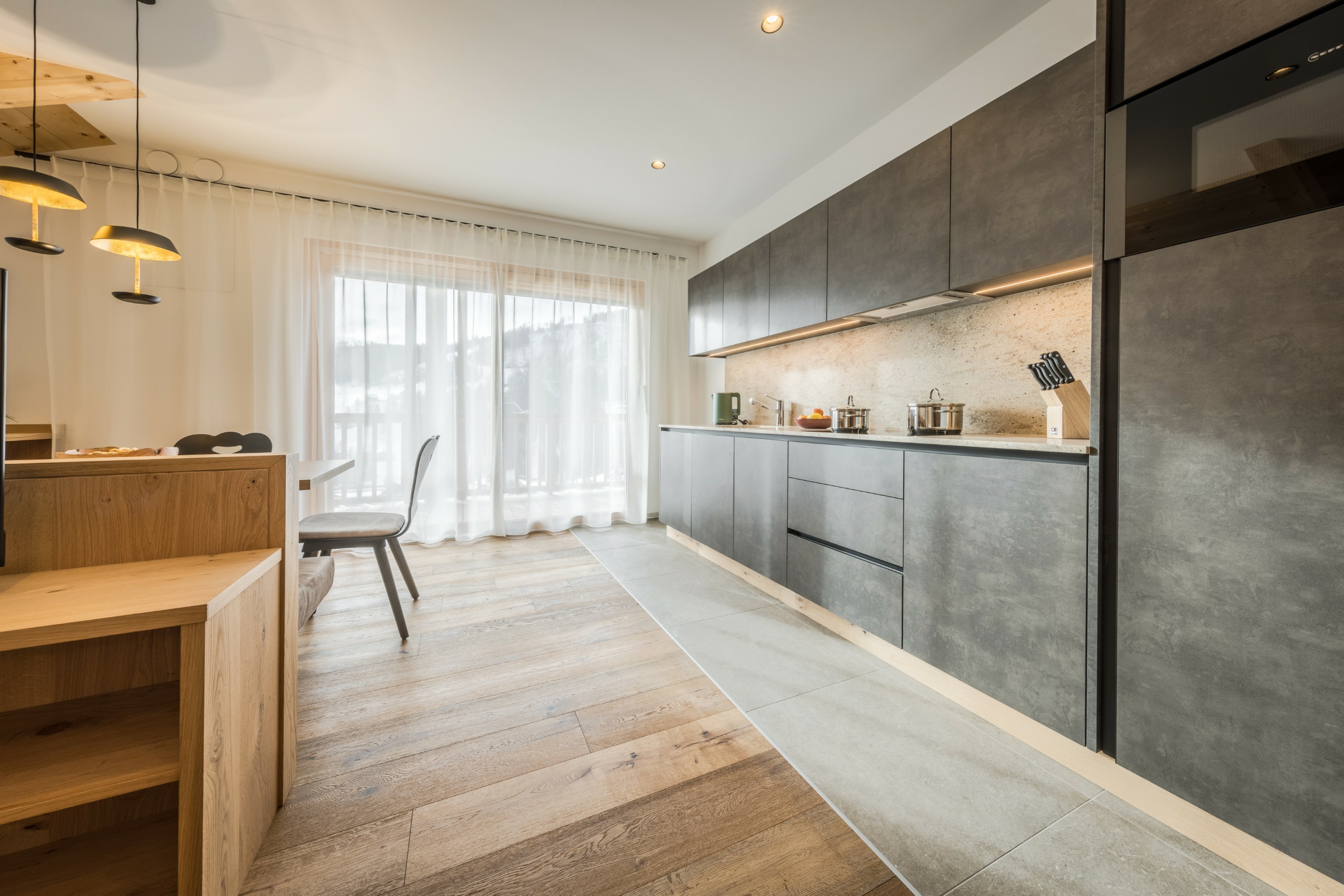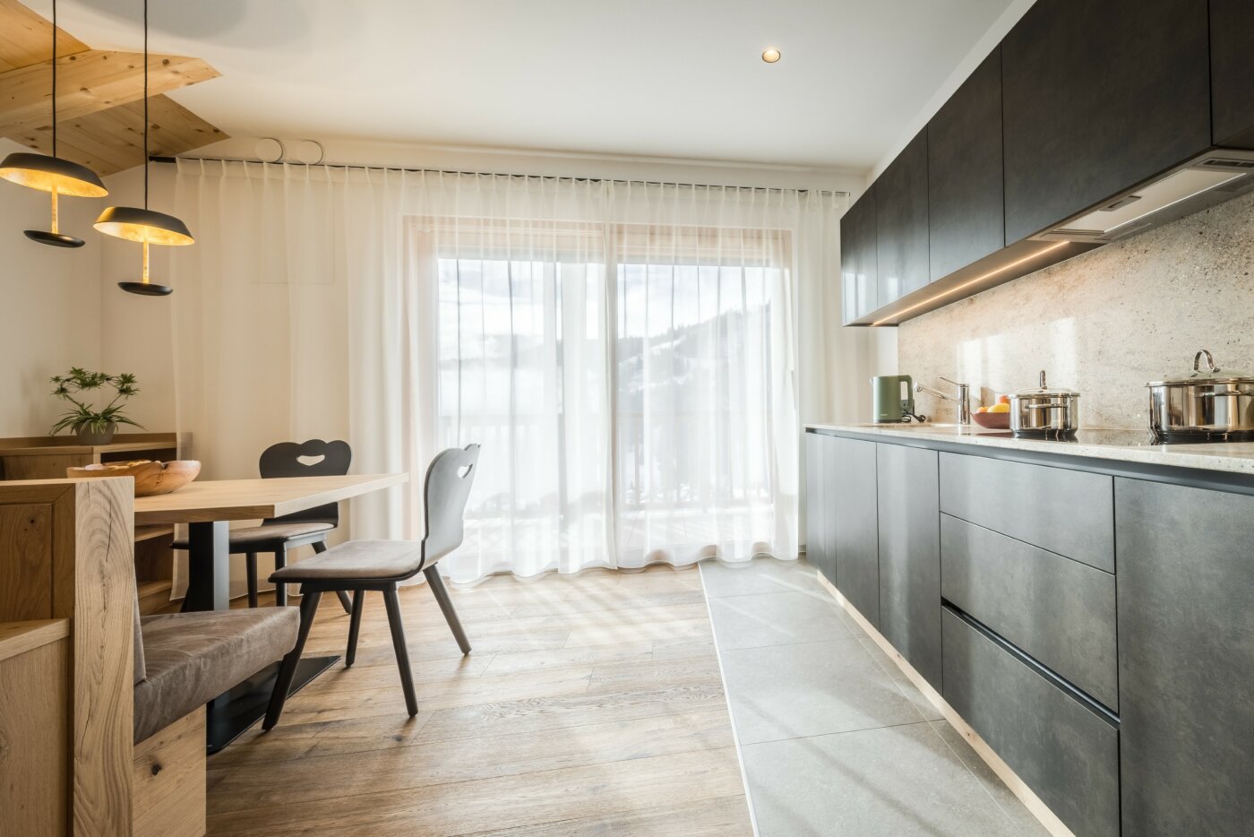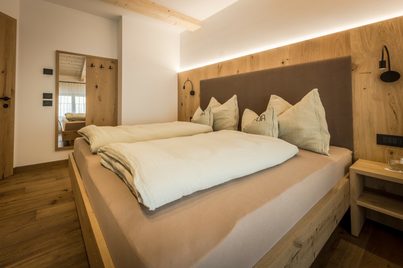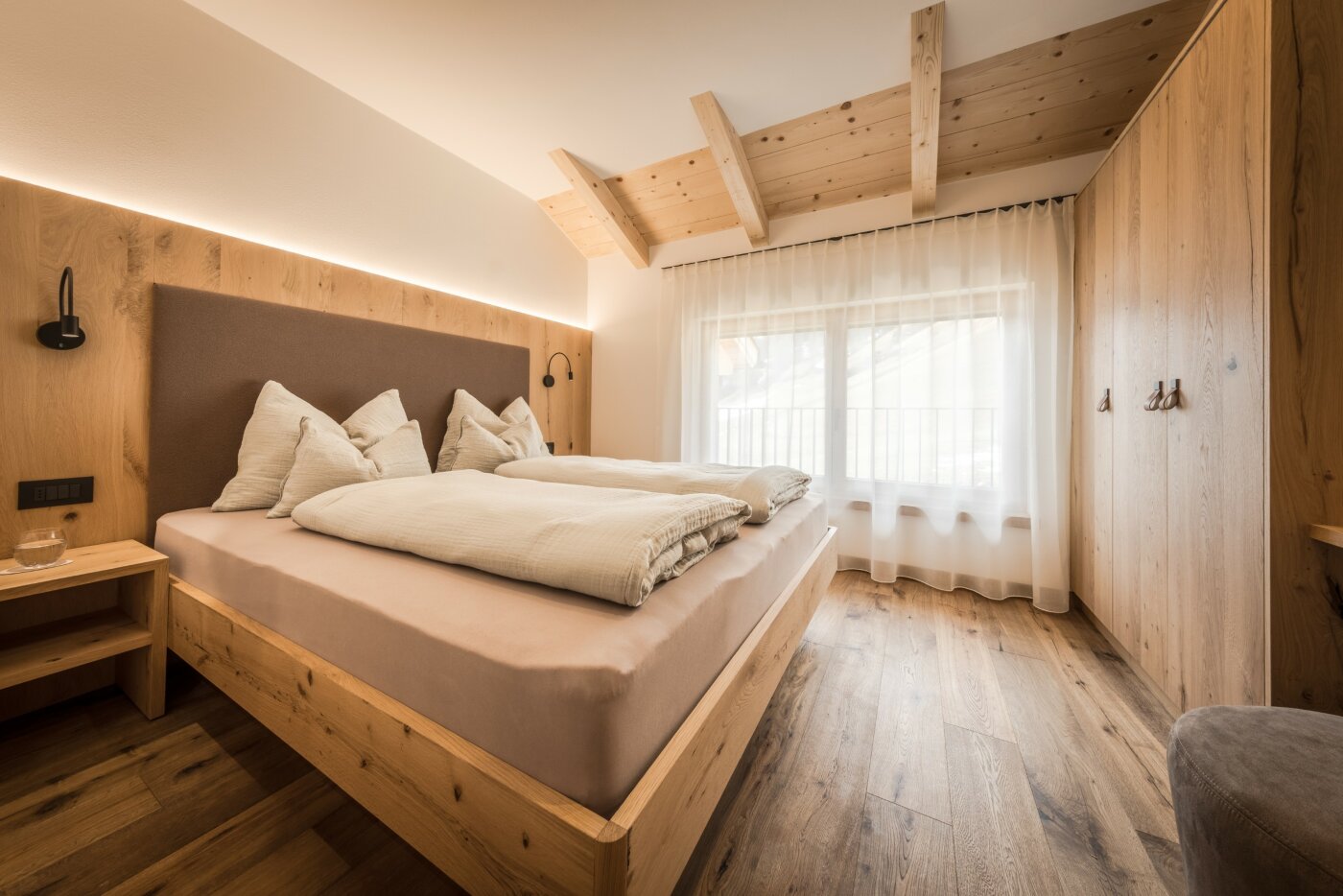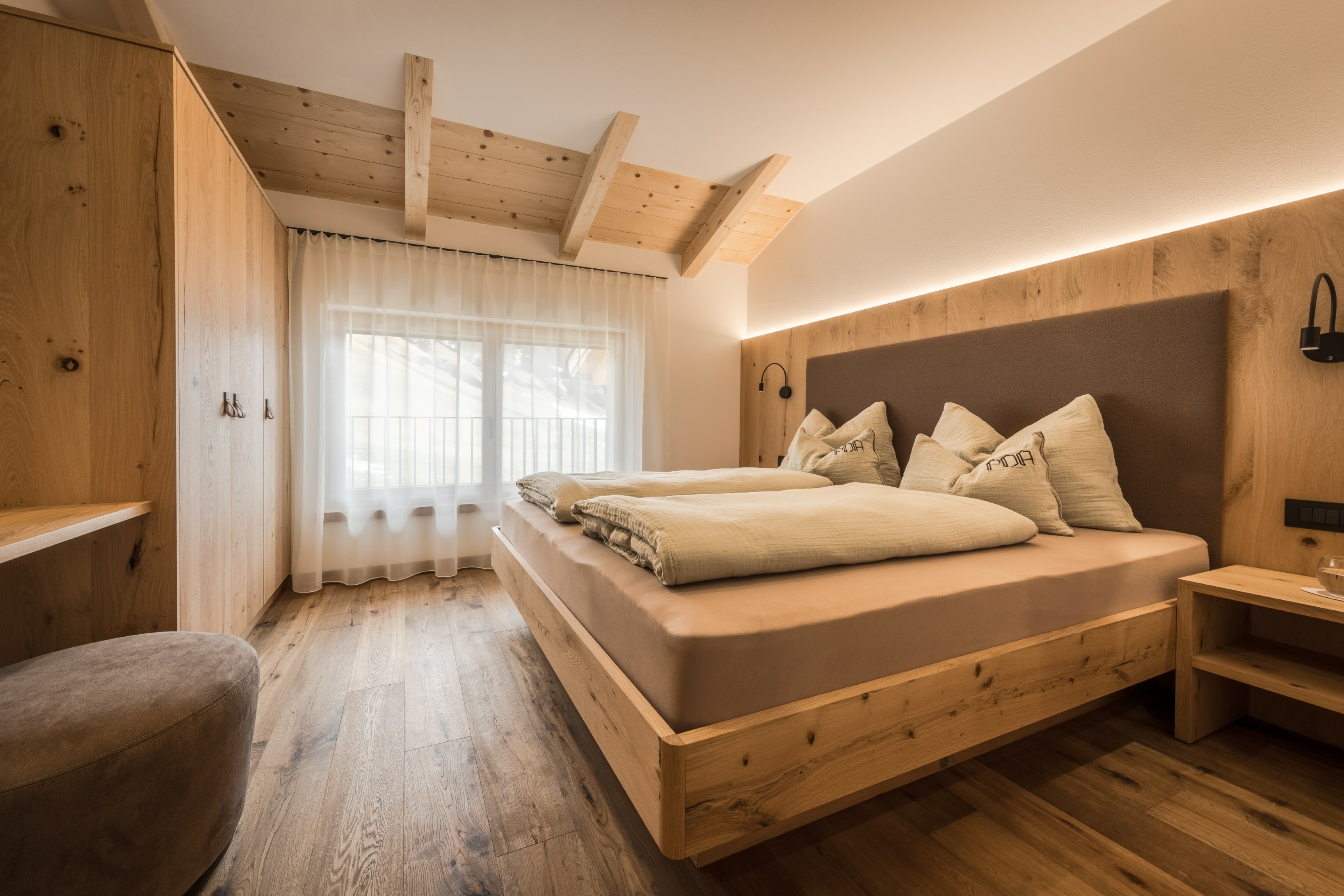 L’immobile è arredato con pregiato legno locale e si distingue per linee eleganti e armoniose, pensate per garantire il massimo comfort durante il vostro soggiorno nelle Dolomiti.