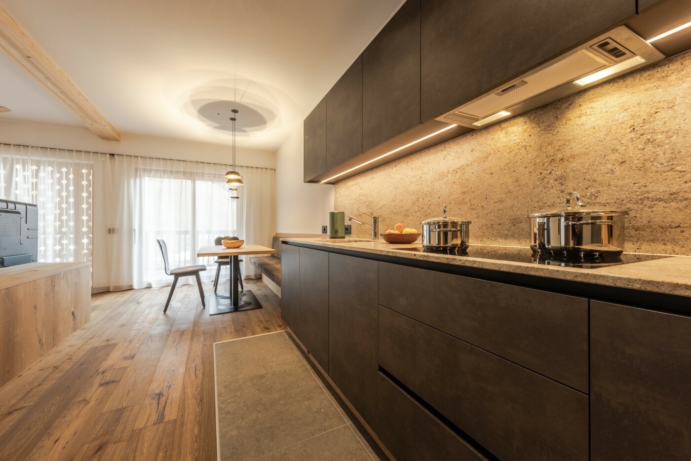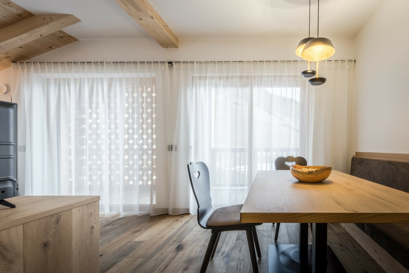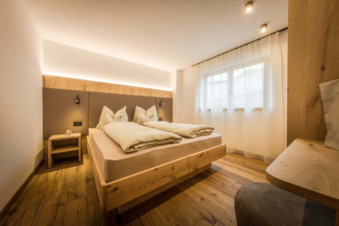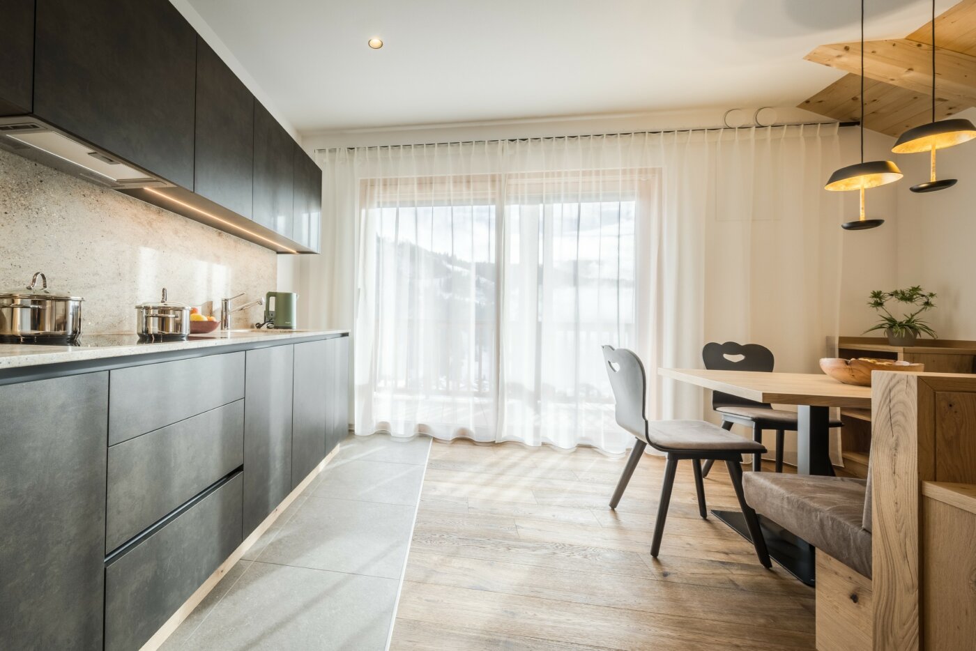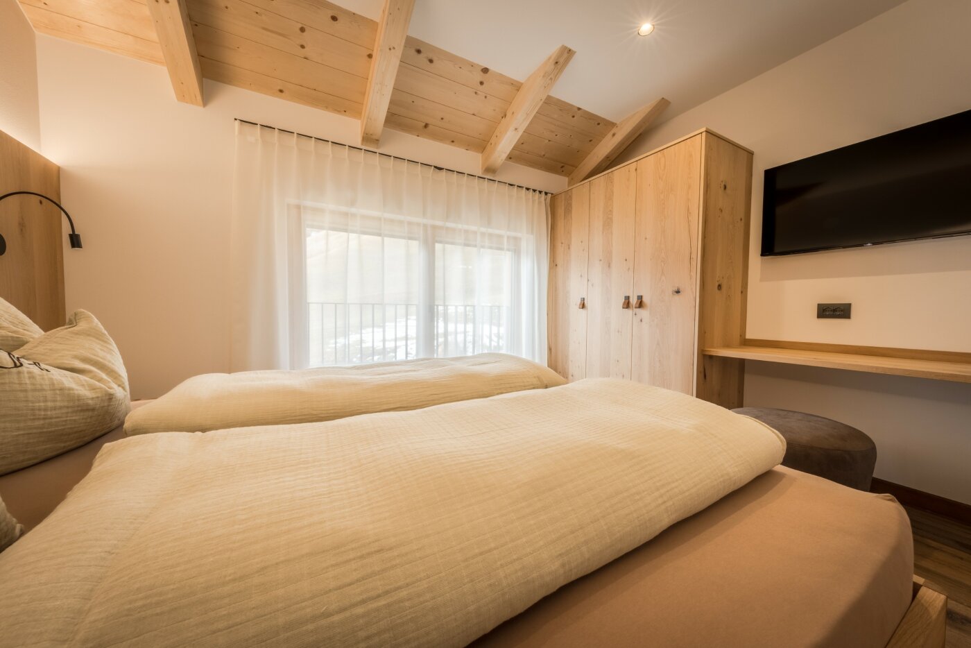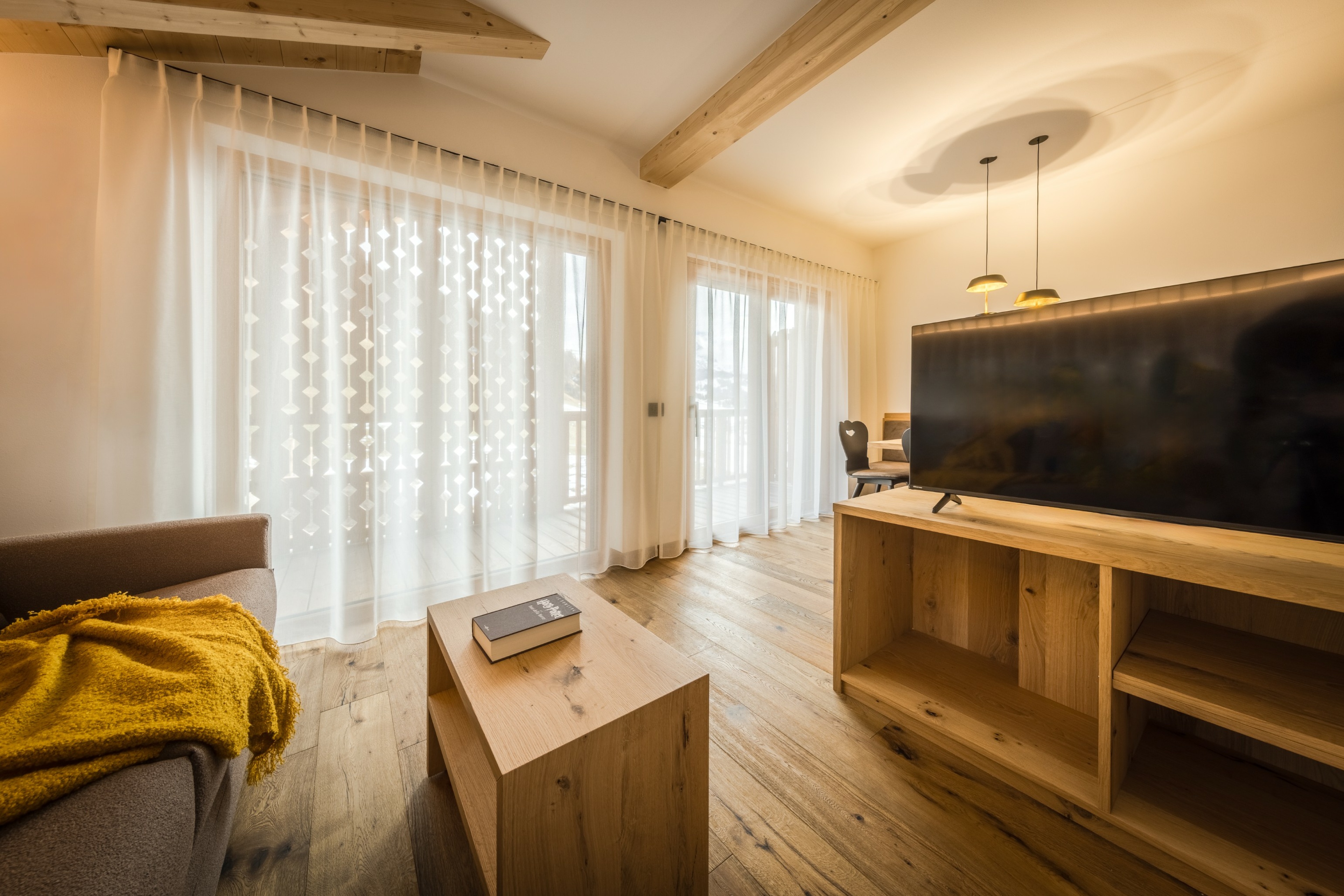 L’immobile è arredato con pregiato legno locale e si distingue per linee eleganti e armoniose, pensate per garantire il massimo comfort durante il vostro soggiorno nelle Dolomiti.