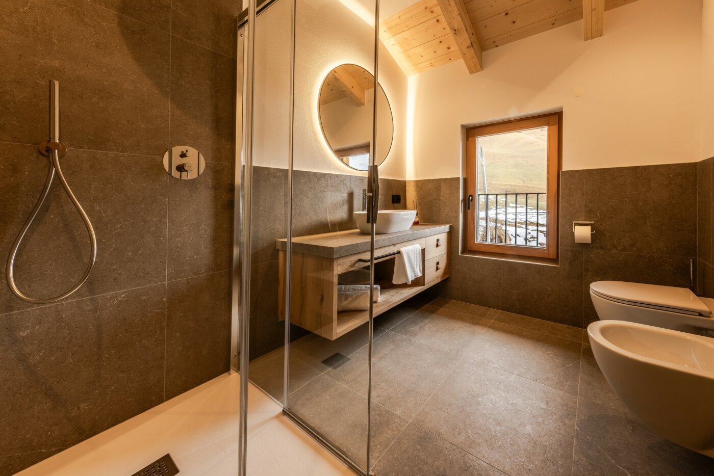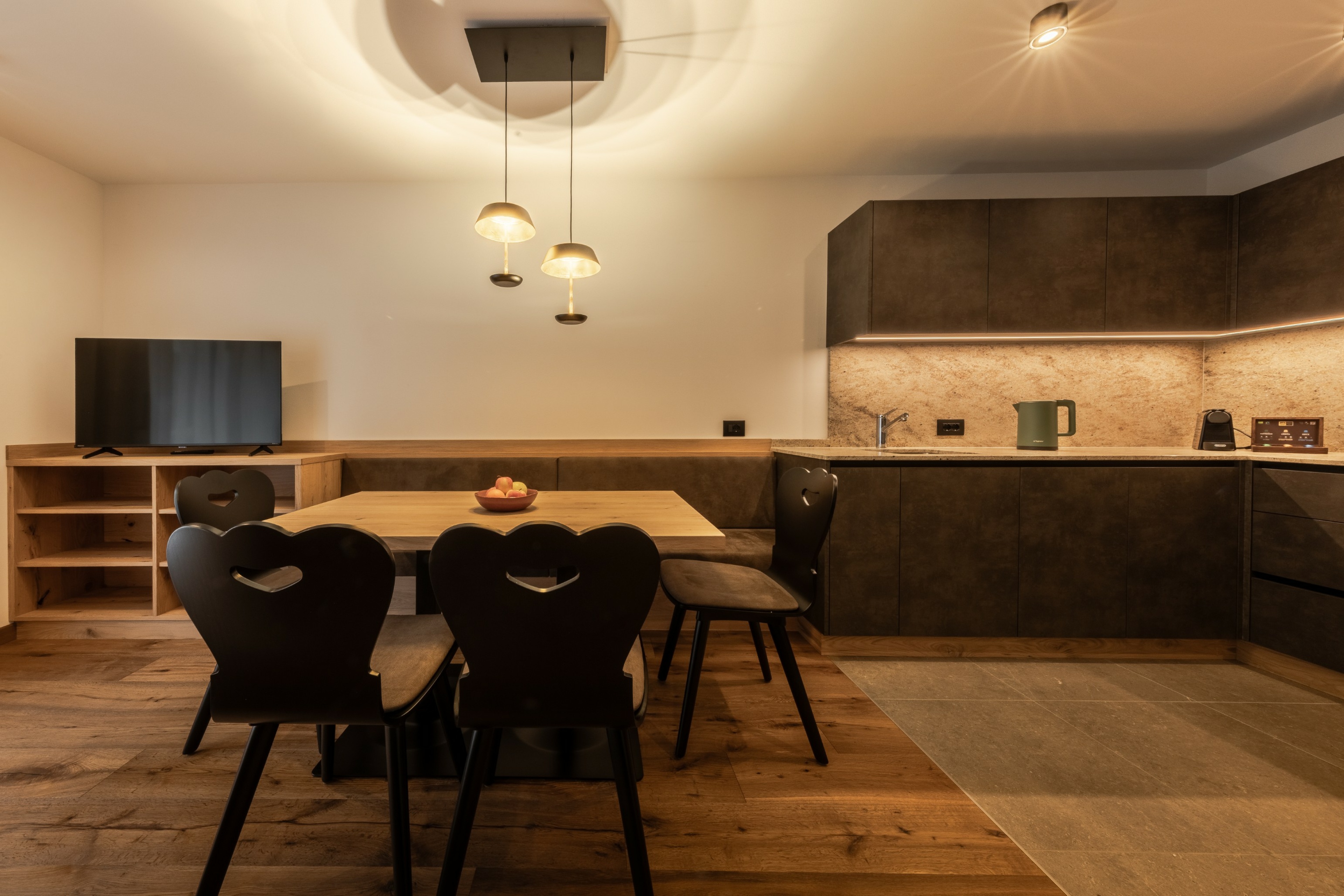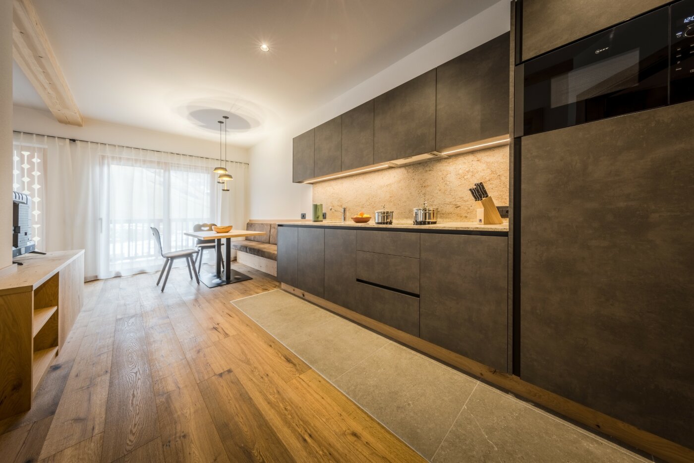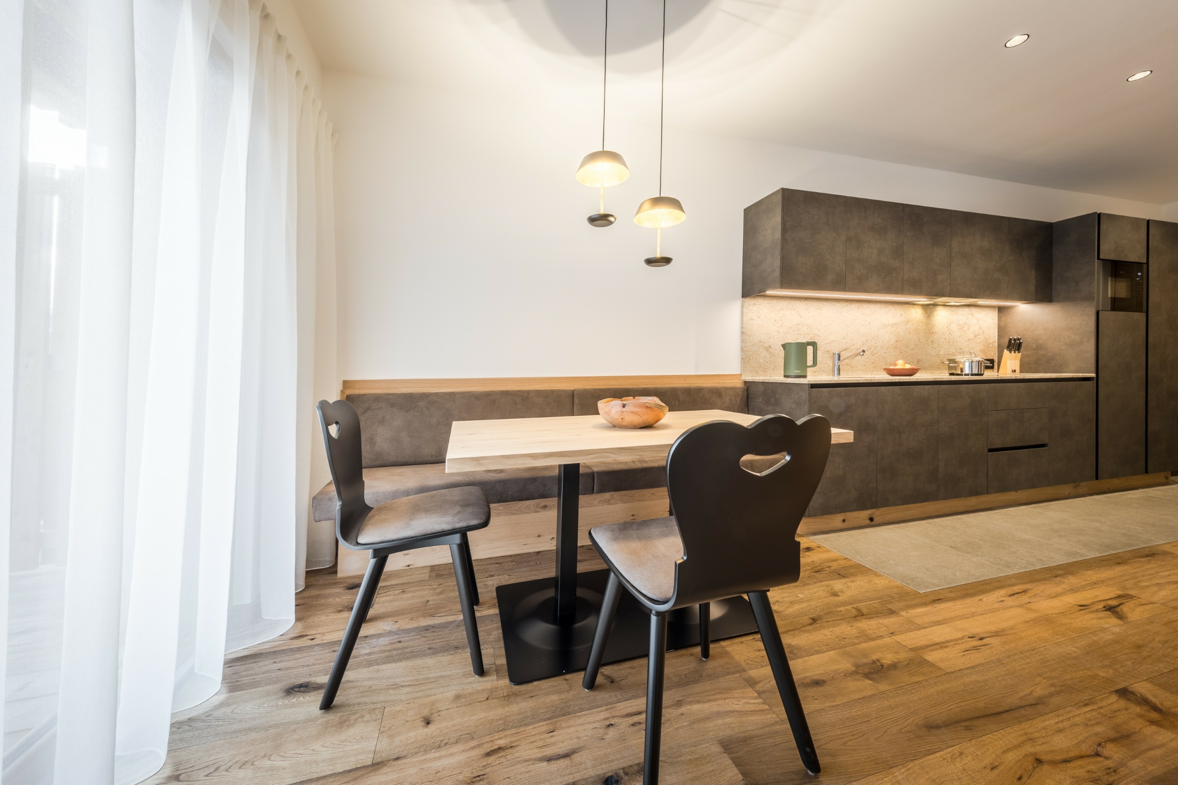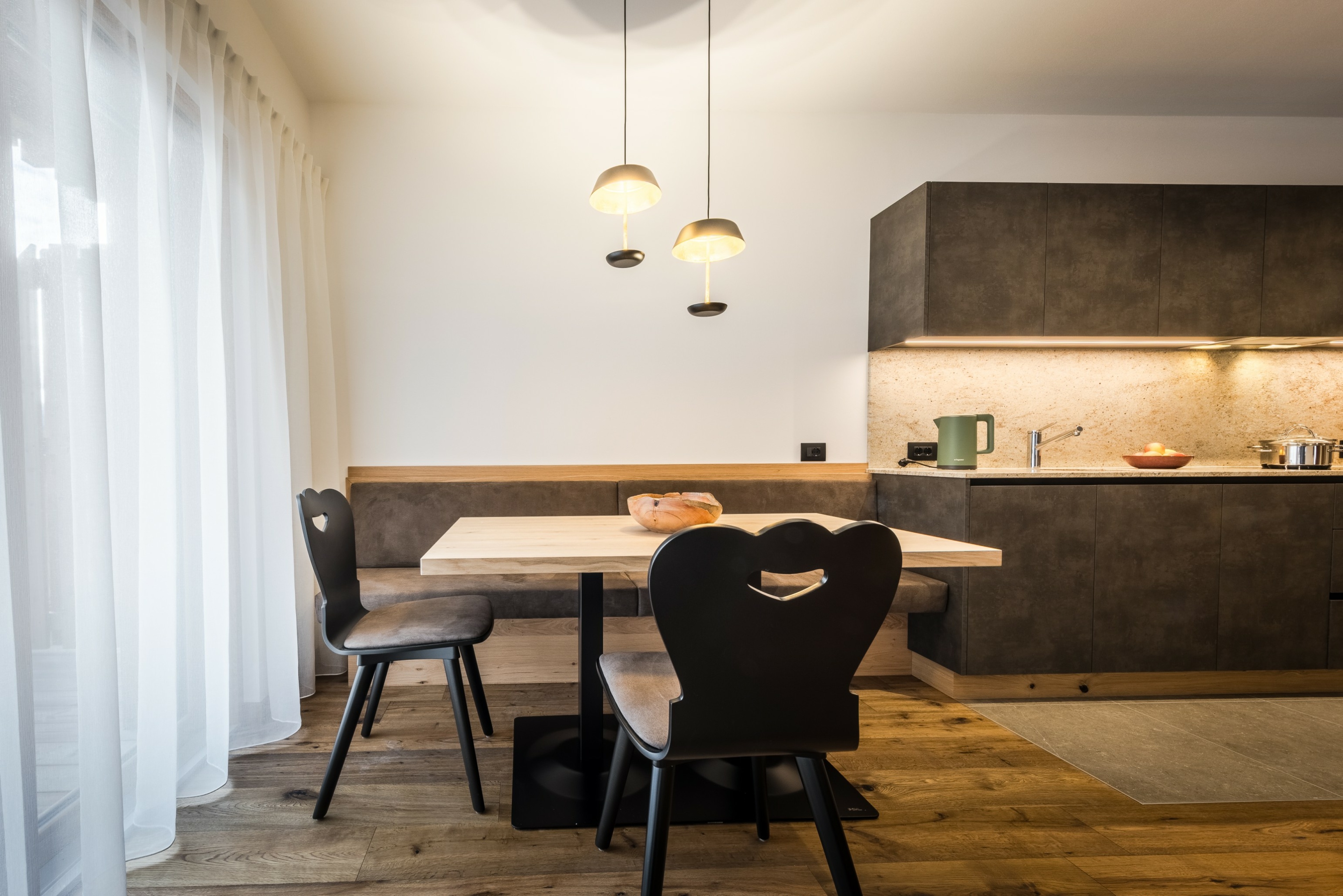 L’immobile è arredato con pregiato legno locale e si distingue per linee eleganti e armoniose, pensate per garantire il massimo comfort durante il vostro soggiorno nelle Dolomiti.
