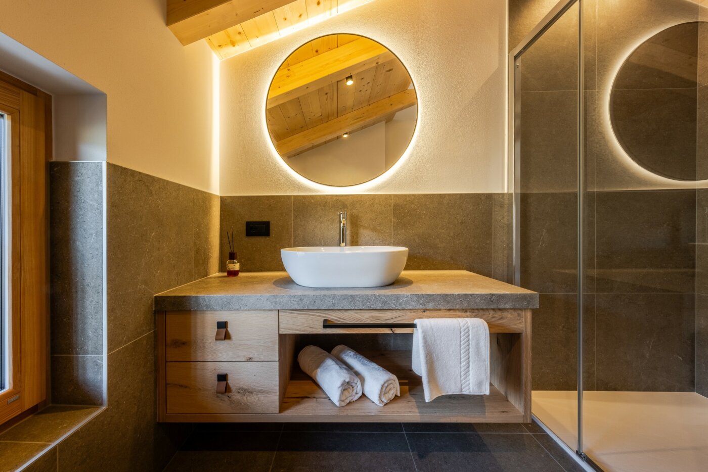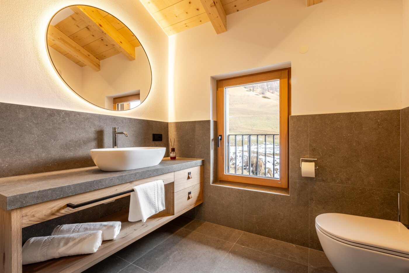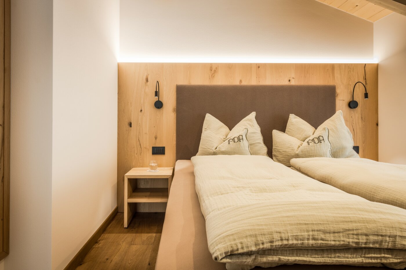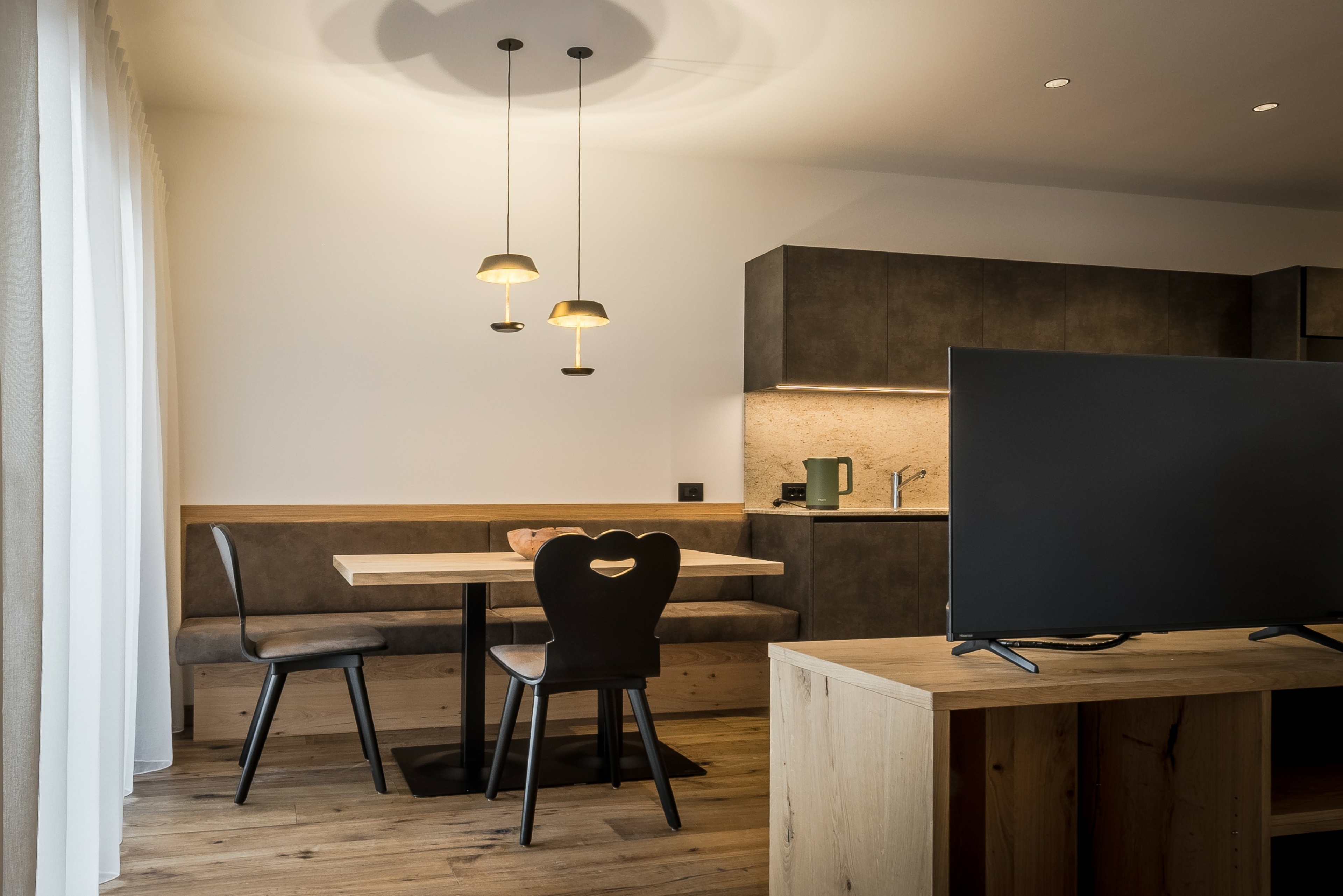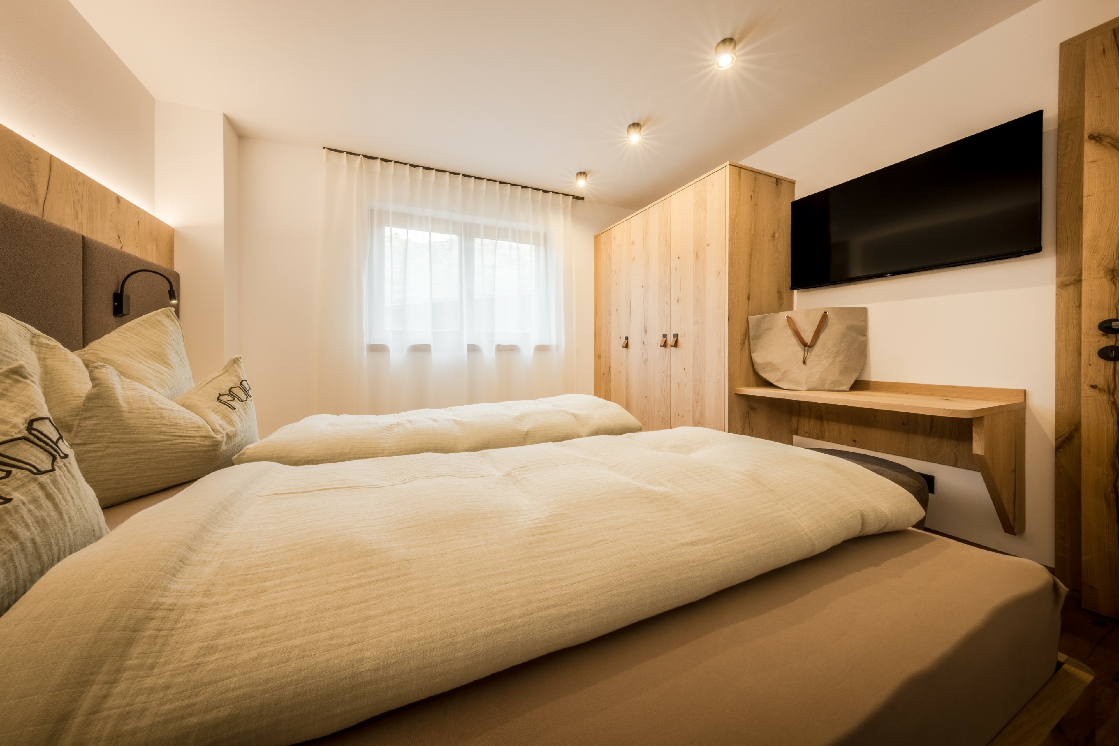 L’immobile è arredato con pregiato legno locale e si distingue per linee eleganti e armoniose, pensate per garantire il massimo comfort durante il vostro soggiorno nelle Dolomiti.