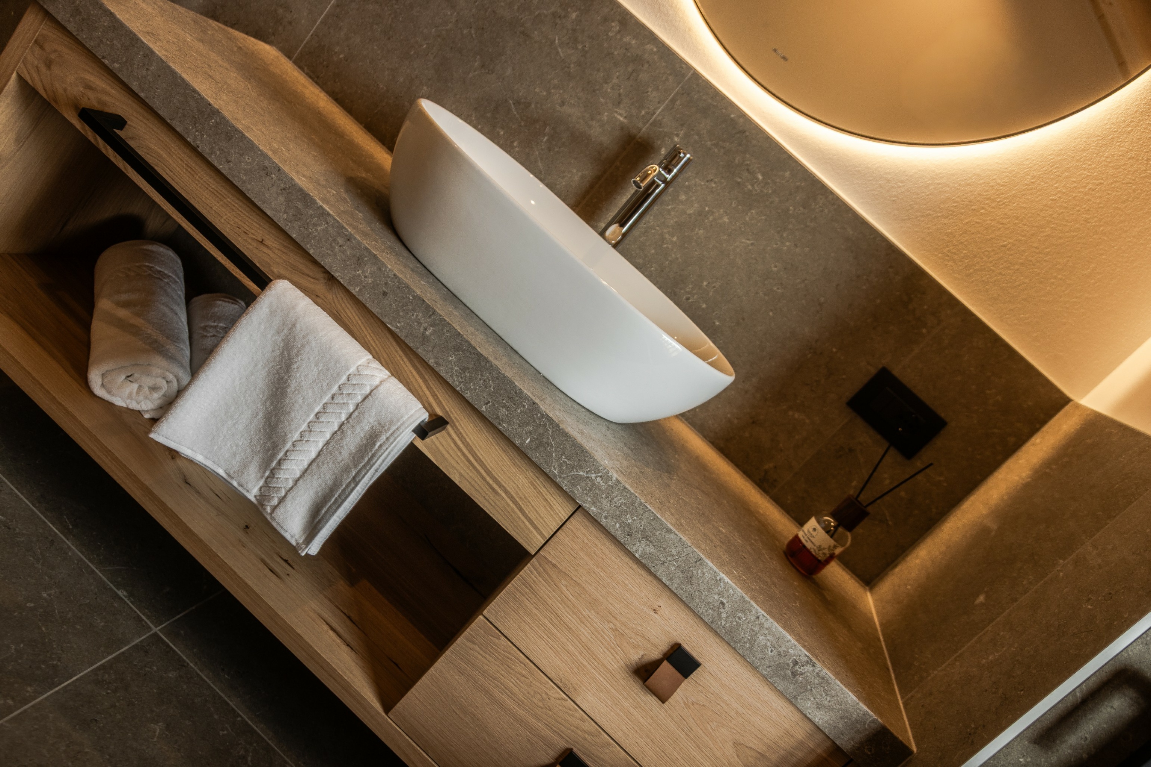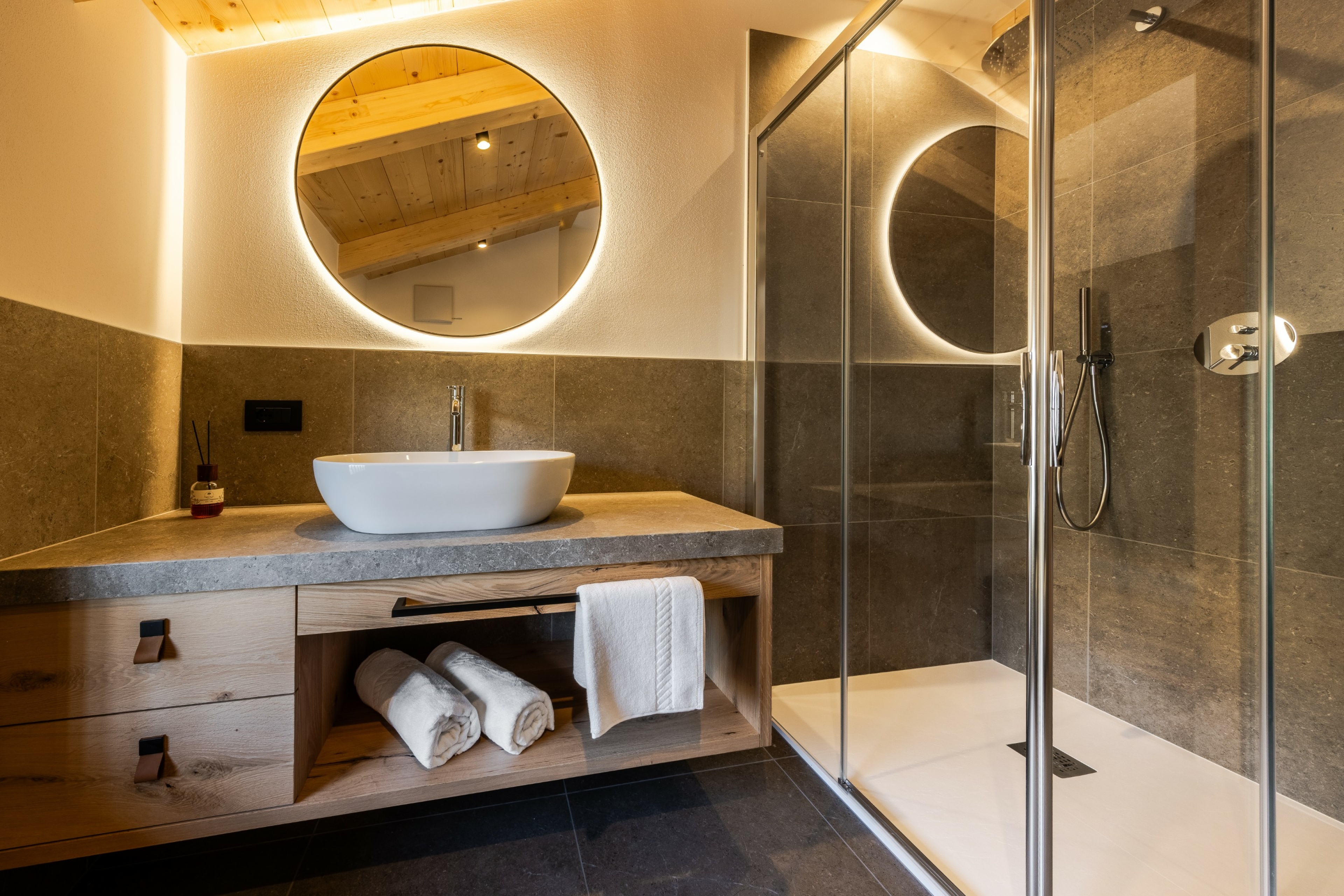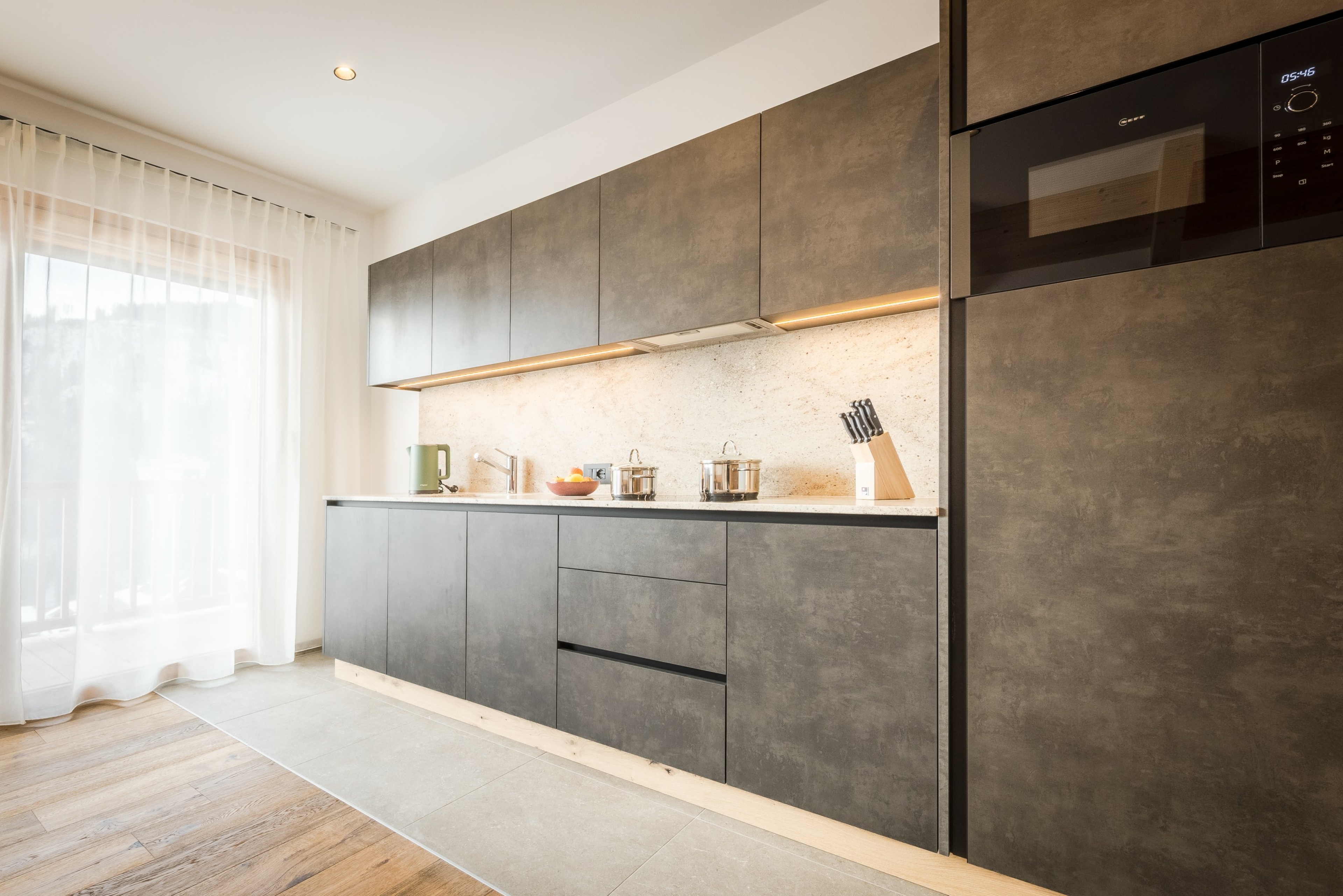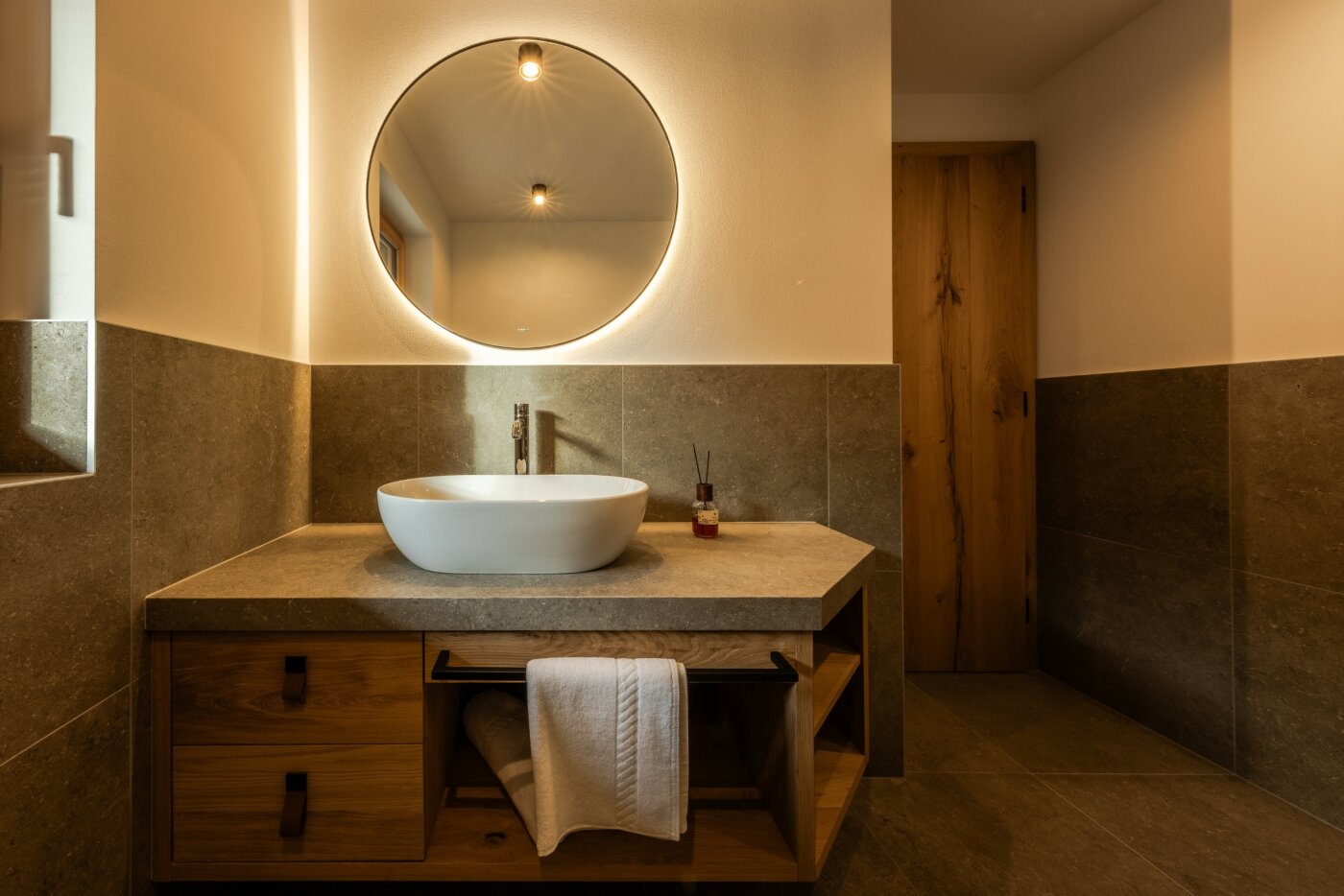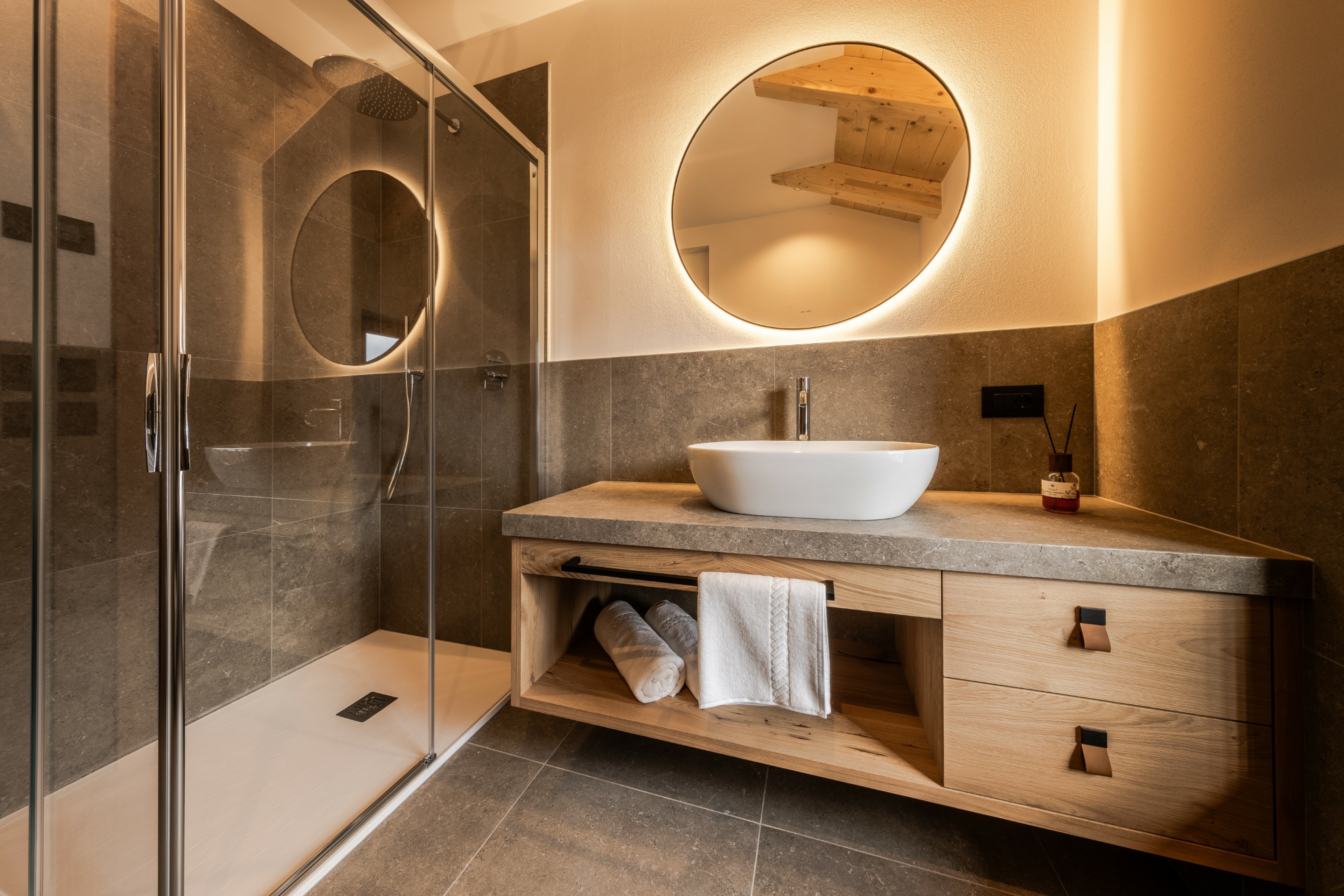 L’immobile è arredato con pregiato legno locale e si distingue per linee eleganti e armoniose, pensate per garantire il massimo comfort durante il vostro soggiorno nelle Dolomiti.