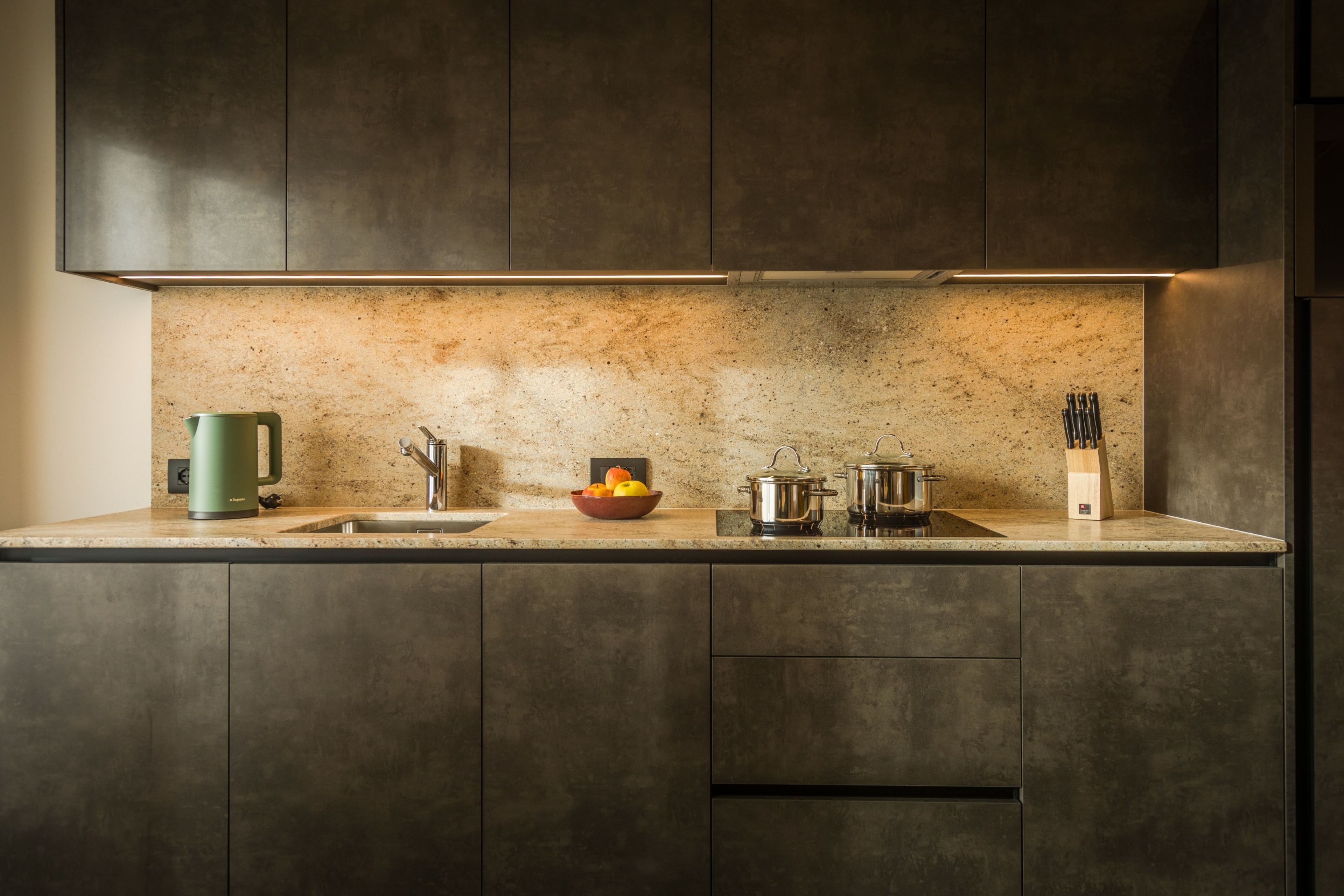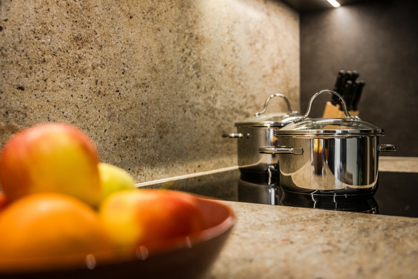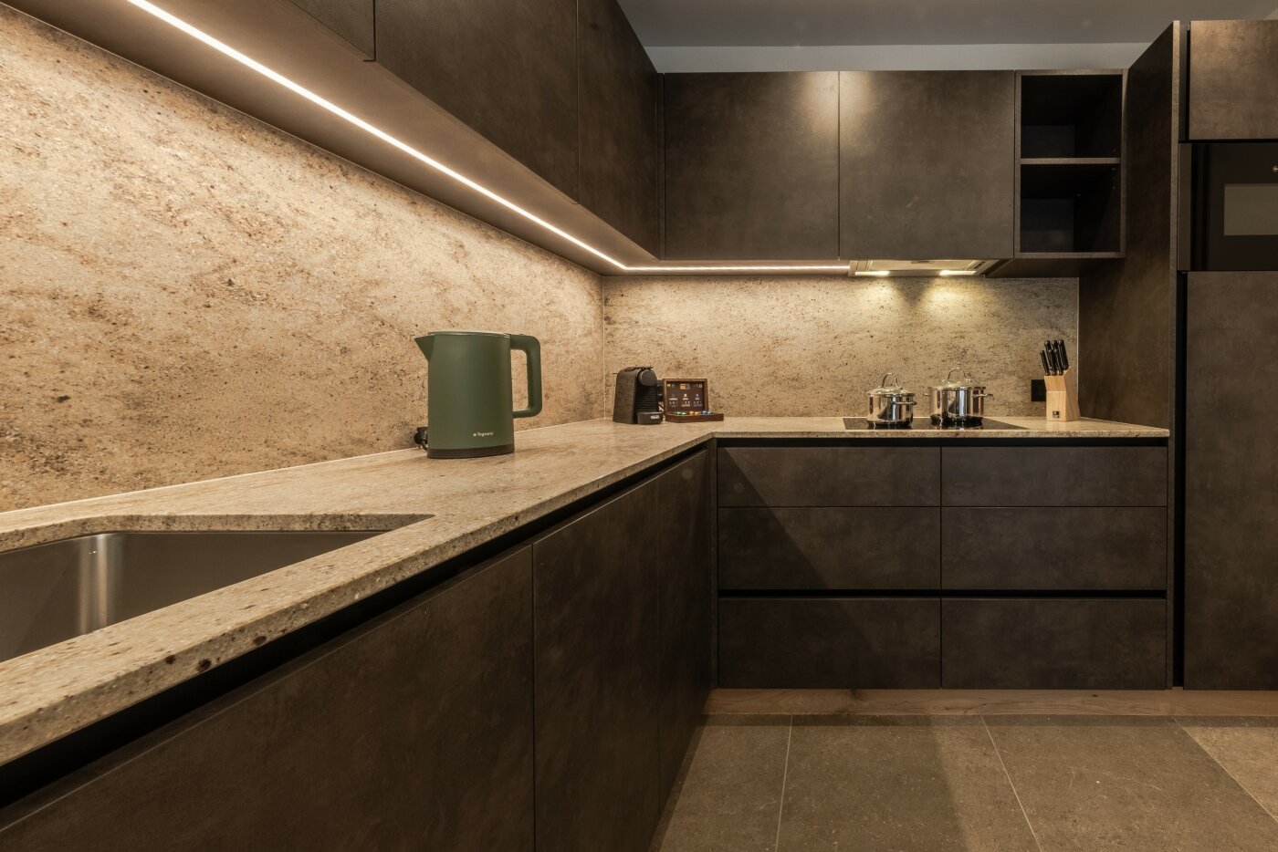 Il moderno cucinino separato è completamente attrezzato per le vostre vacanze in Alta Badia a e include lavastoviglie, piano cottura, macchina del caffè, forno a microonde, utensili da cucina, stoviglie e posate.