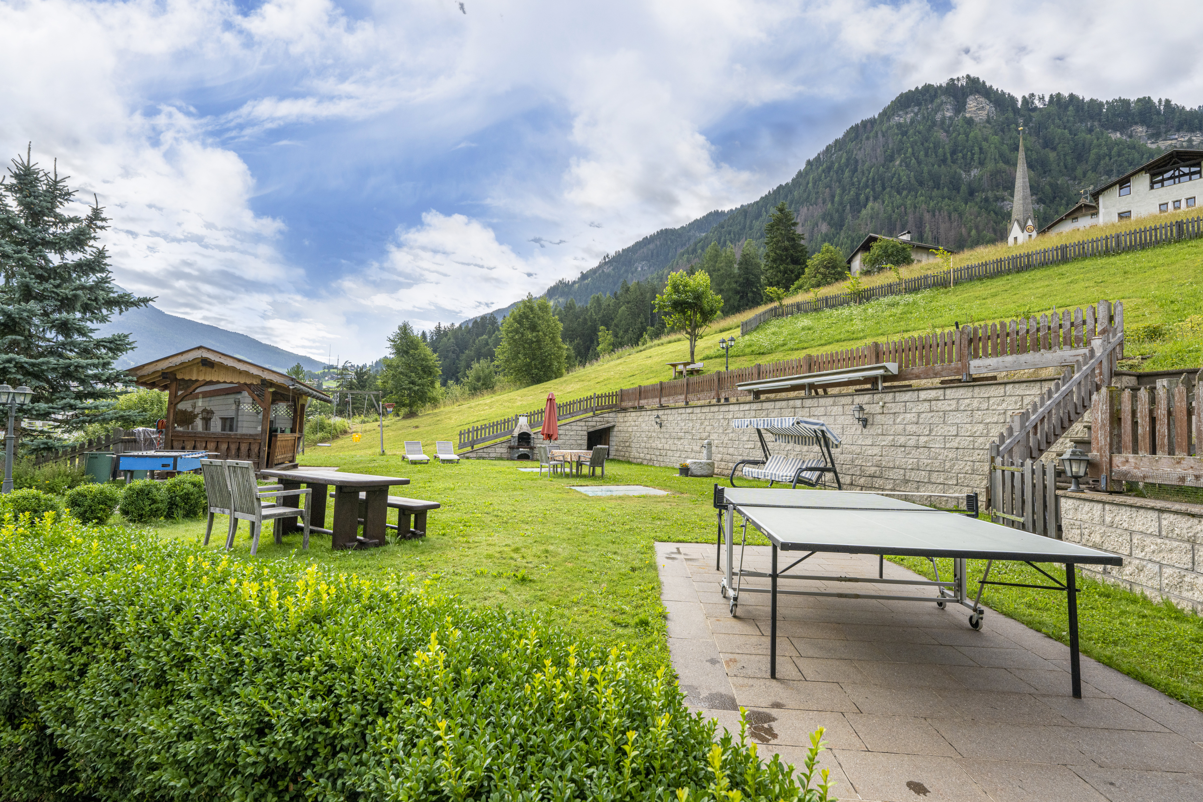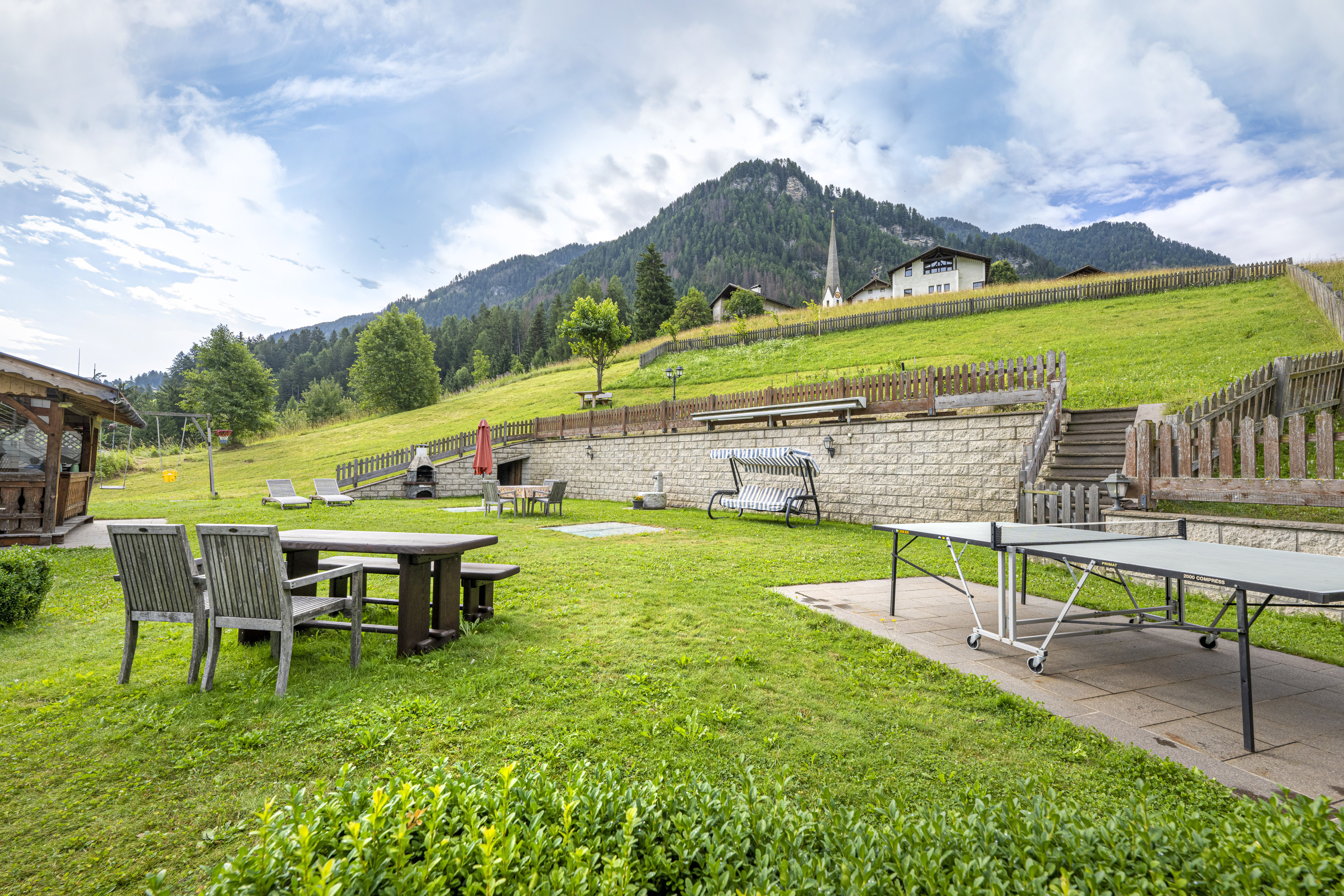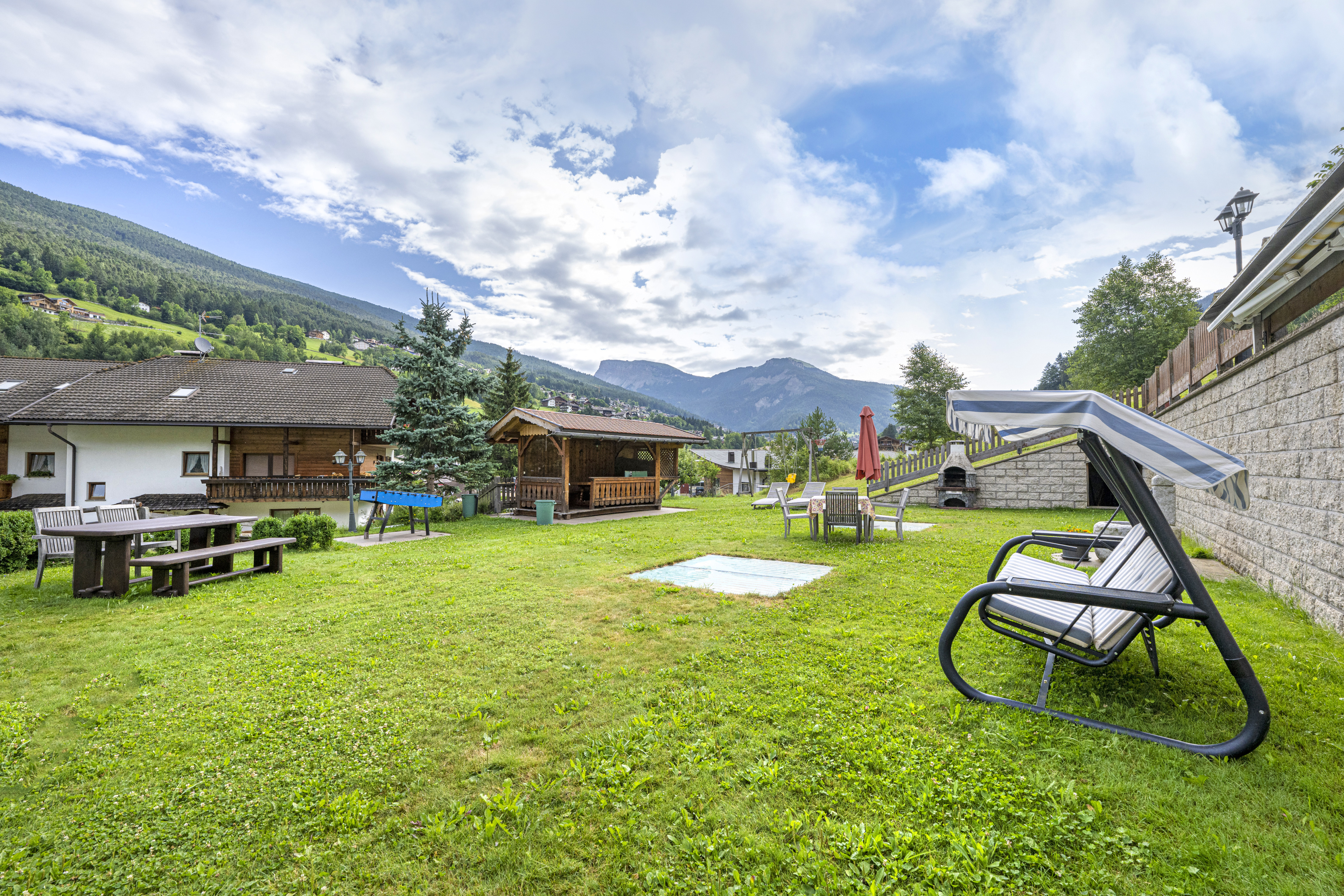 Il fiore all’occhiello di Casa Mirandula è un meraviglioso giardino in comune per entrambi gli appartamenti, arredato in modo da potersi rilassare sotto il sole delle Dolomiti e godersi la vista sul Seceda e sul Monte Pic. Il grazioso giardino è munito oltretutto anche di una casetta in legno per le giornate più torride, barbecue e per la gioia dei nostri piccoli ospiti anche di un’altalena, un tavolo da ping pong ed un calcetto.