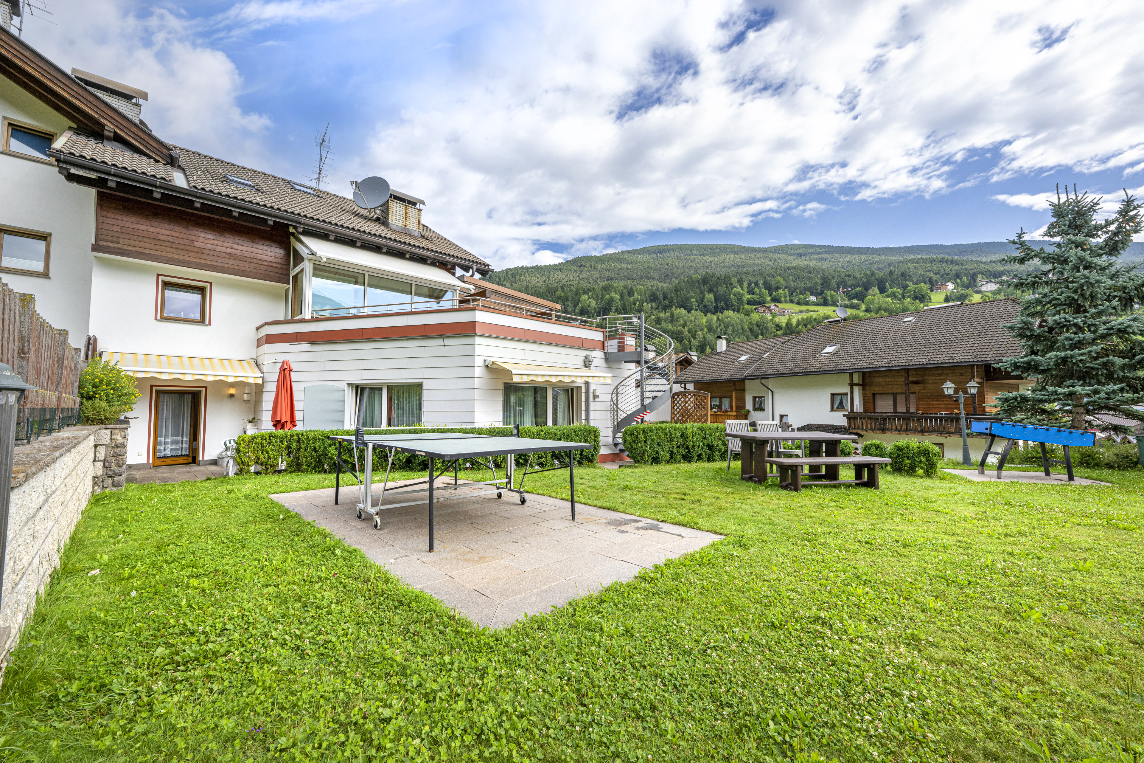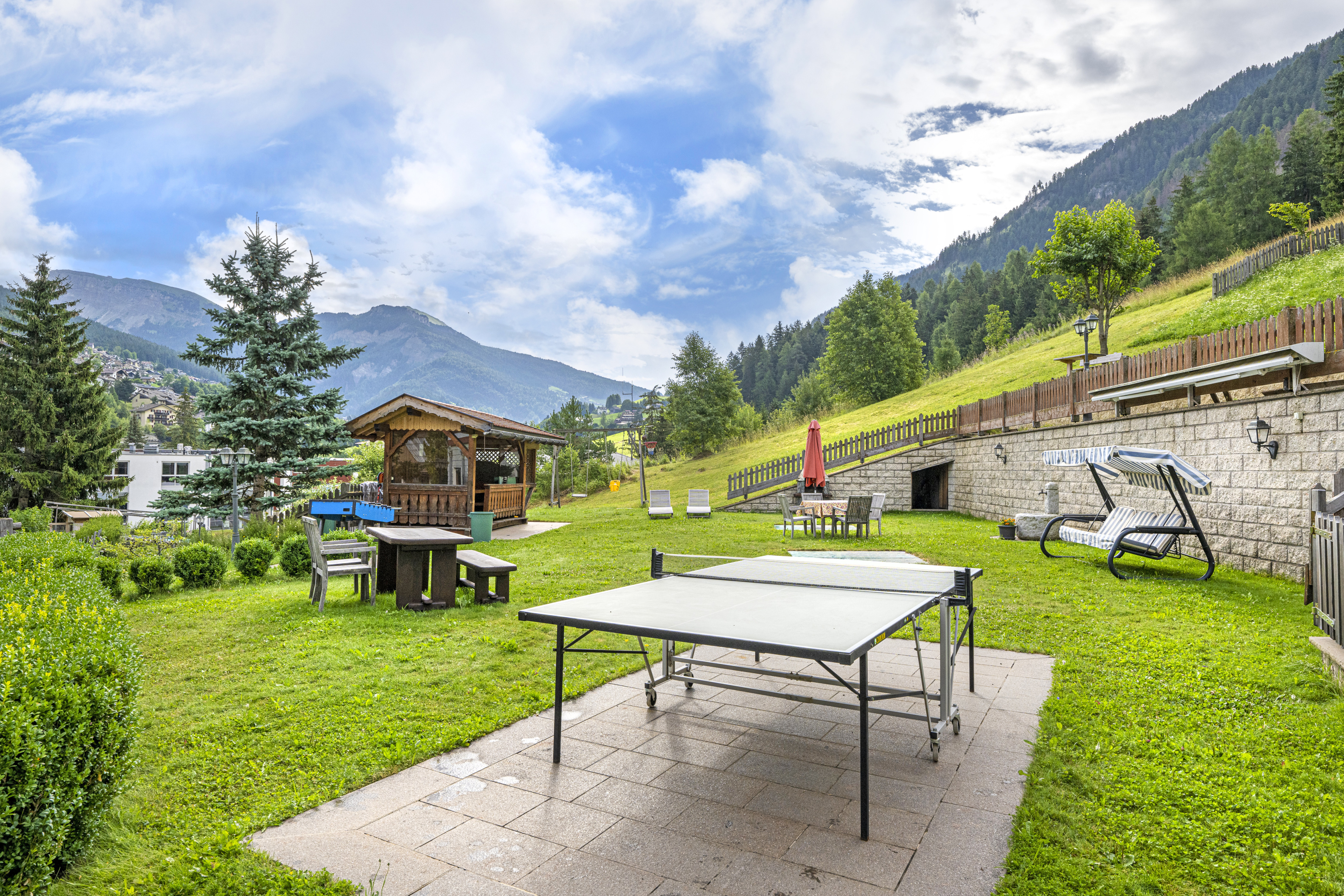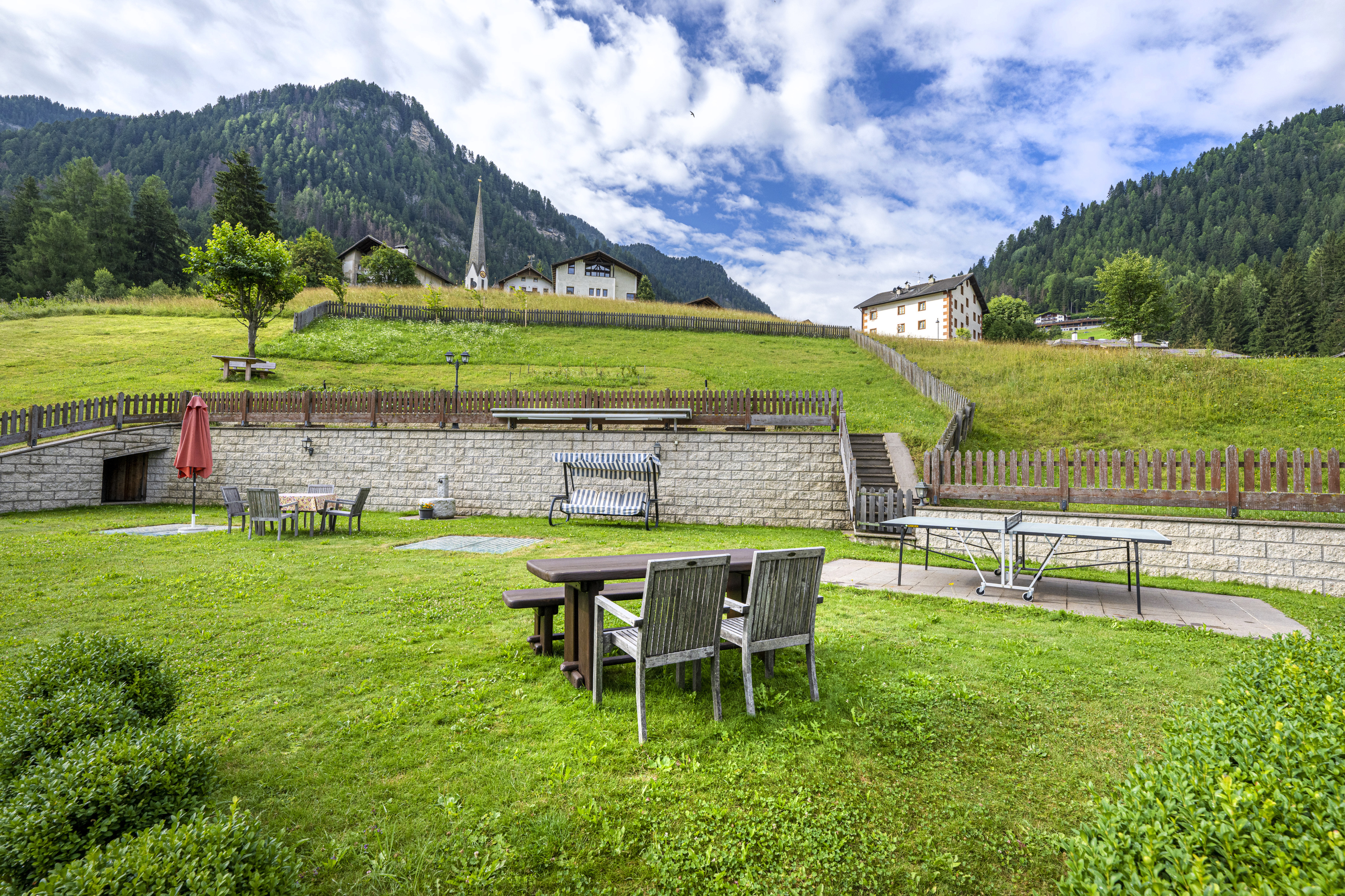 Il fiore all’occhiello di Casa Mirandula è un meraviglioso giardino in comune per entrambi gli appartamenti, arredato in modo da potersi rilassare sotto il sole delle Dolomiti e godersi la vista sul Seceda e sul Monte Pic. Il grazioso giardino è munito oltretutto anche di una casetta in legno per le giornate più torride, barbecue e per la gioia dei nostri piccoli ospiti anche di un’altalena, un tavolo da ping pong ed un calcetto.