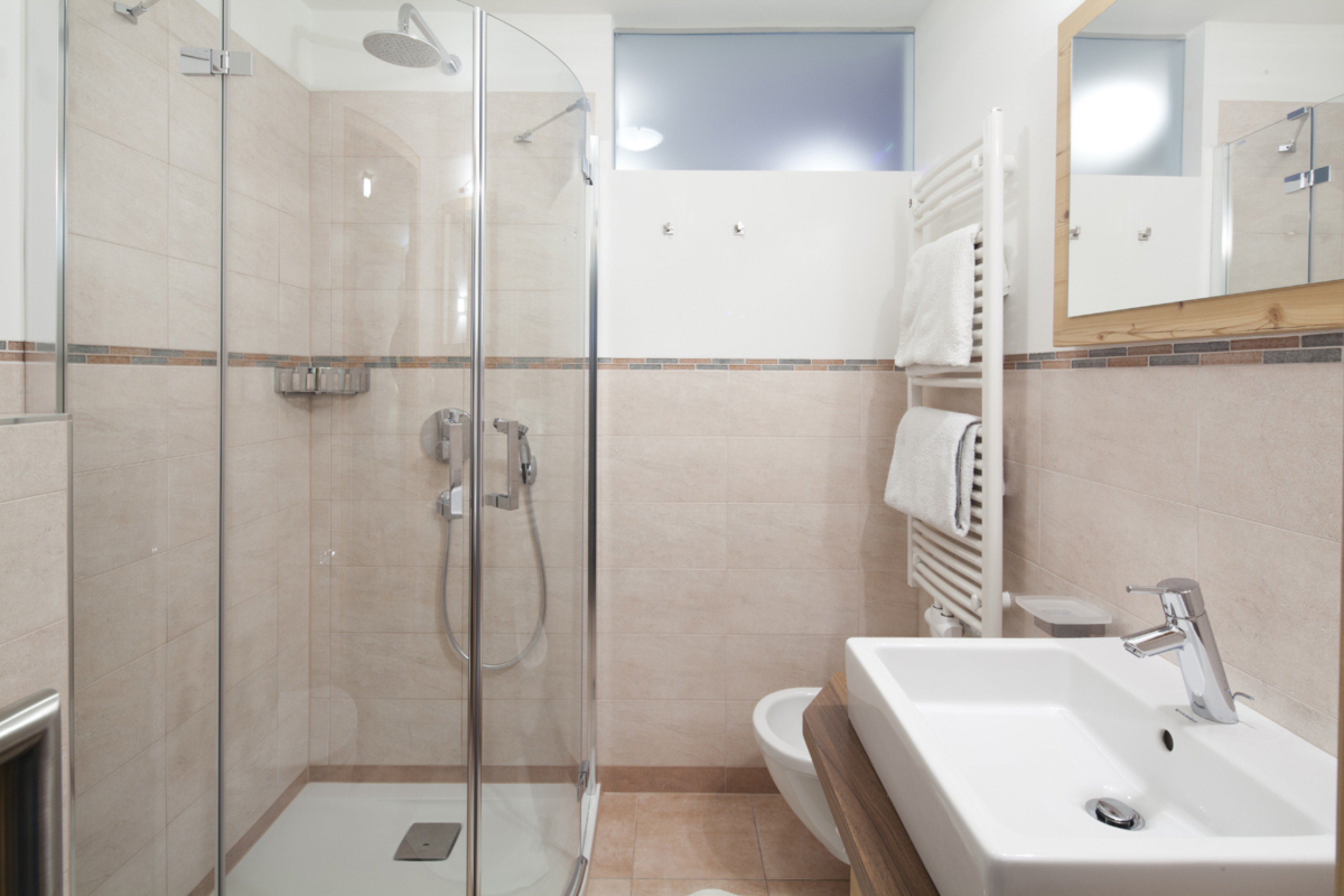 Gli interni vantano linee moderne e materiali di pregio, disegnati per massimizzare il comfort durante le Vostre vacanze in Val Gardena.