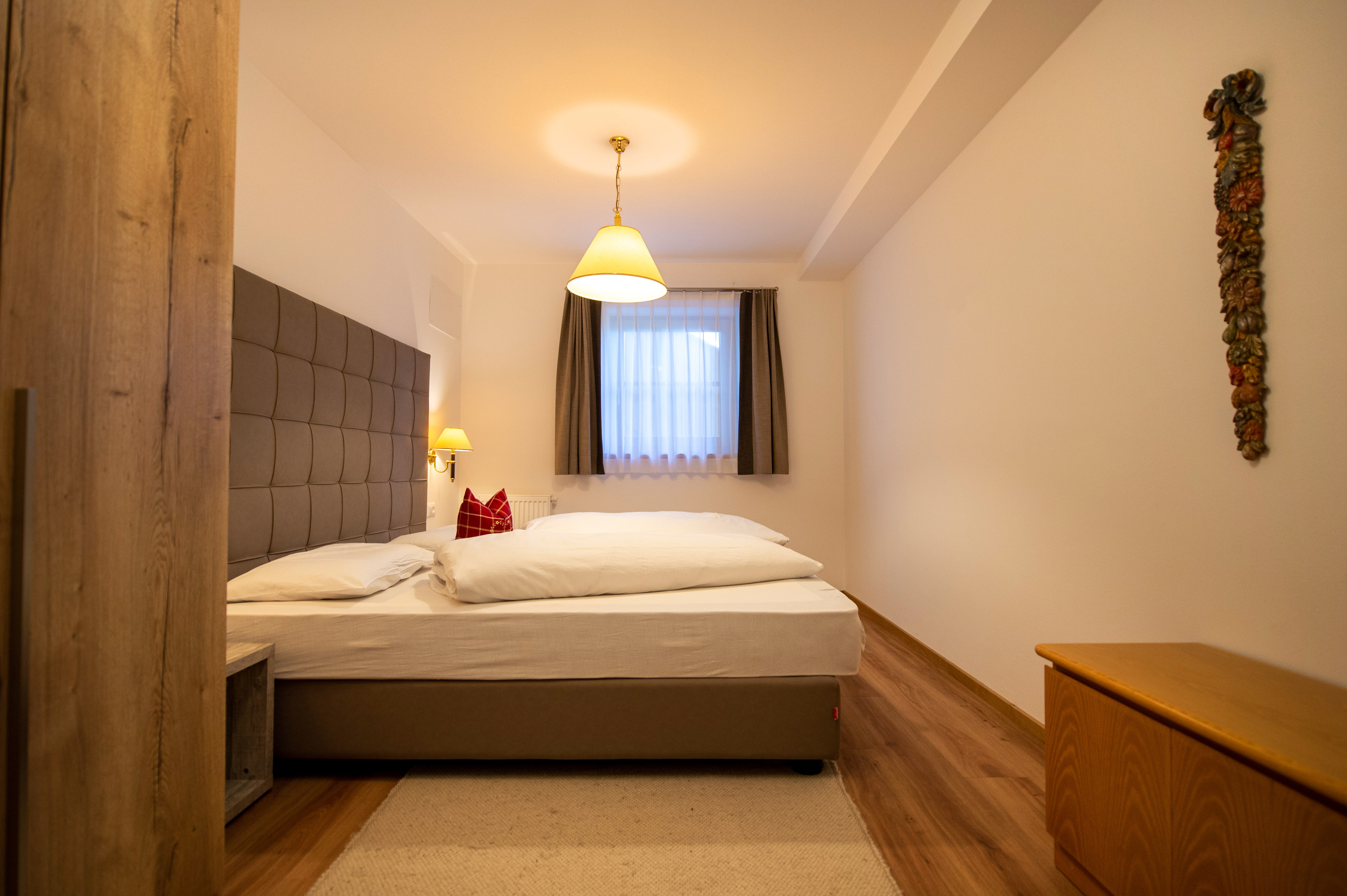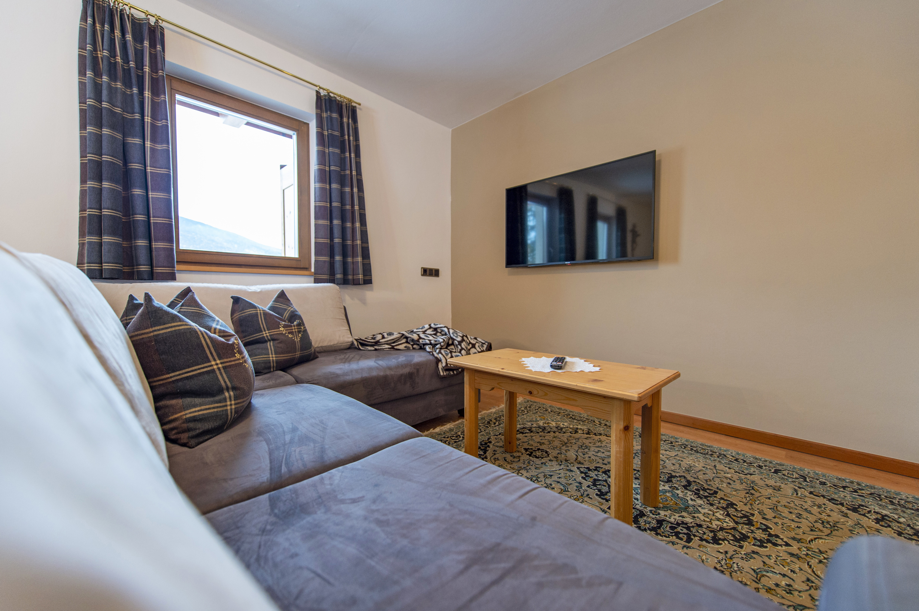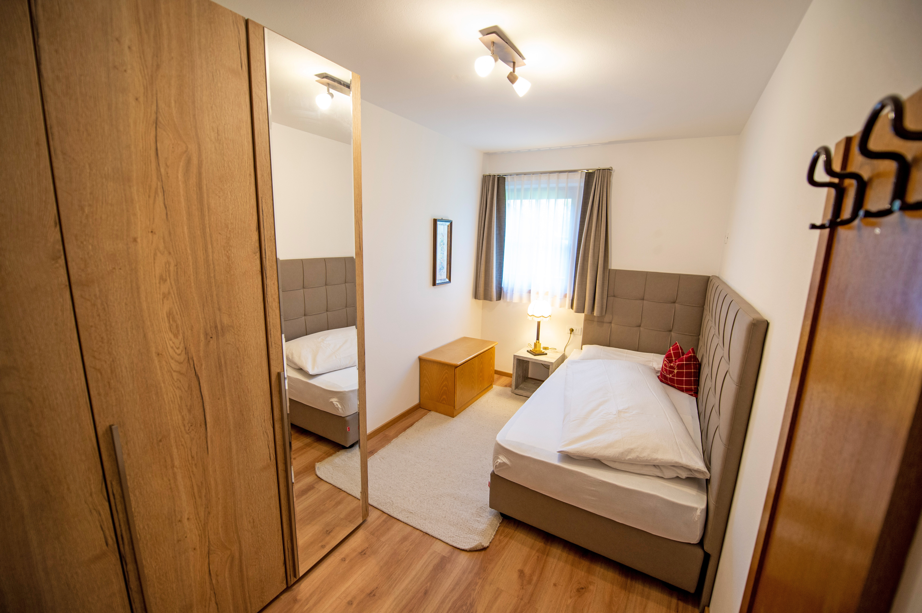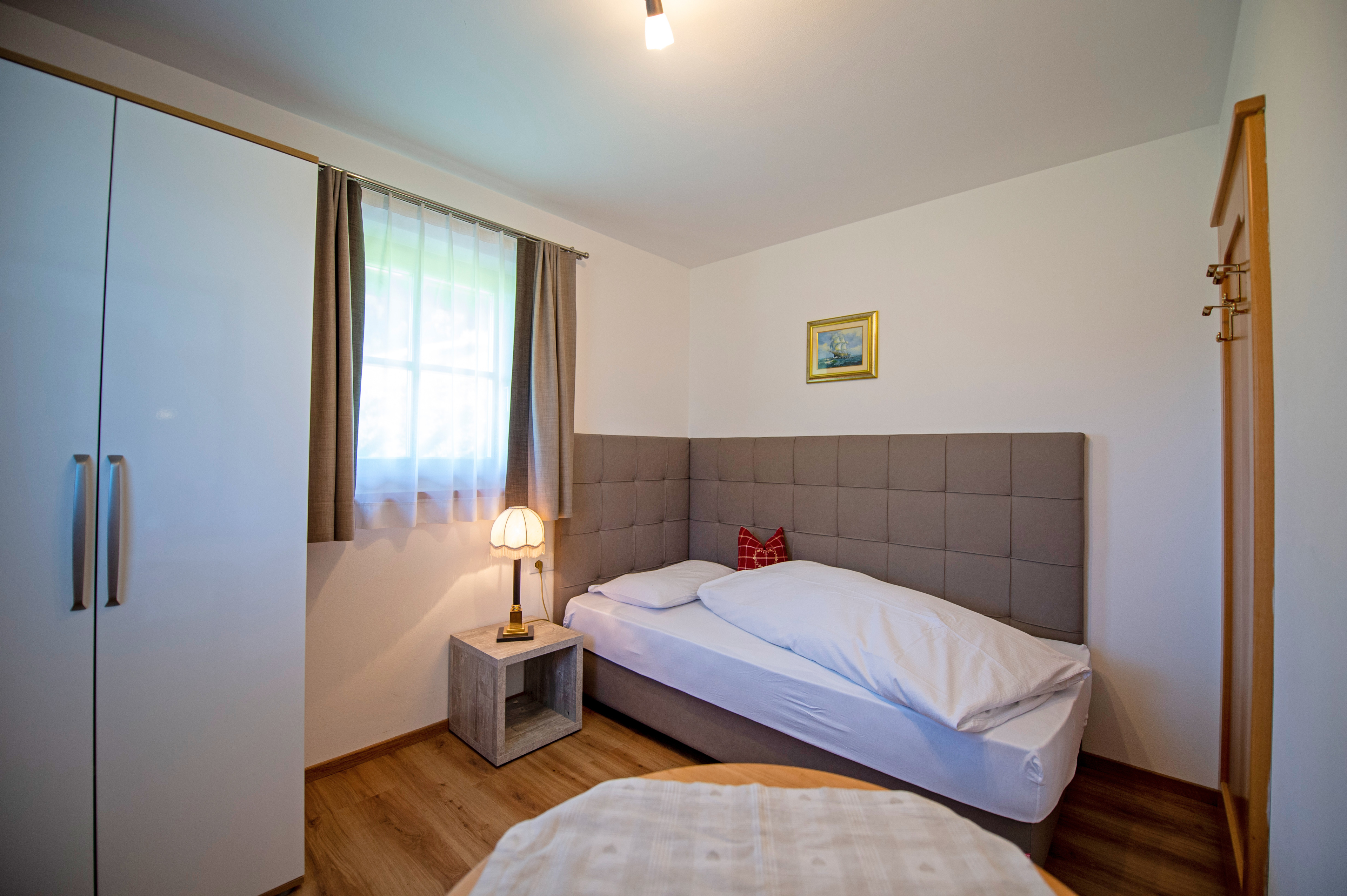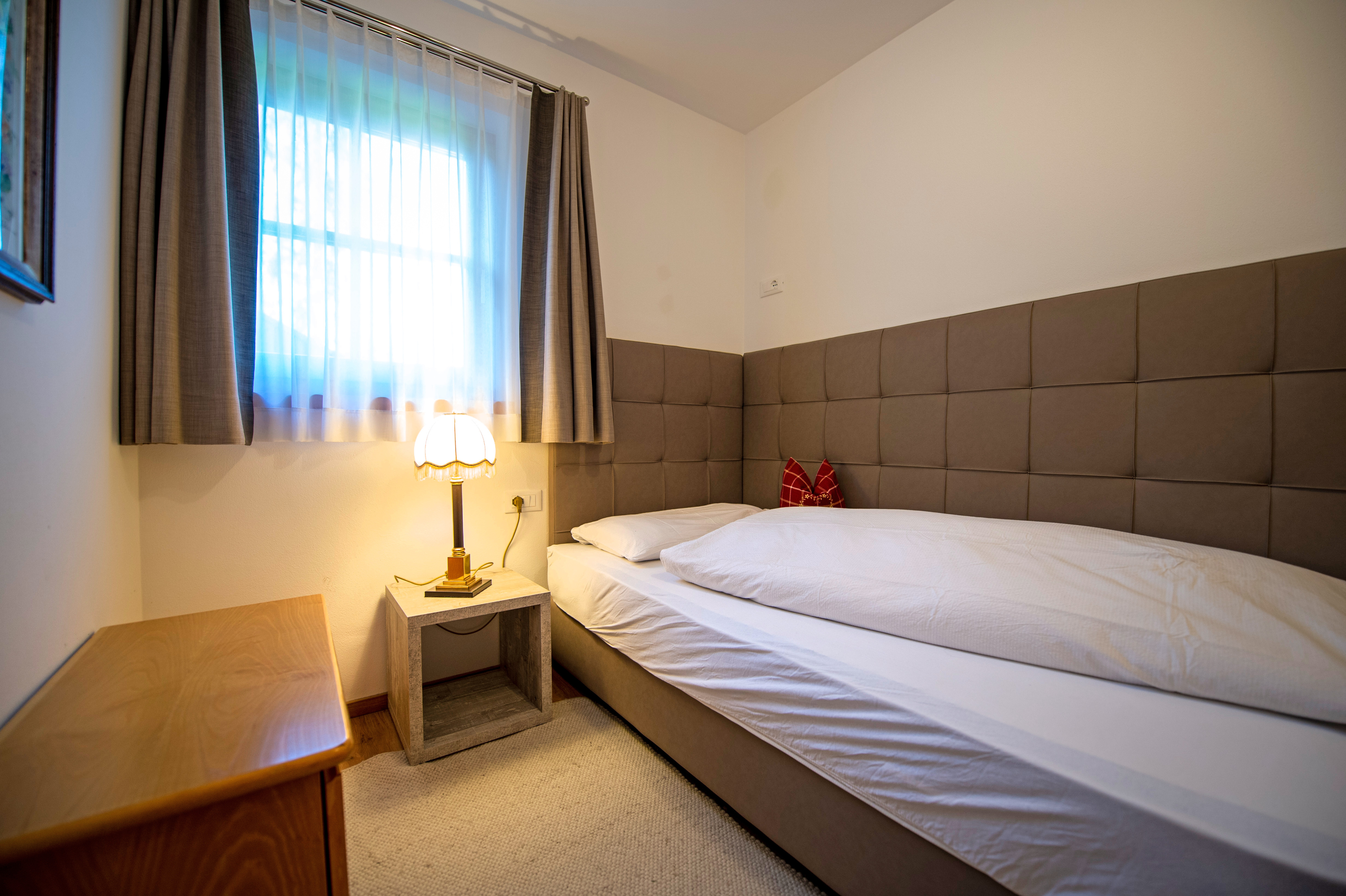 Questo grazioso appartamento è composto da 1 camera da letto matrimoniale, 1 bagno con doccia, un soggiorno con caratteristica stufa tirolese e divano letto singolo ed una cucina separata con tavolo da pranzo. Per la quarta persona verà aggiunta una brandina singola.