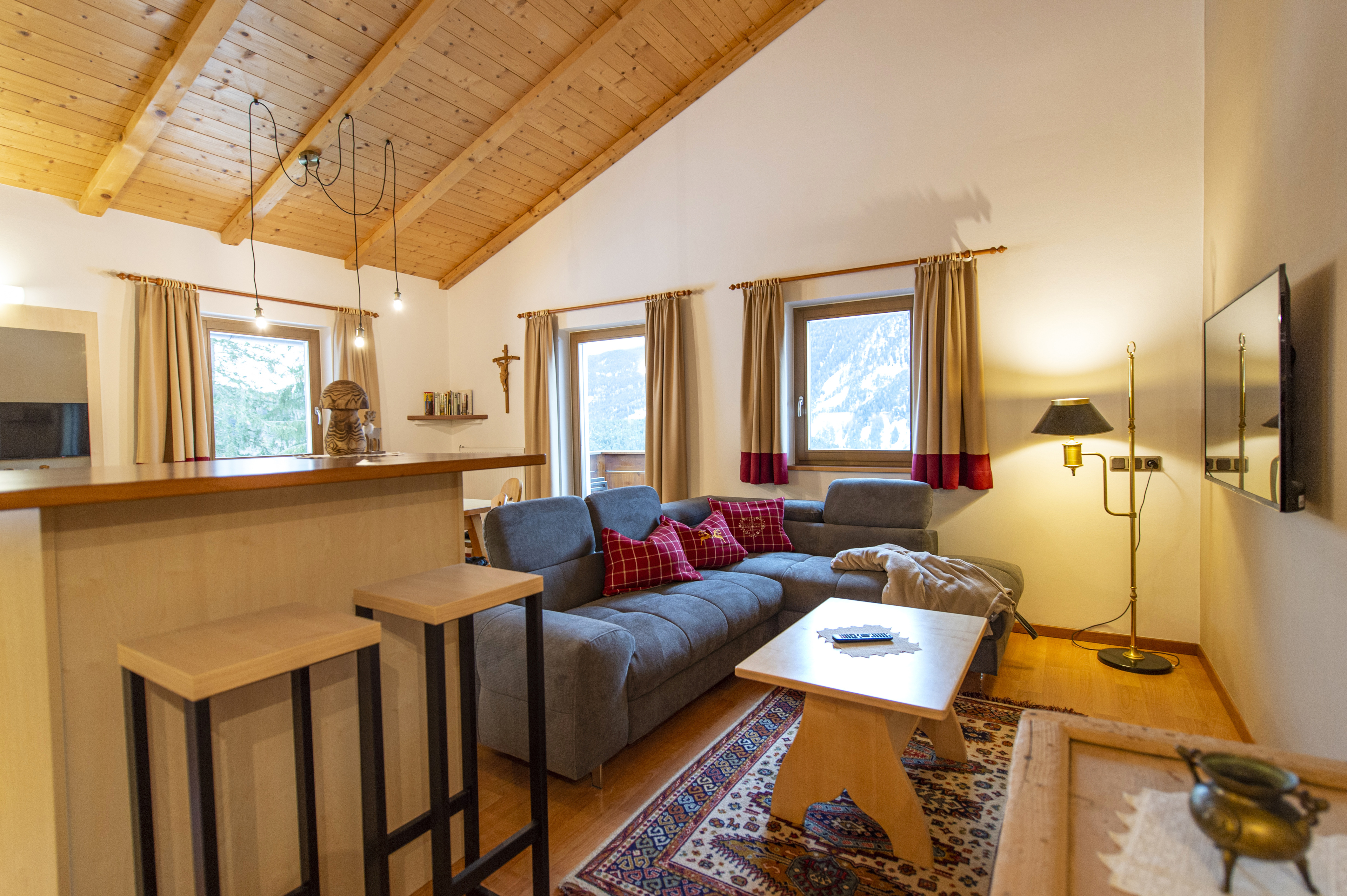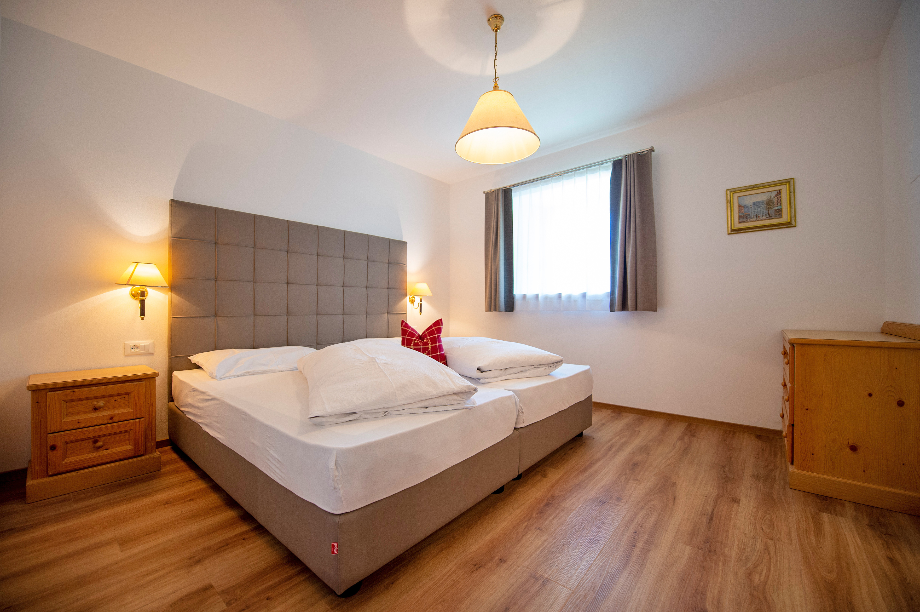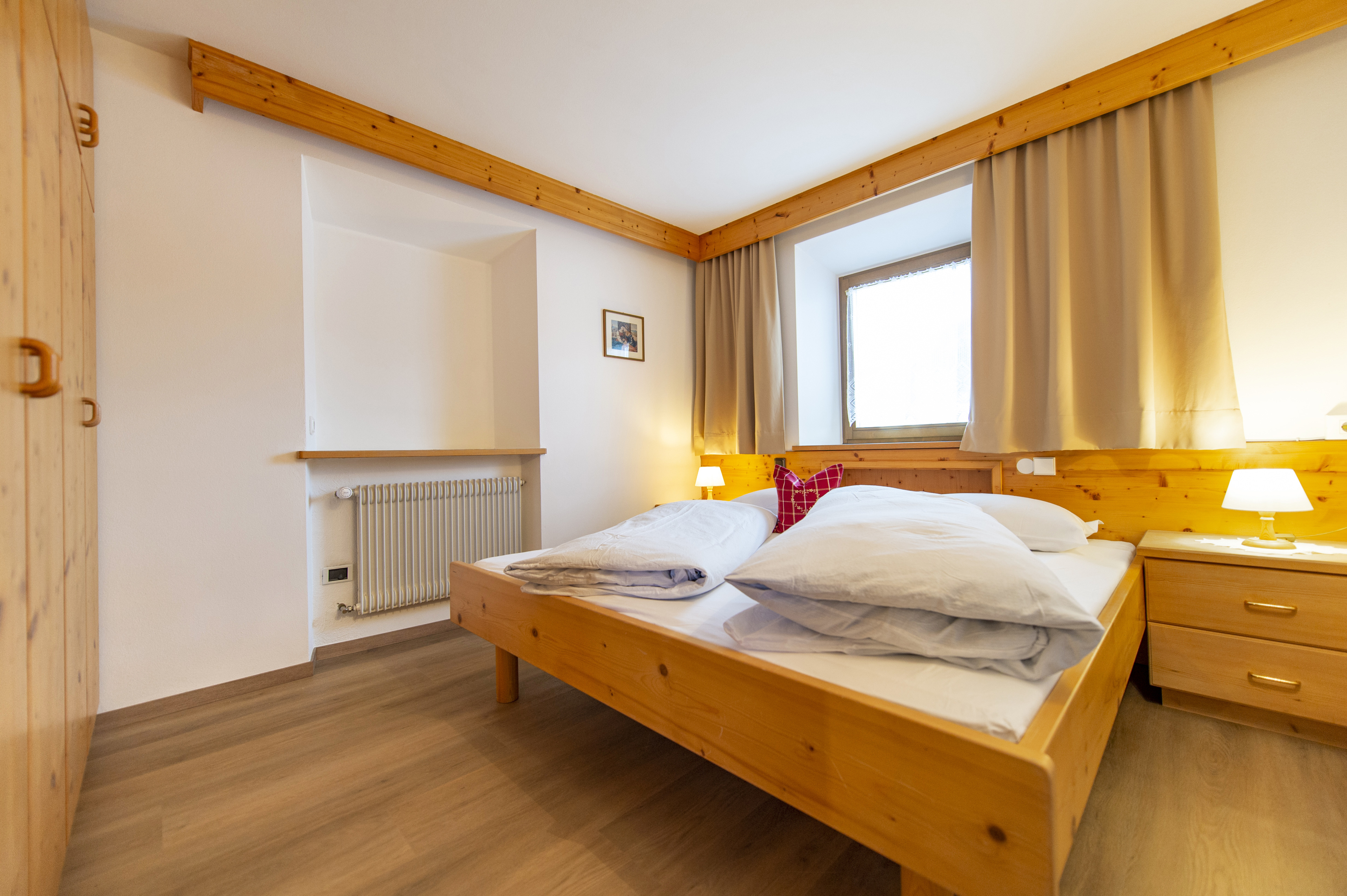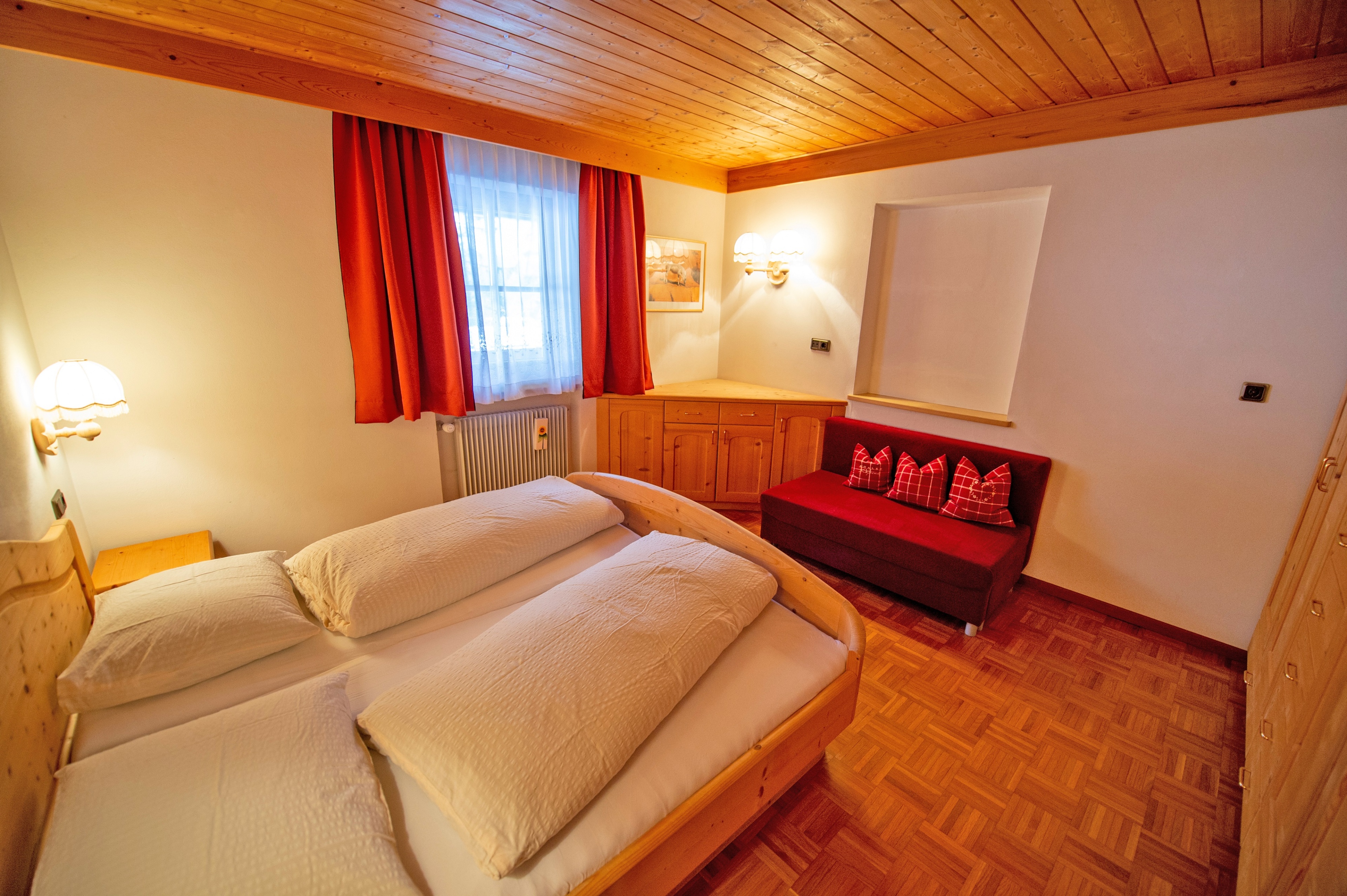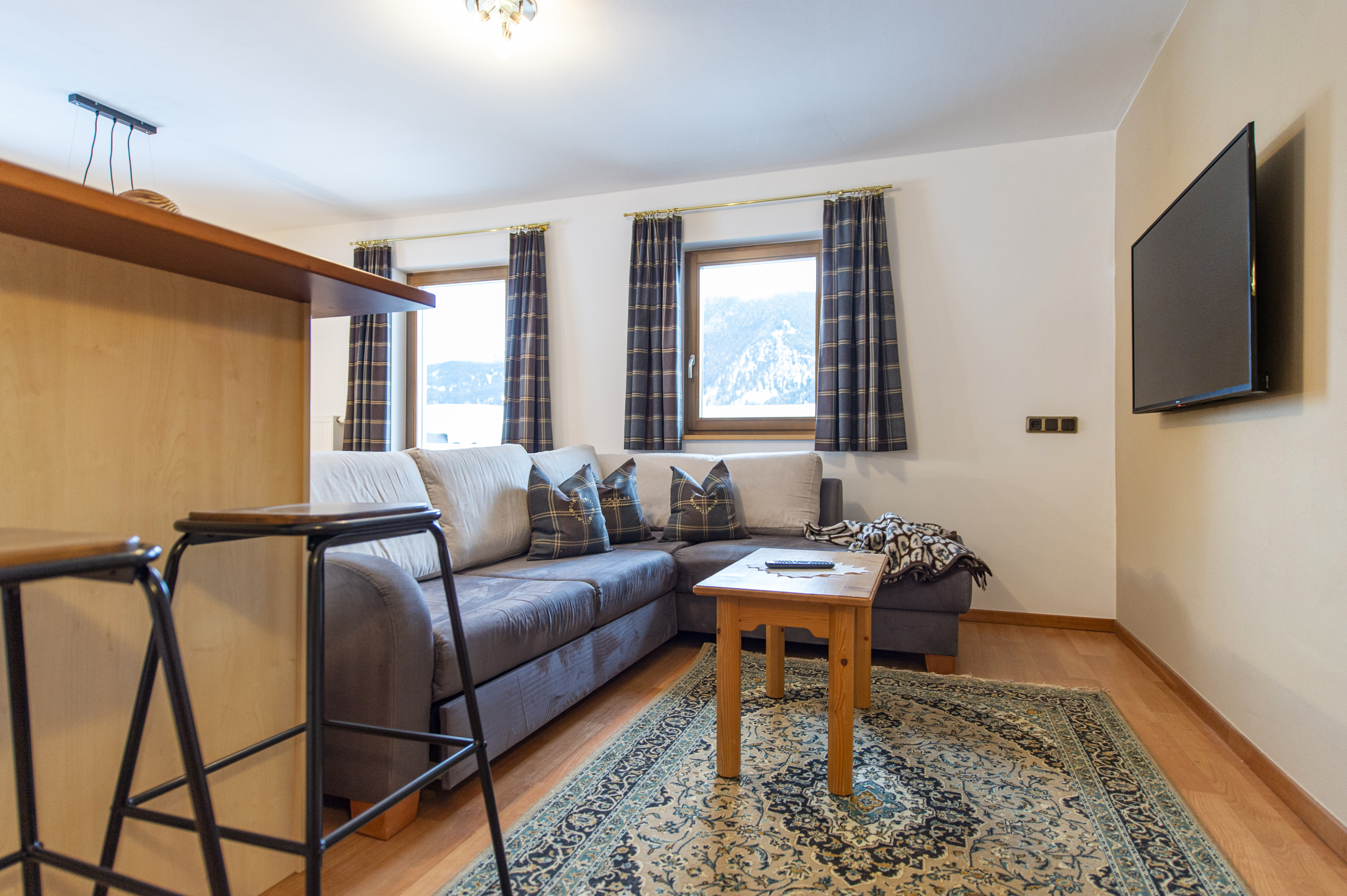 Questo grazioso appartamento è composto da 1 camera da letto matrimoniale, 1 bagno con doccia, un soggiorno con caratteristica stufa tirolese e divano letto singolo ed una cucina separata con tavolo da pranzo. Per la quarta persona verà aggiunta una brandina singola.