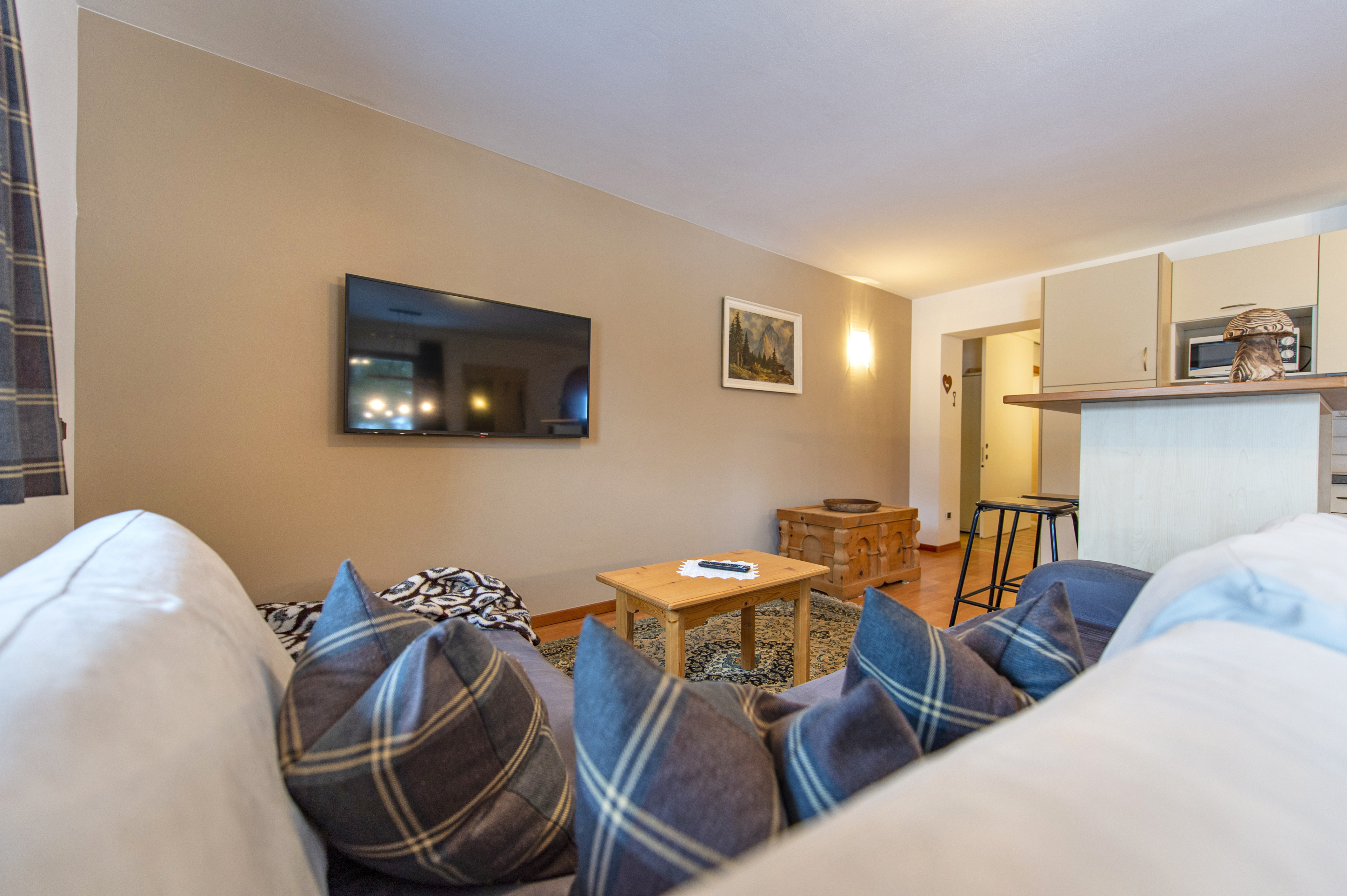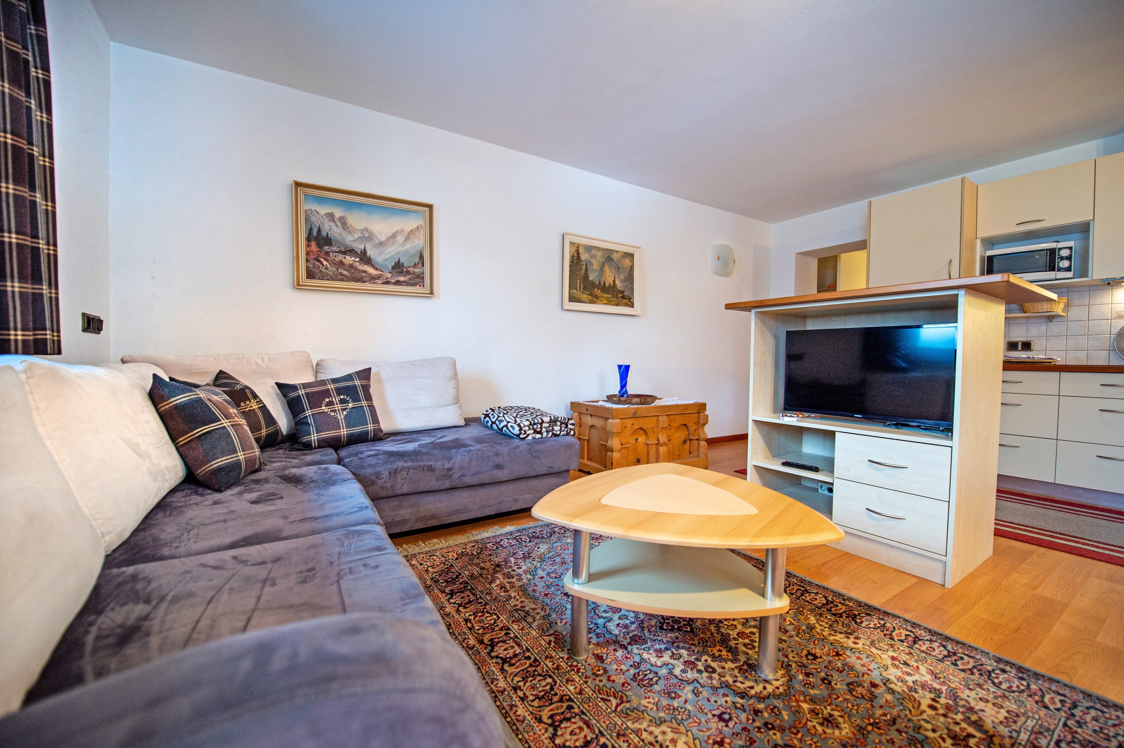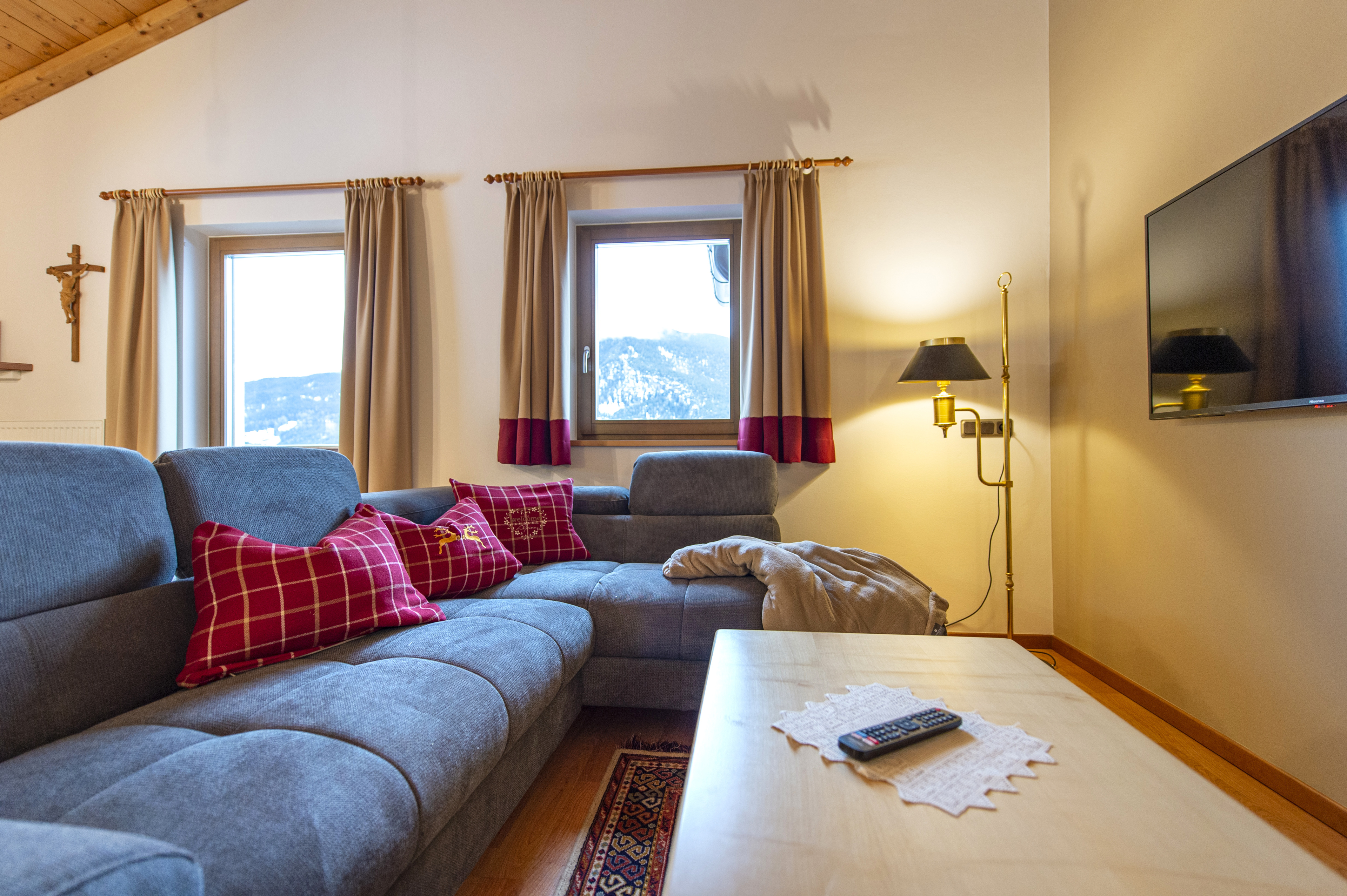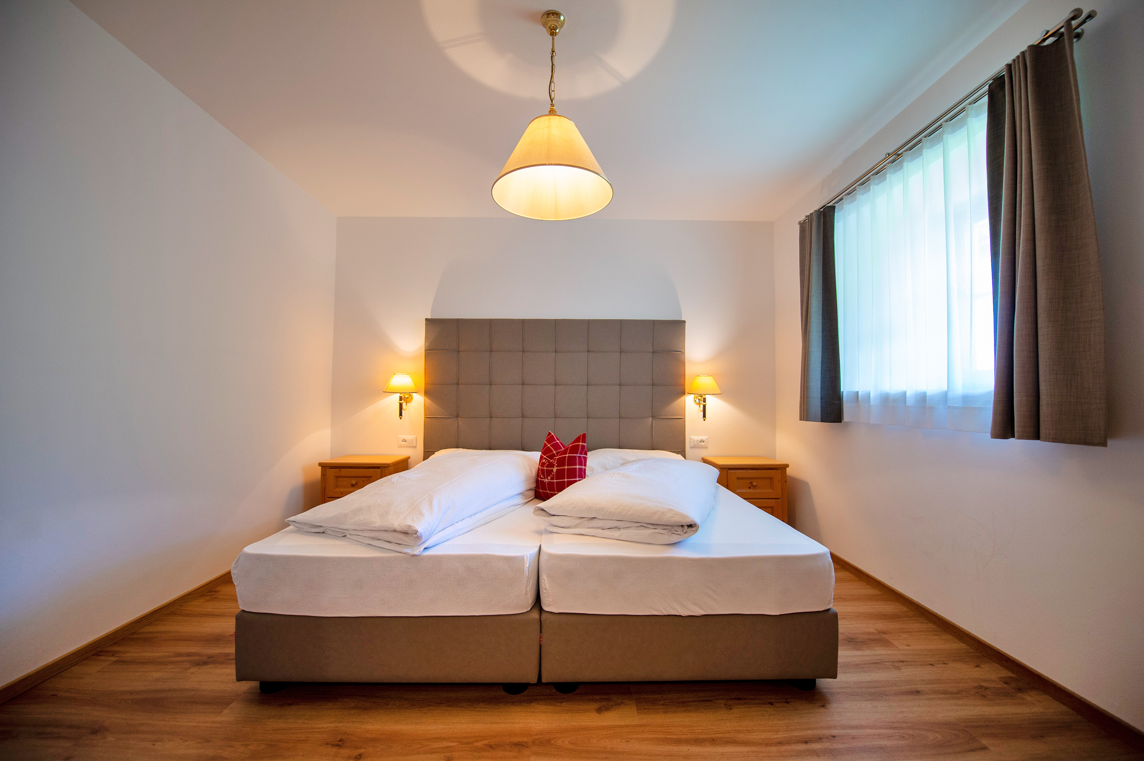 Questo grazioso appartamento è composto da 1 camera da letto matrimoniale, 1 bagno con doccia, un soggiorno con caratteristica stufa tirolese e divano letto singolo ed una cucina separata con tavolo da pranzo. Per la quarta persona verà aggiunta una brandina singola.