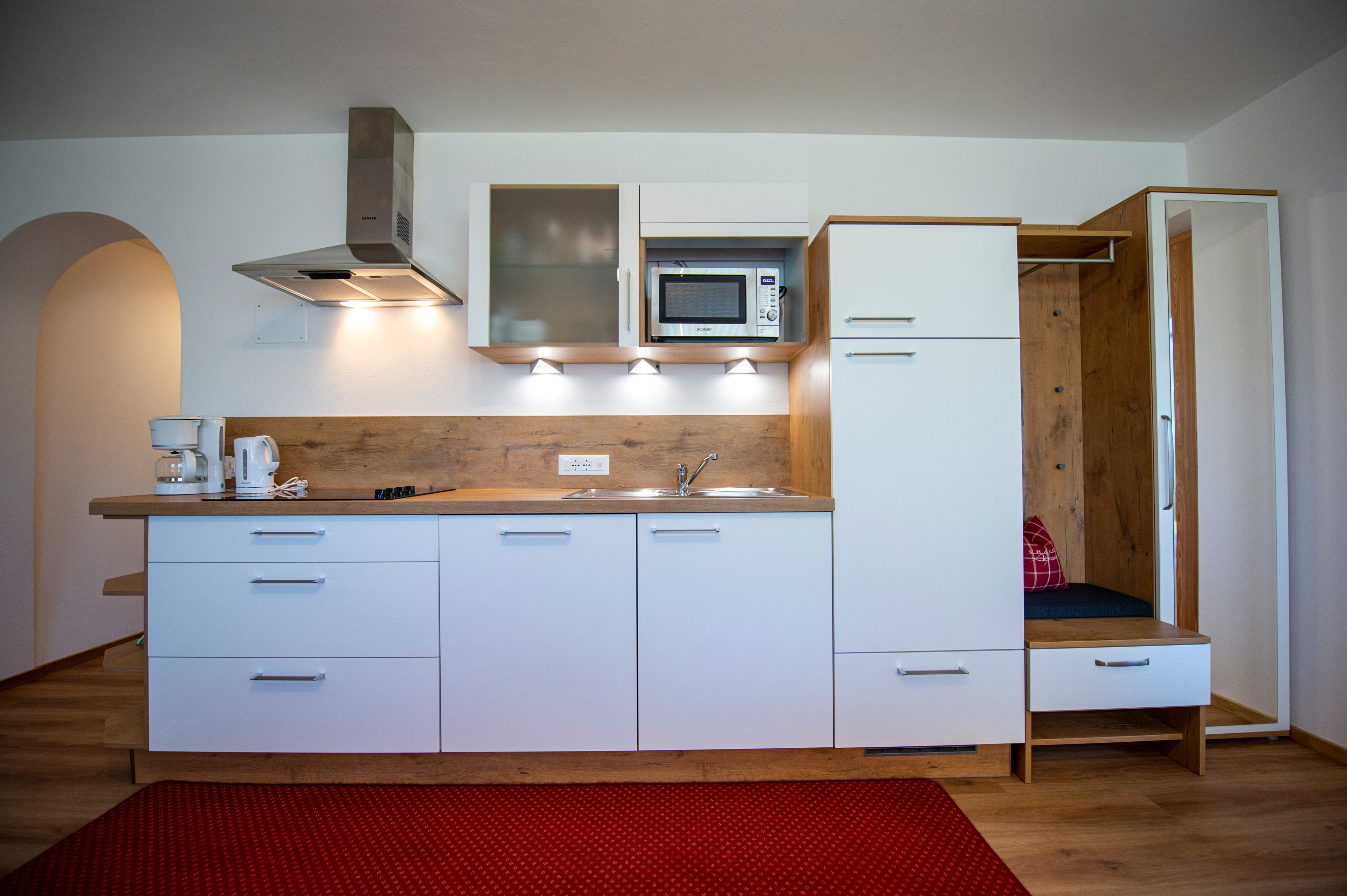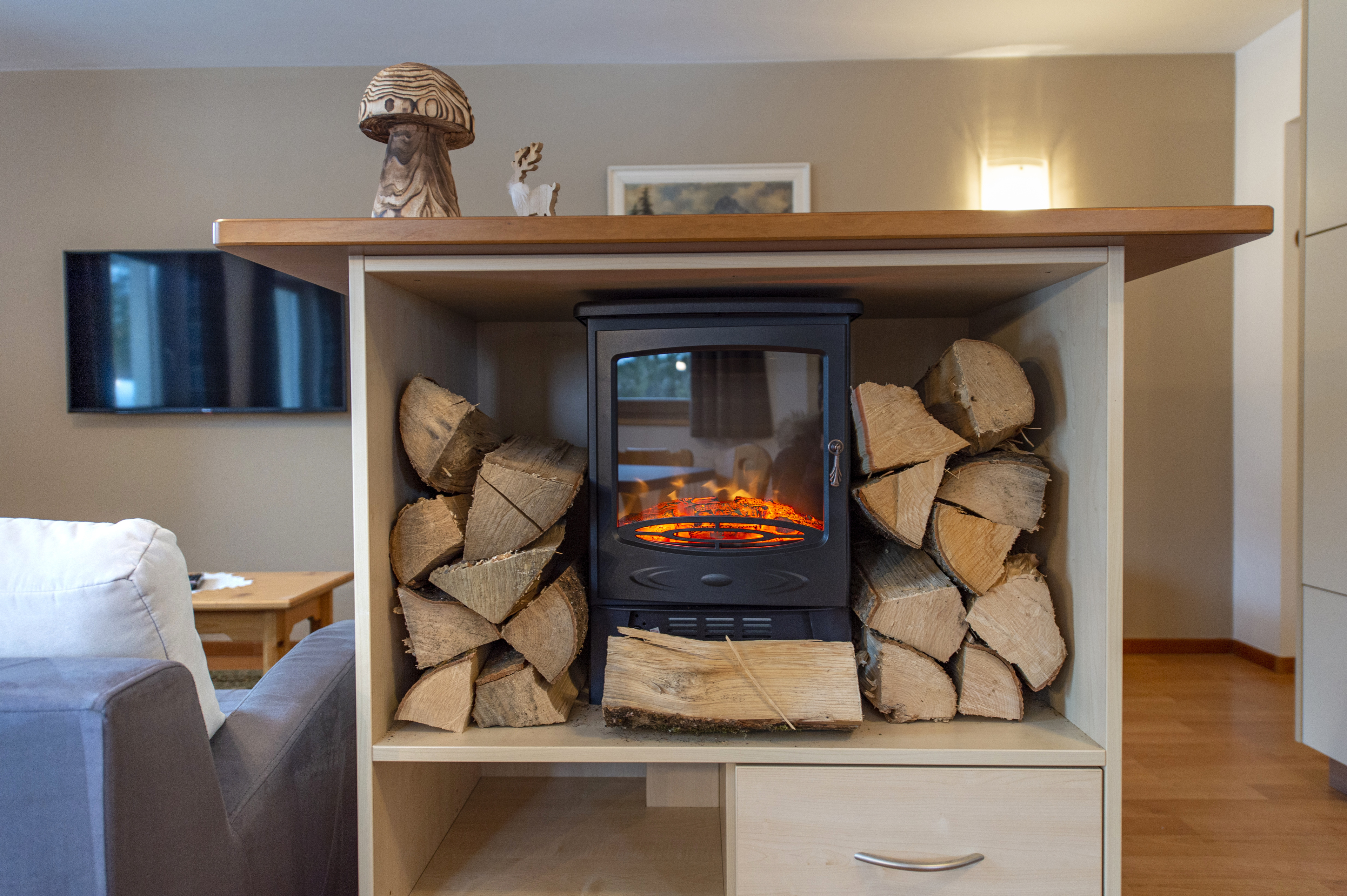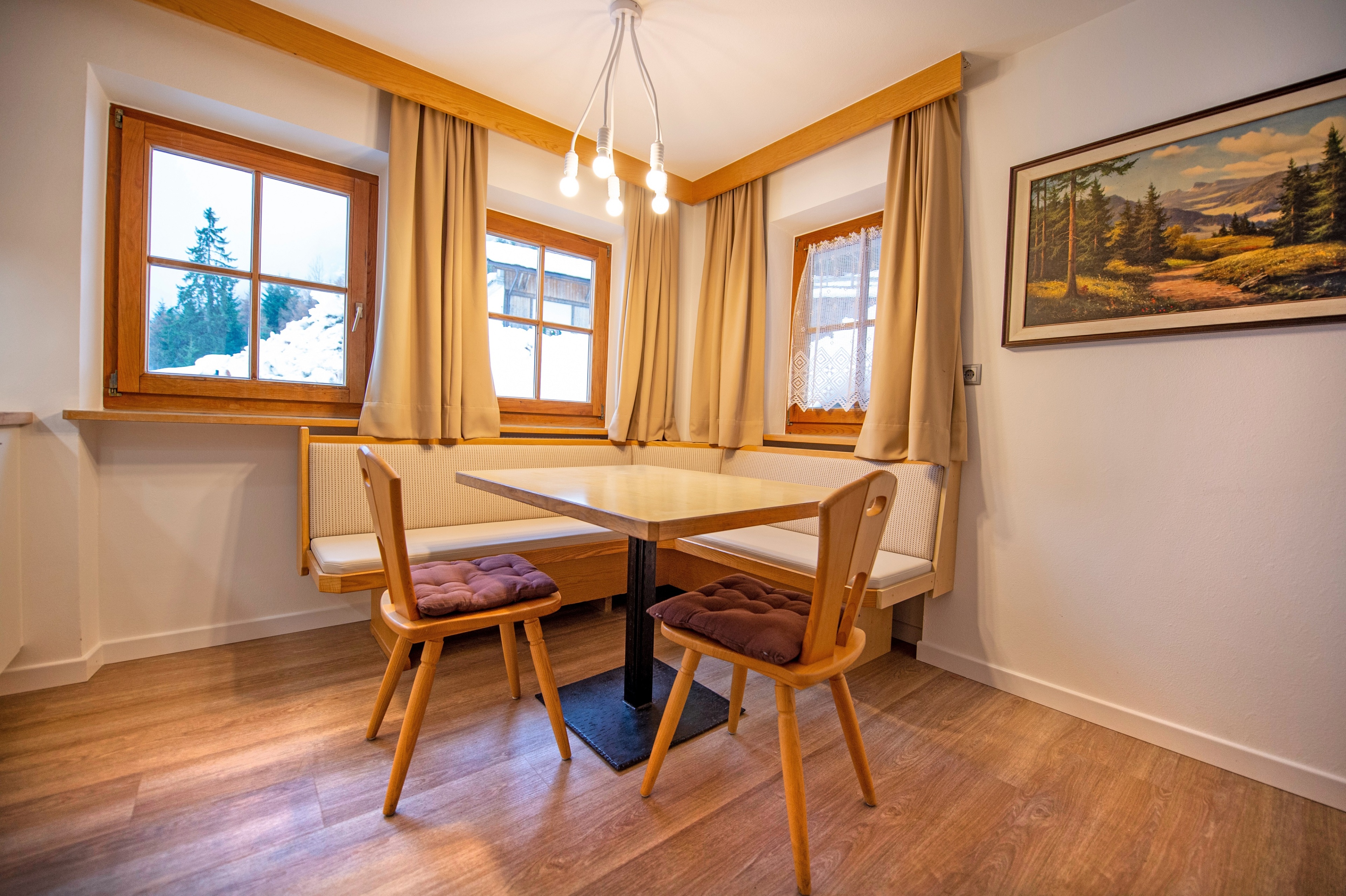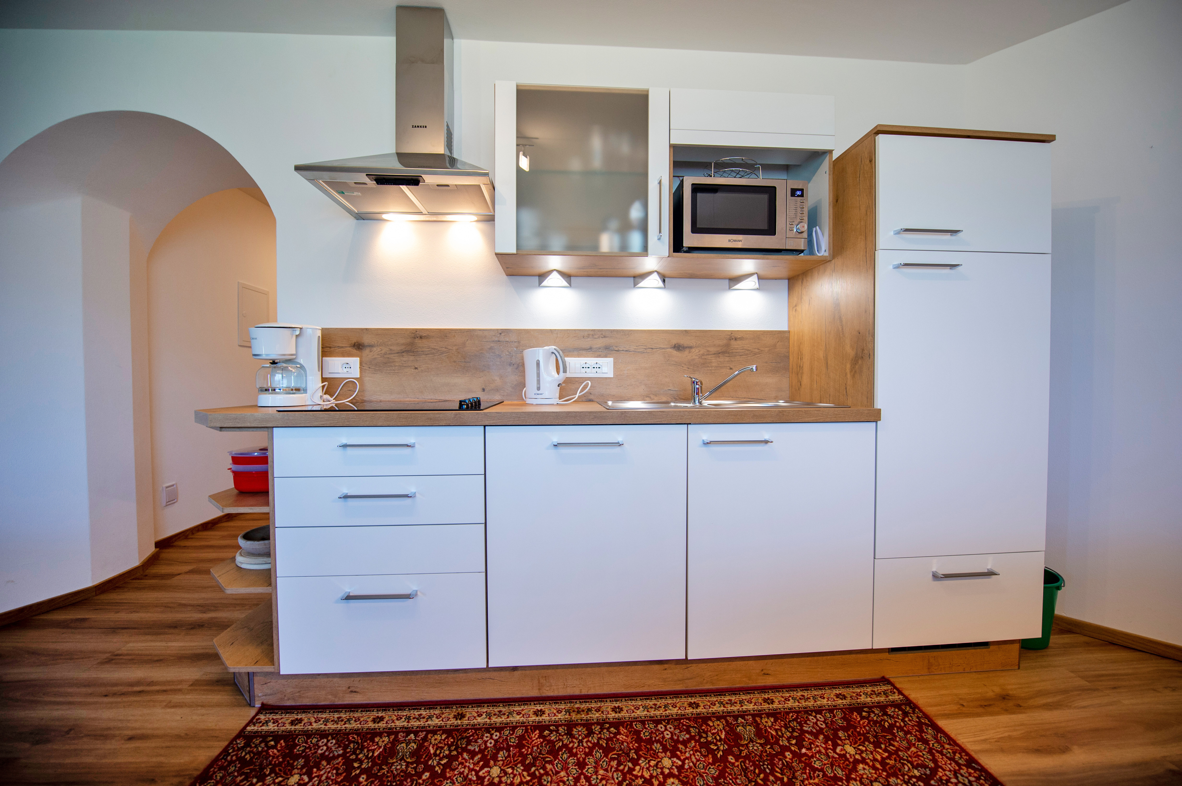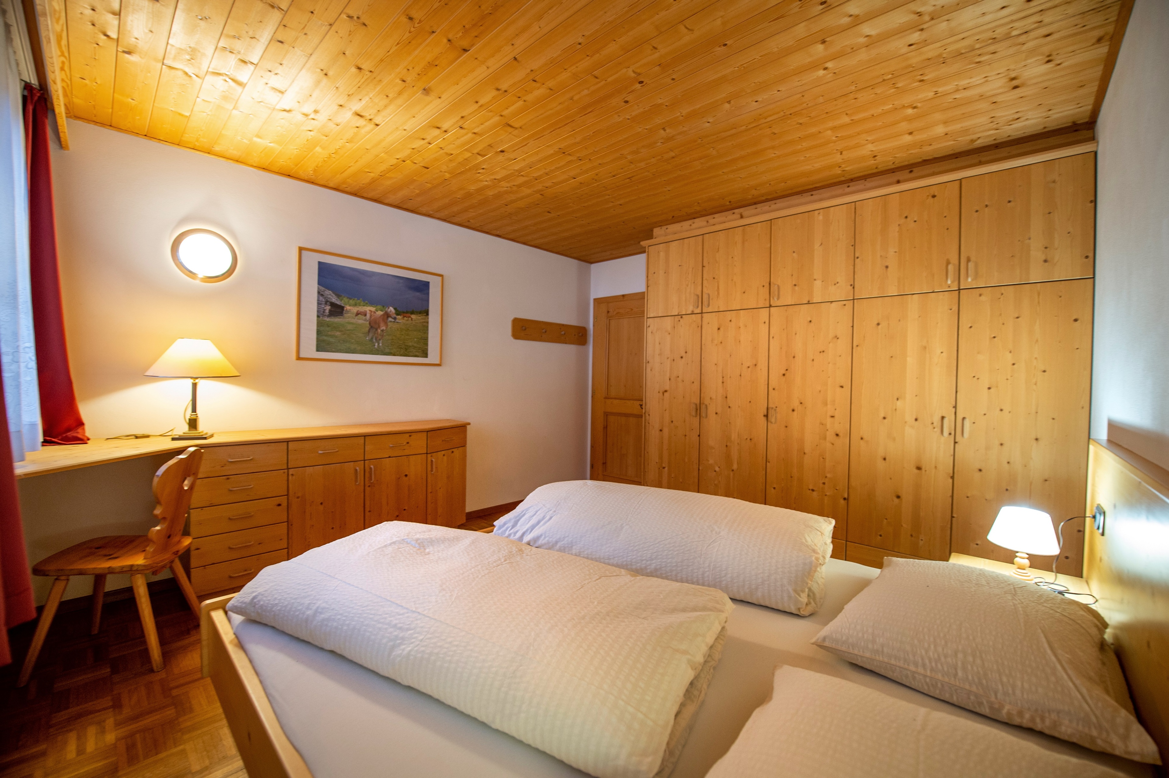 Questo grazioso appartamento è composto da 1 camera da letto matrimoniale, 1 bagno con doccia, un soggiorno con caratteristica stufa tirolese e divano letto singolo ed una cucina separata con tavolo da pranzo. Per la quarta persona verà aggiunta una brandina singola.