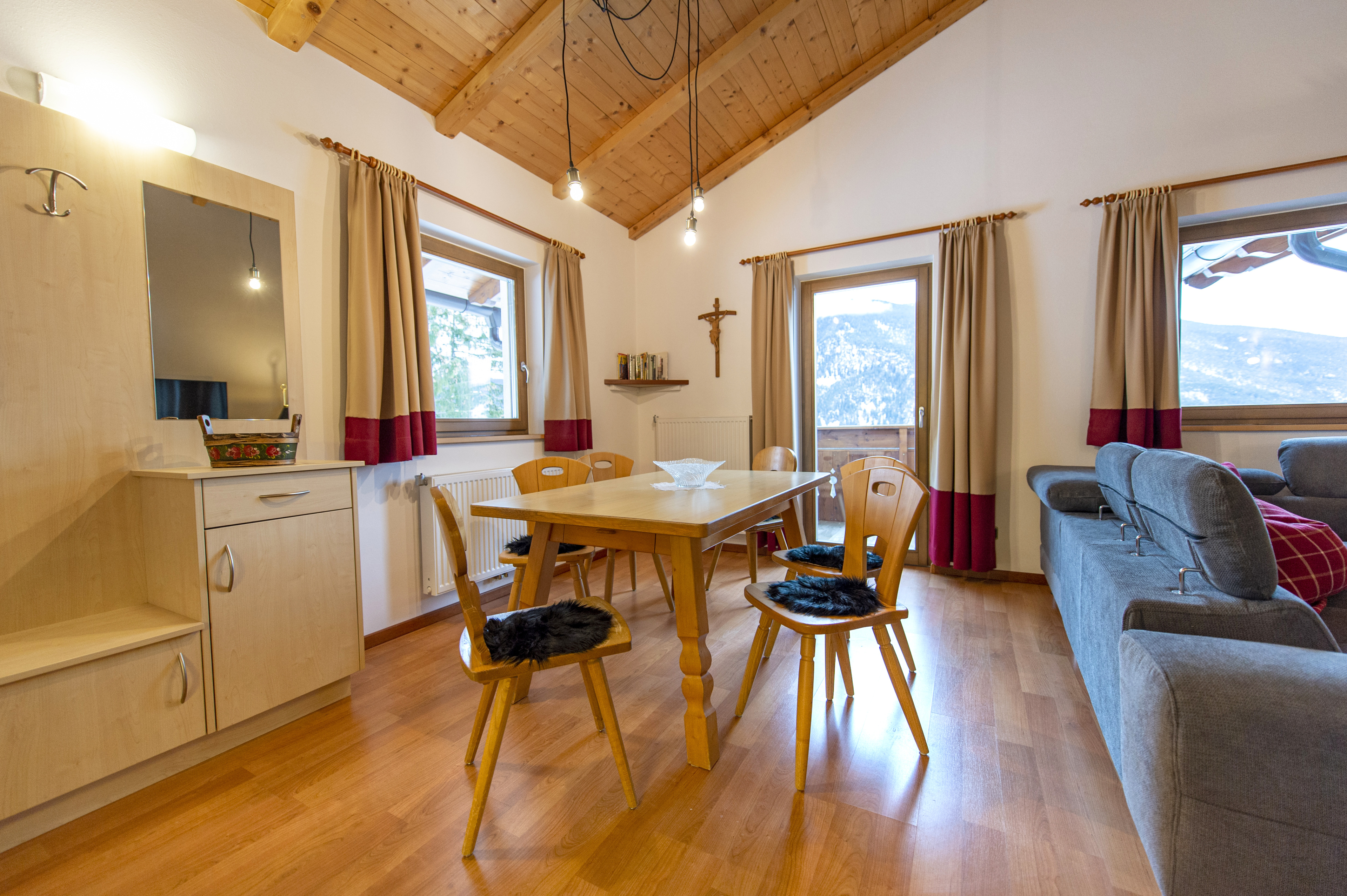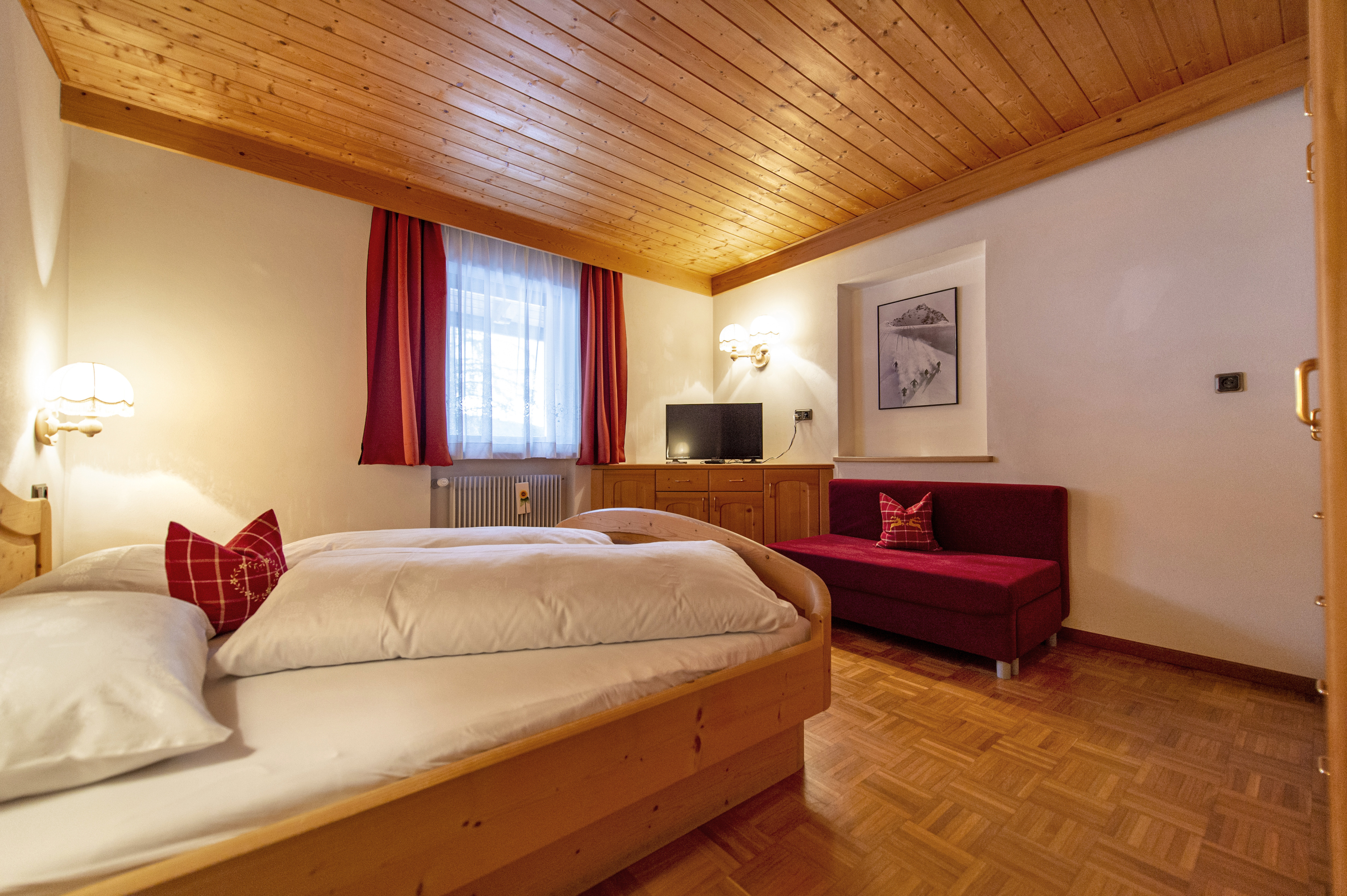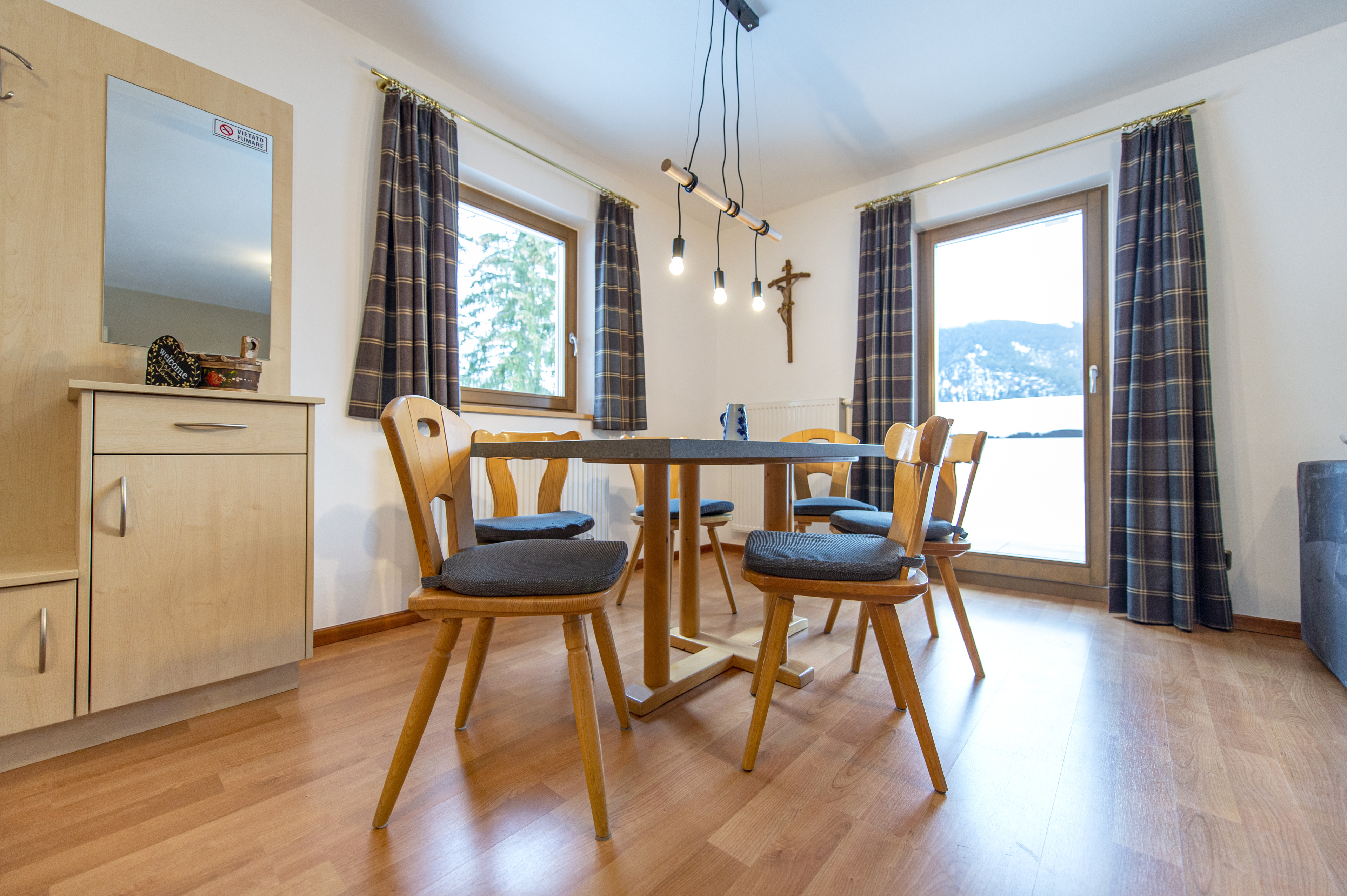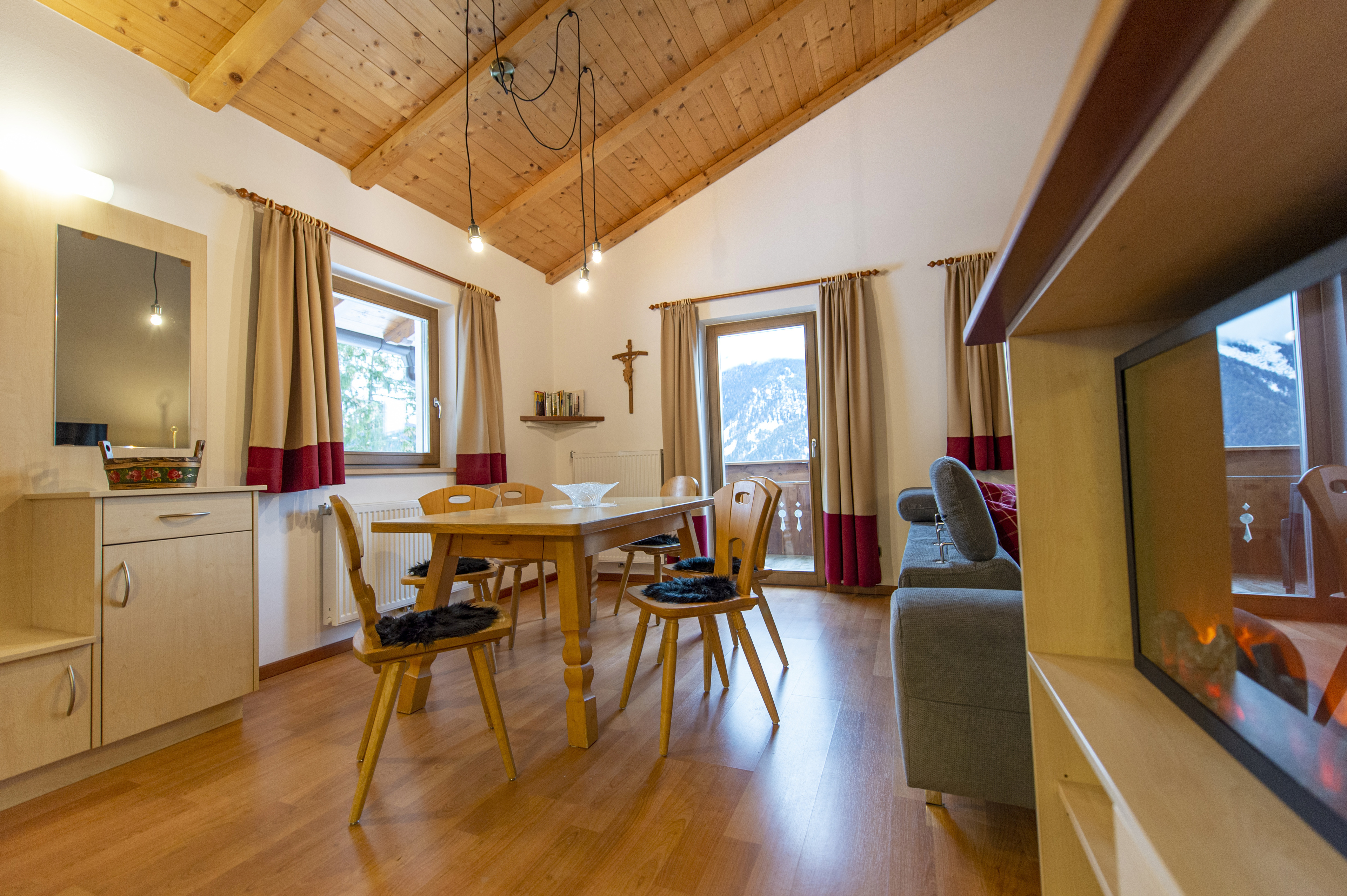 Questo residence sito fuori Ortisei, poco sotto il Passo Pinei, dispone di sei appartamenti di tutte le dimensioni e genere, sarà dunque facile trovarci la soluzione più adatta a voi.
