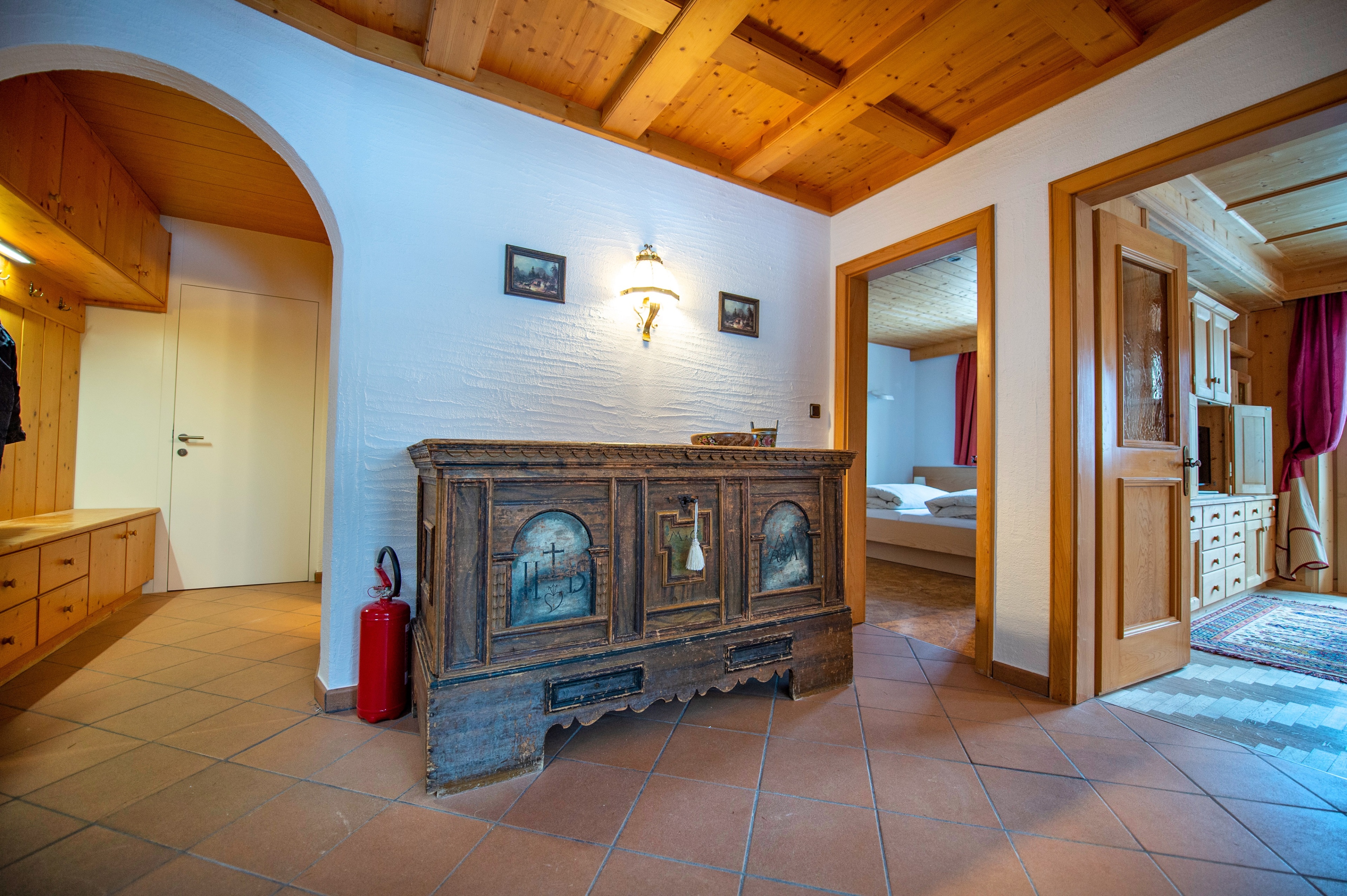 La casa è inoltre attrezzata con tutto il necessario per vacanze perfette nelle Dolomiti, come per esempio 1 posto auto esterno ed uno in garage per ogni appartamento, ascensore, lavatrice in comune, angolo sci in garage con scaldascarponi, Wi-Fi, biancheria ed asciugamani.