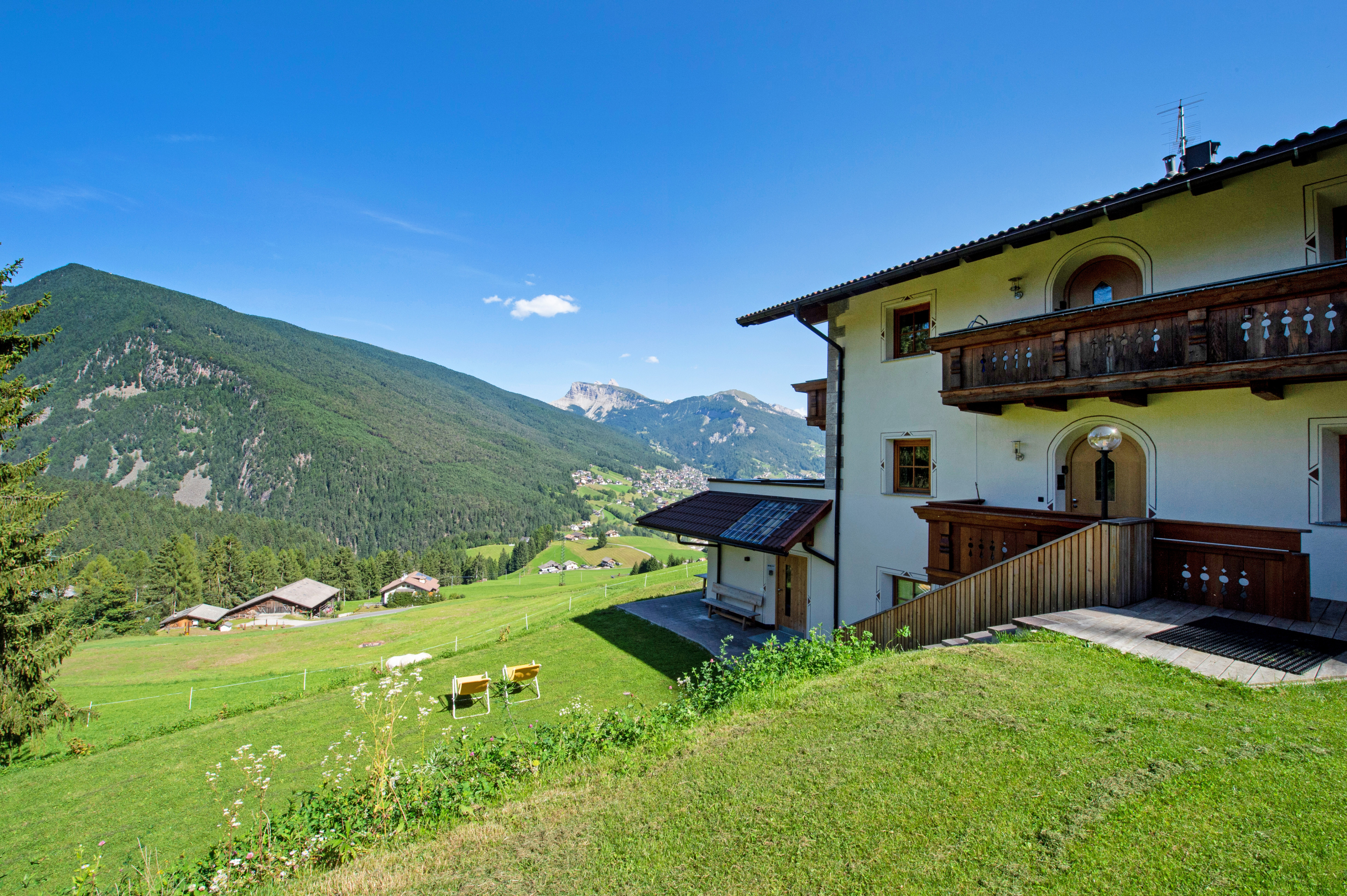 Fiore all’occhiello della casa sono la posizione idilliaca ed il giardino con vista sulla Val Gardena, dove godersi momenti di pace, respirando la pura aria delle Dolomiti.